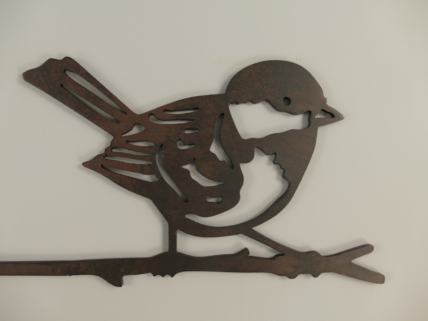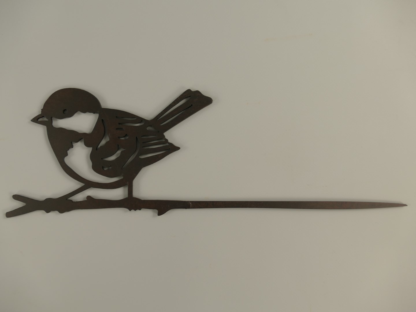 Baumstecker Vogel Eisen farbig röst!! L.34cm
