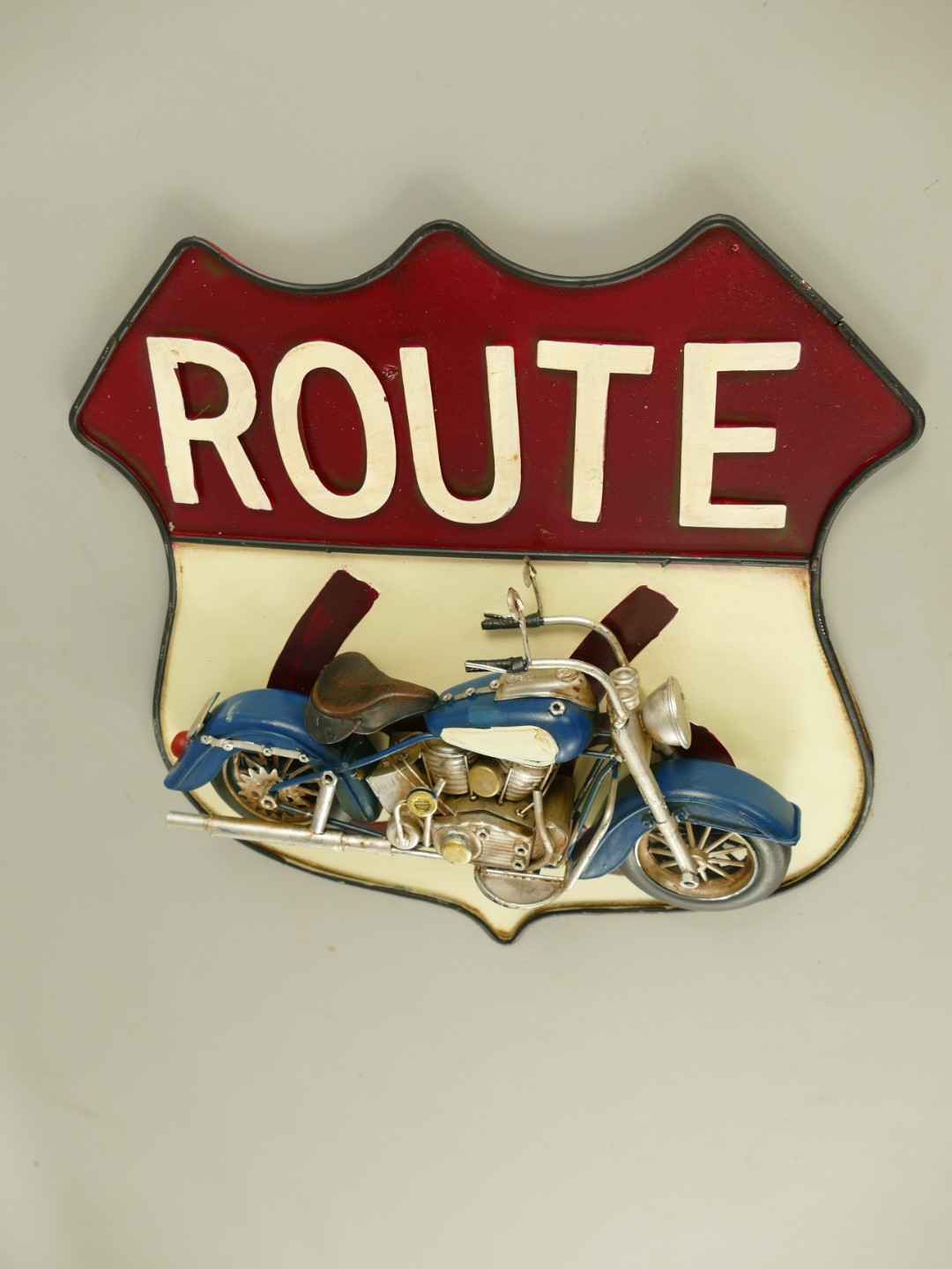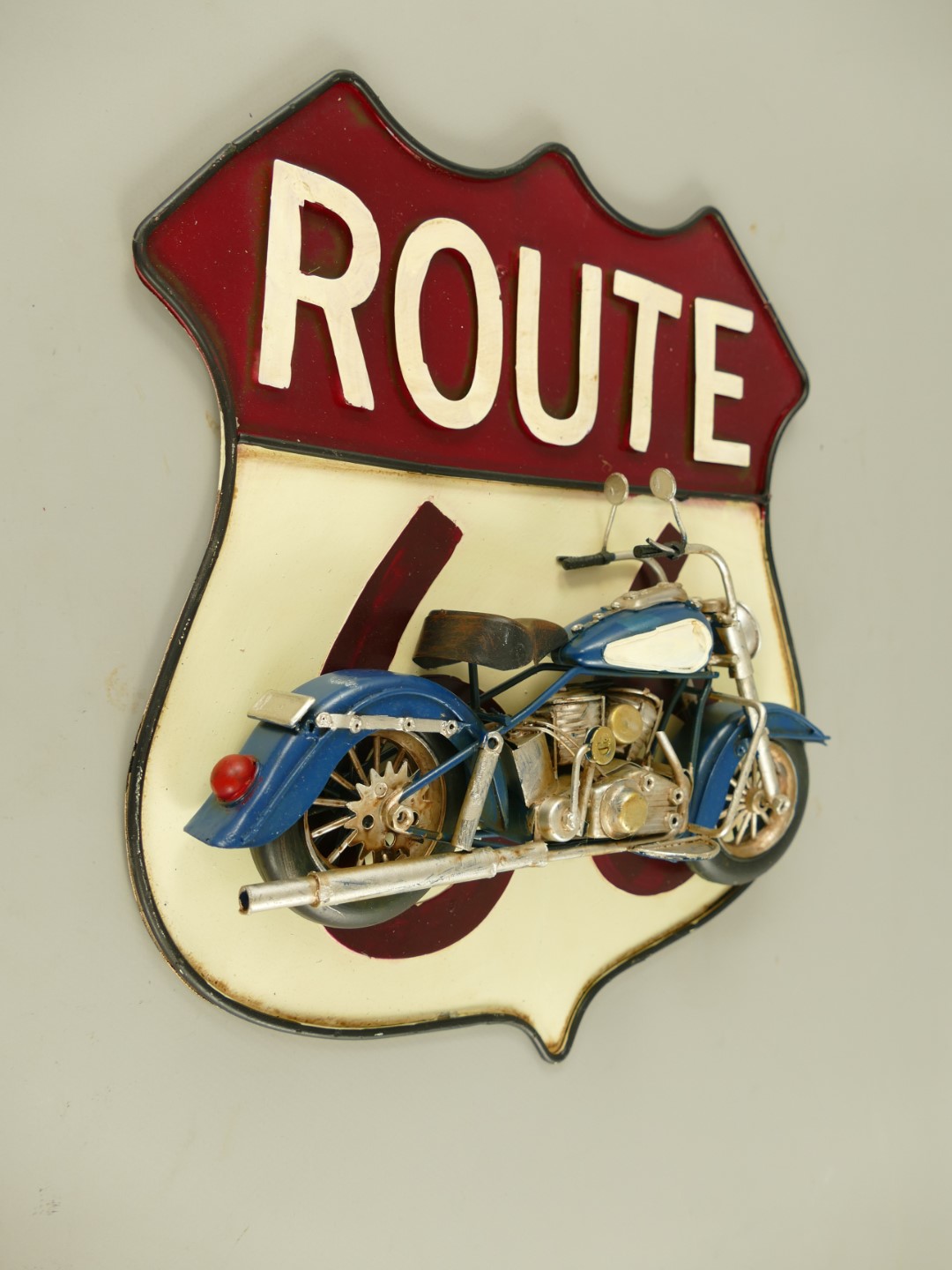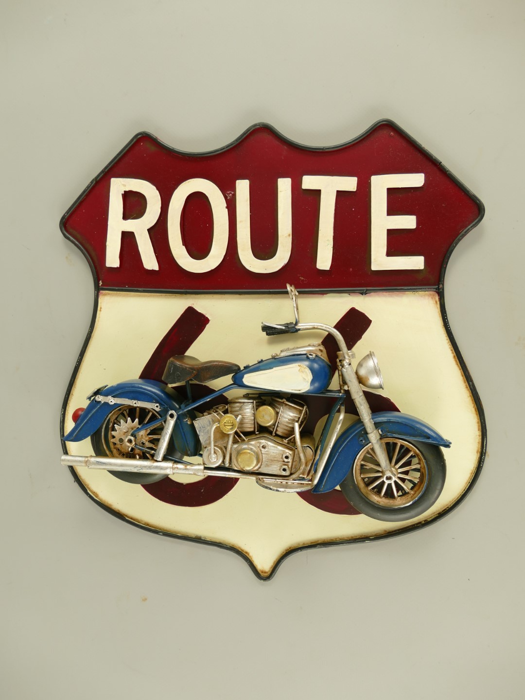 *ANG. Wandschild Route*66 Motor Eisen H.33x32cm