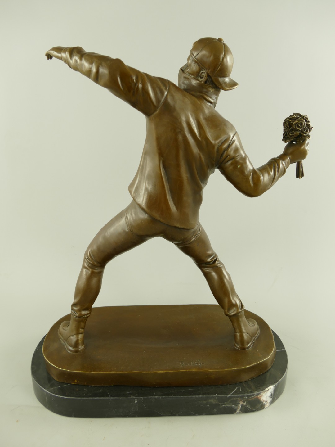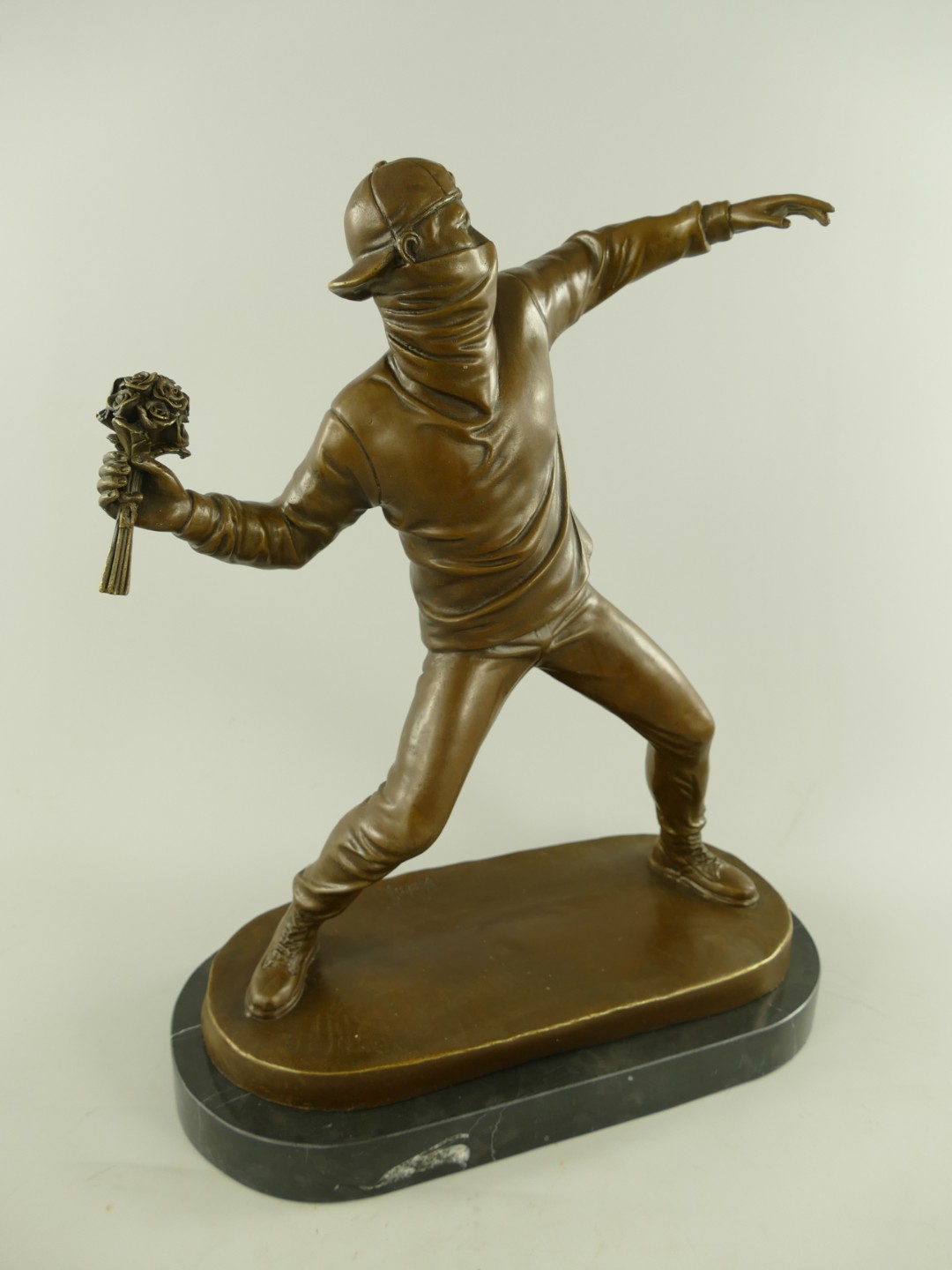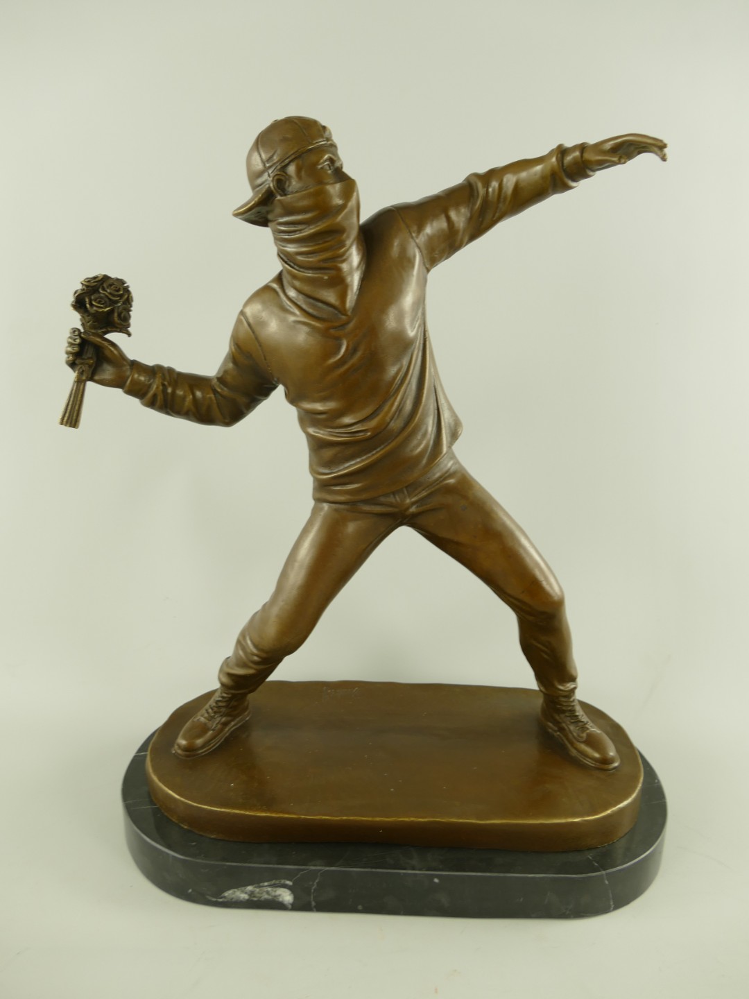 Figur Bronze Banksy Blumenwerfer H.56x45cm