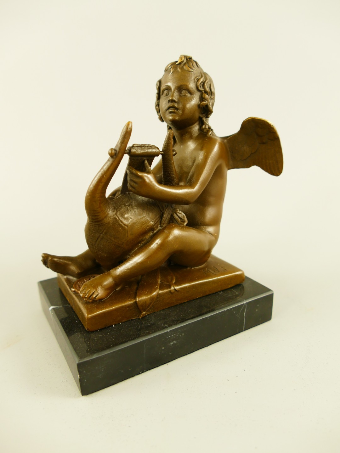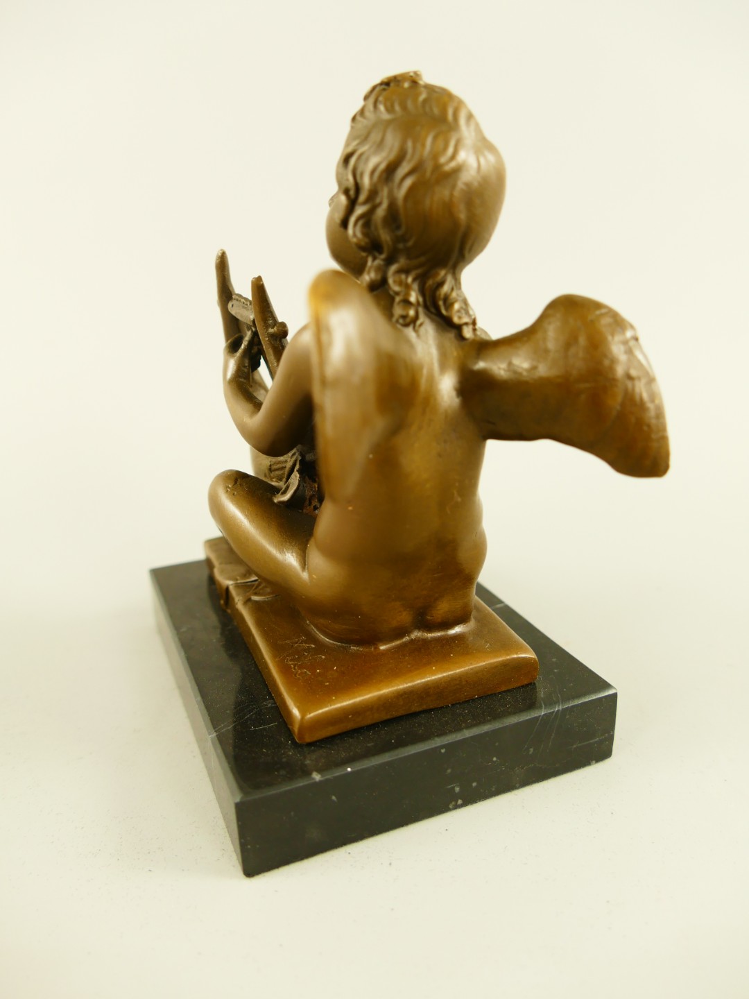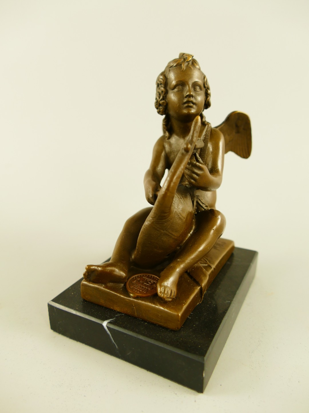 Figur Bronze Engel mit harfe H.11x10x7cm