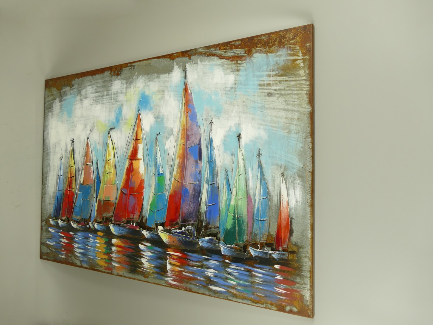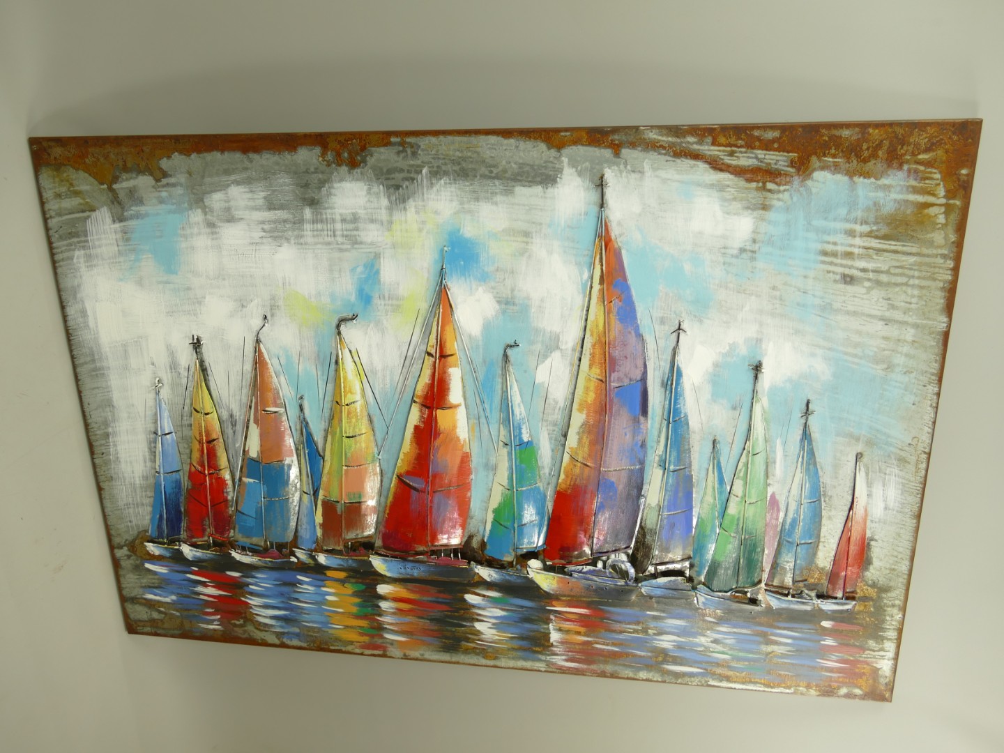 (*) Metallbild (3D) Eisen Schiffe L.120x80cm