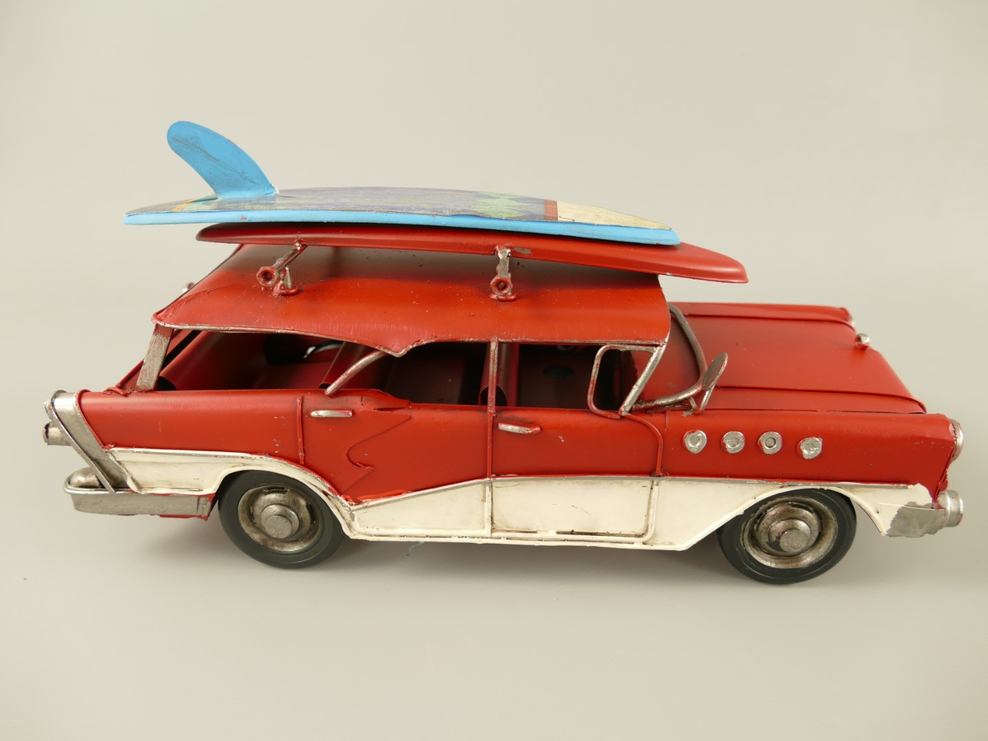 *ANG. Auto mit Surfbrett Antik Eisen L.28cm