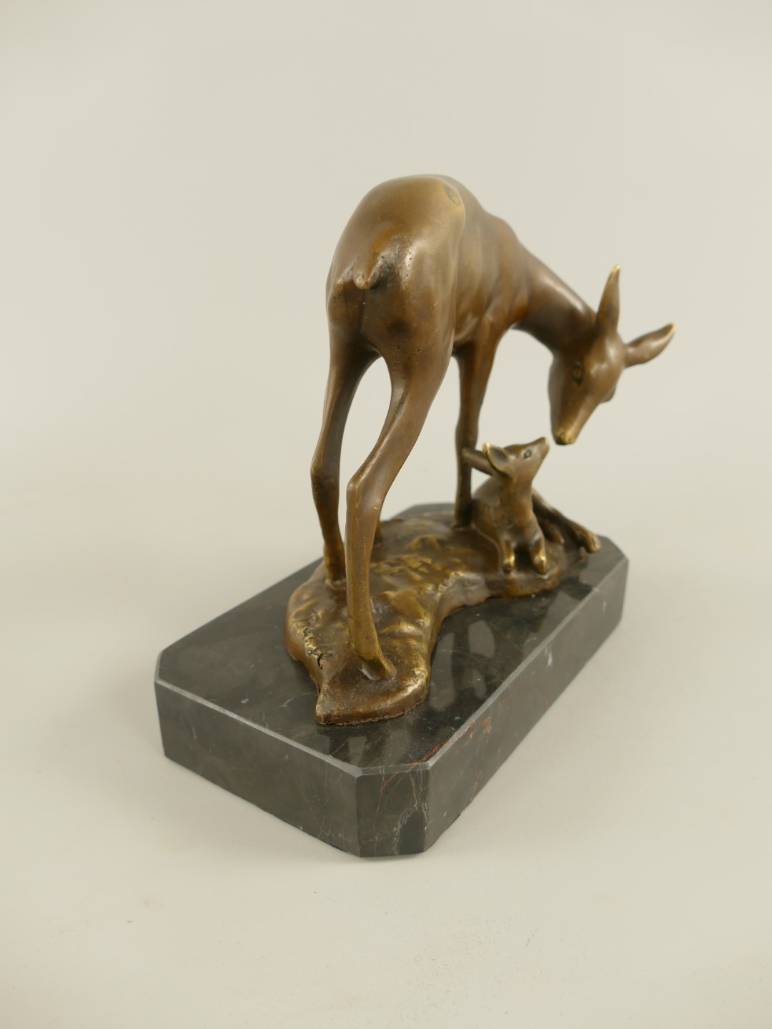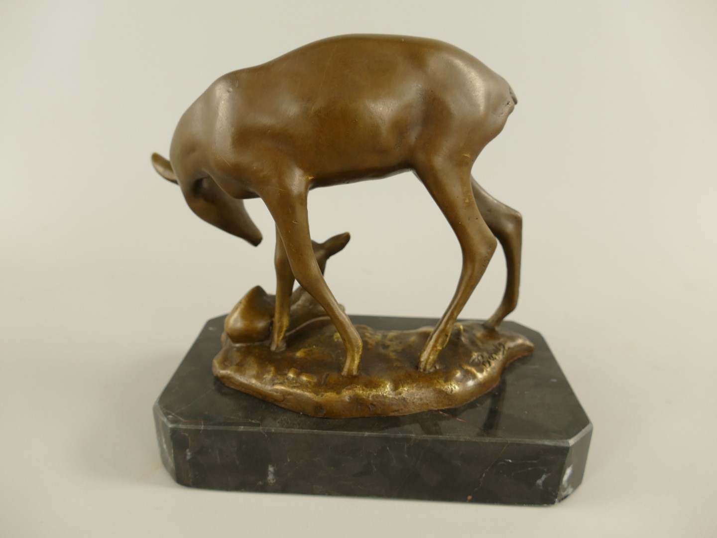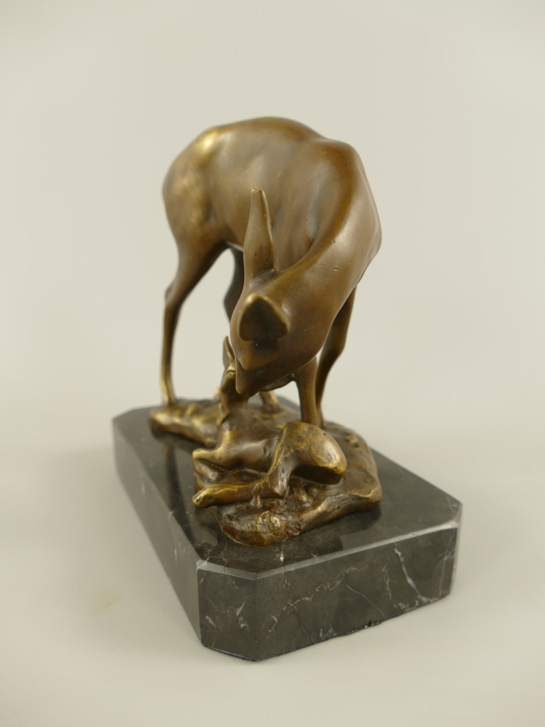 Figur Bronze Hirsch mit Hirschkalb H.17x20cm