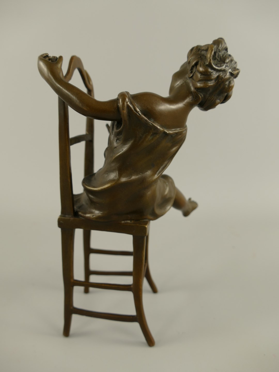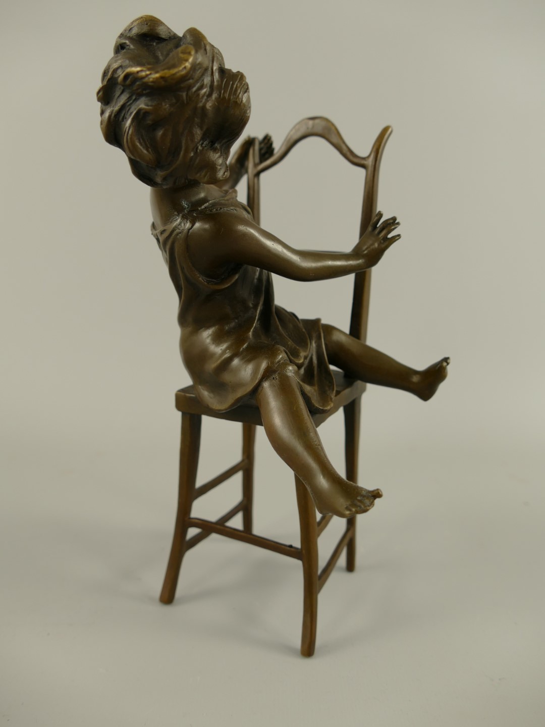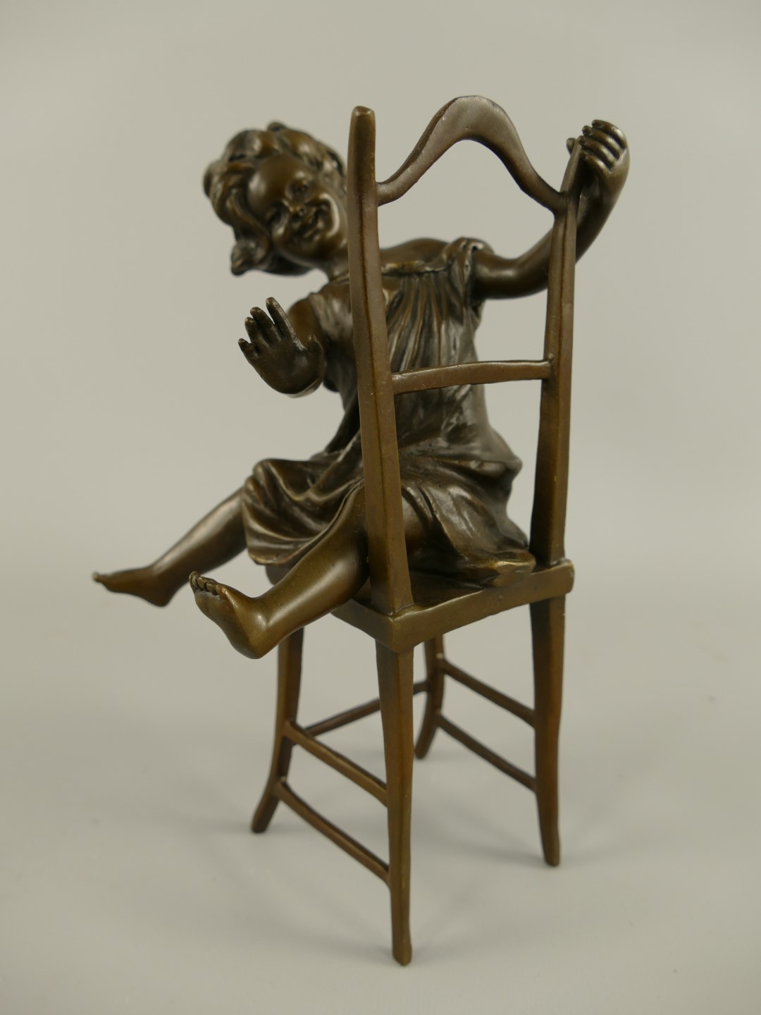 Figur Bronze Kind auf Stuhl H.23x14cm