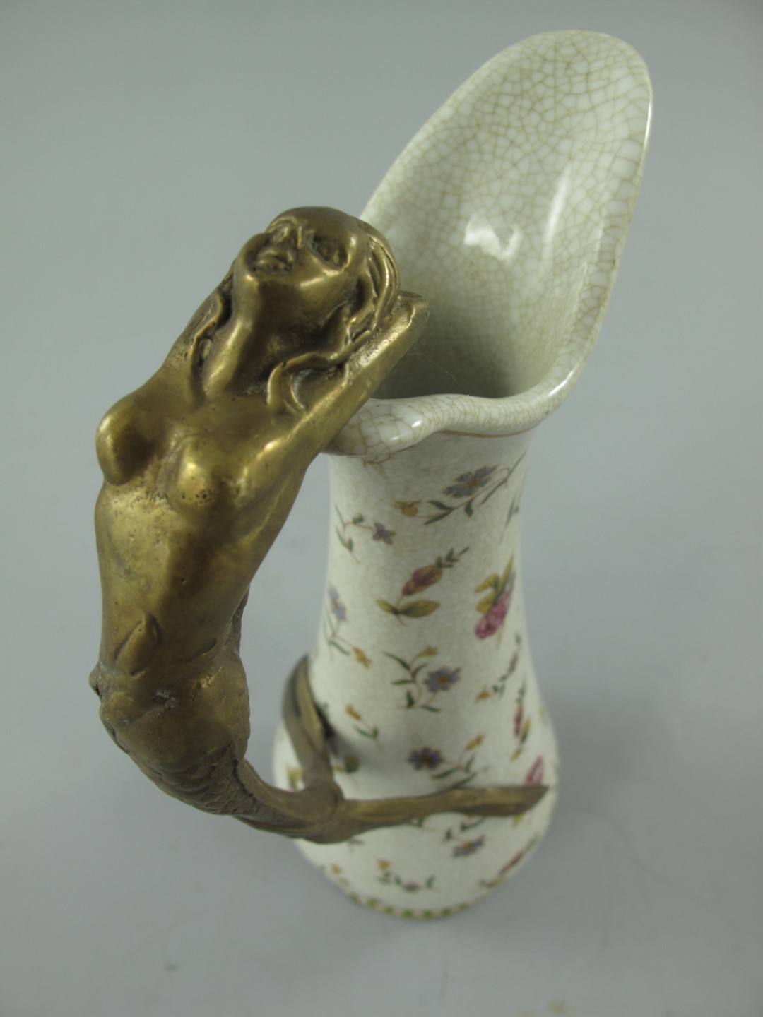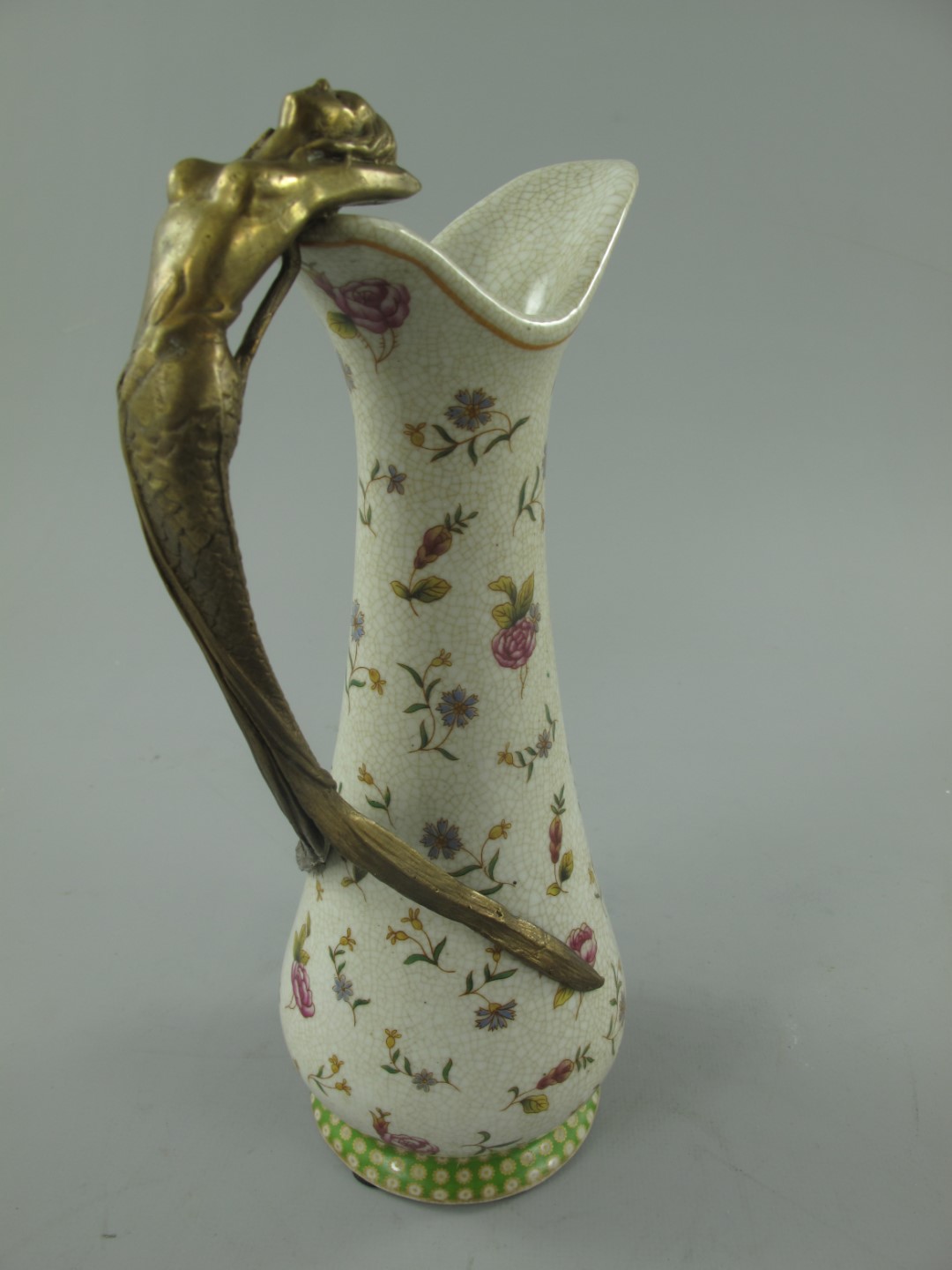 Vase Porzellan/Mess. grün/Rosen H.25cm