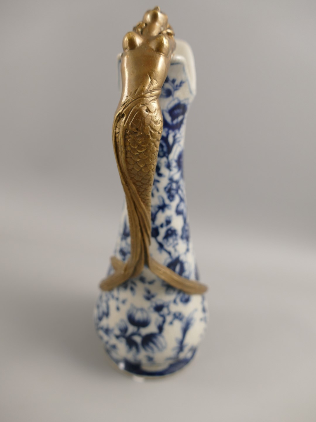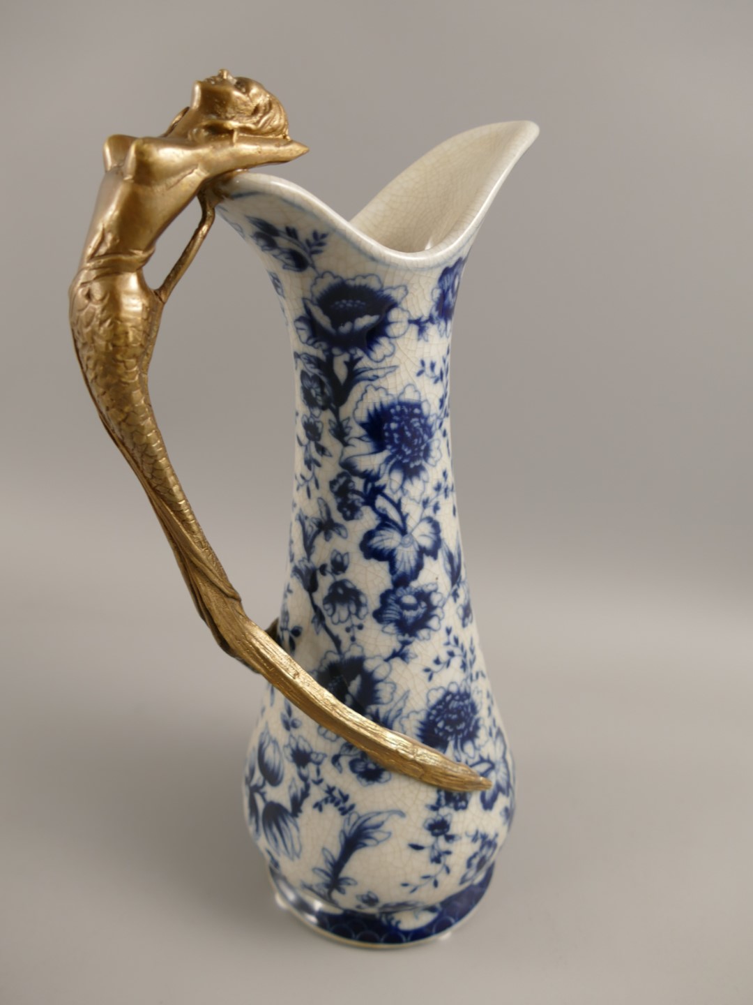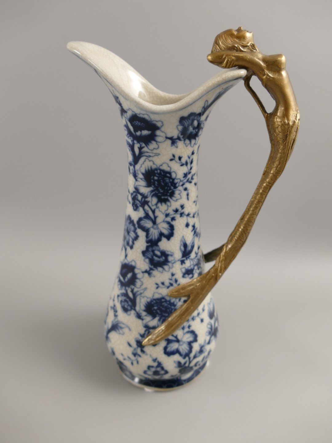 Vase Porzellan mit Messing BLAU!! H.25x14cm
