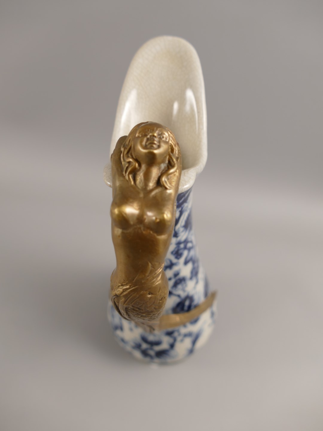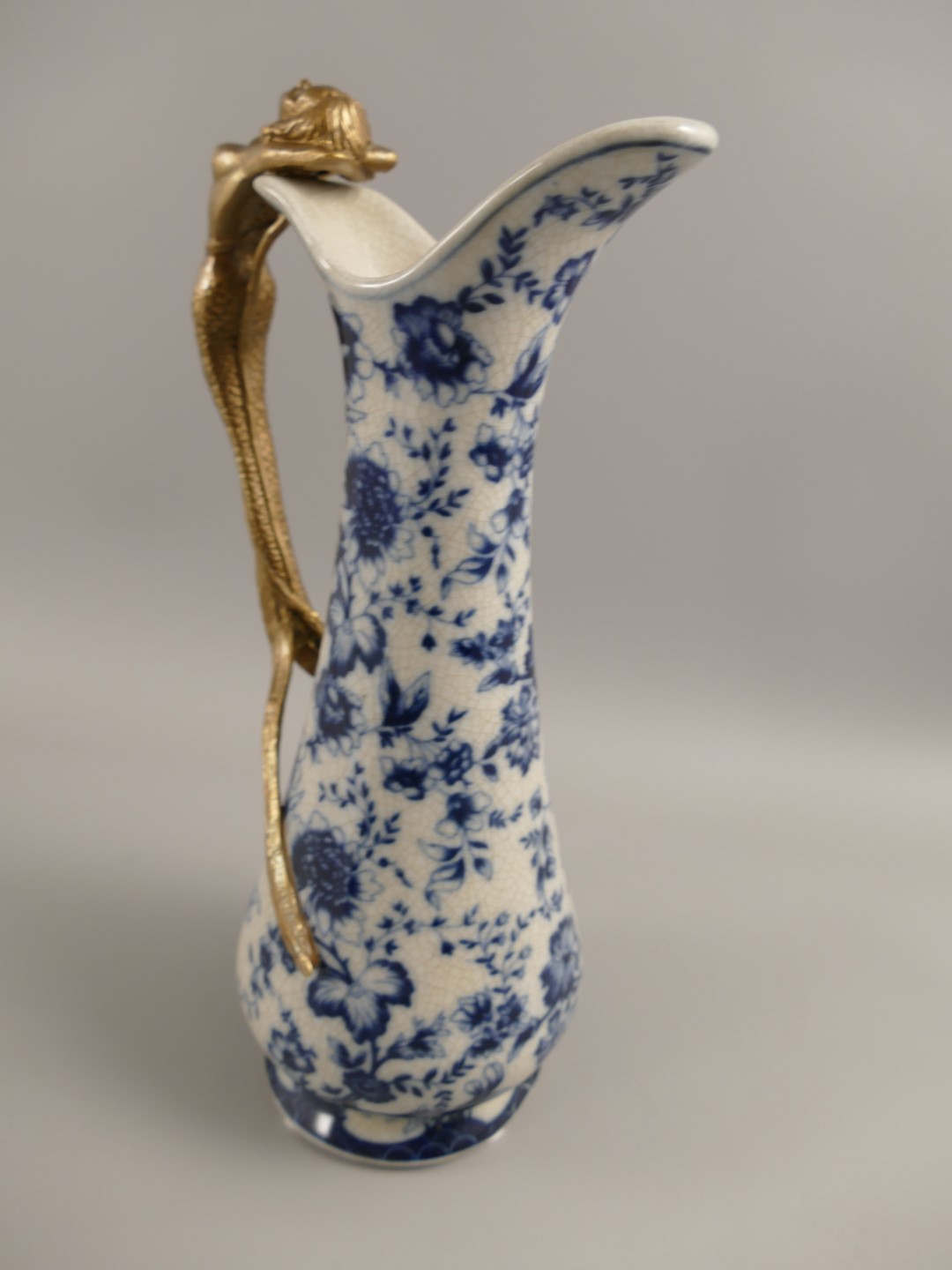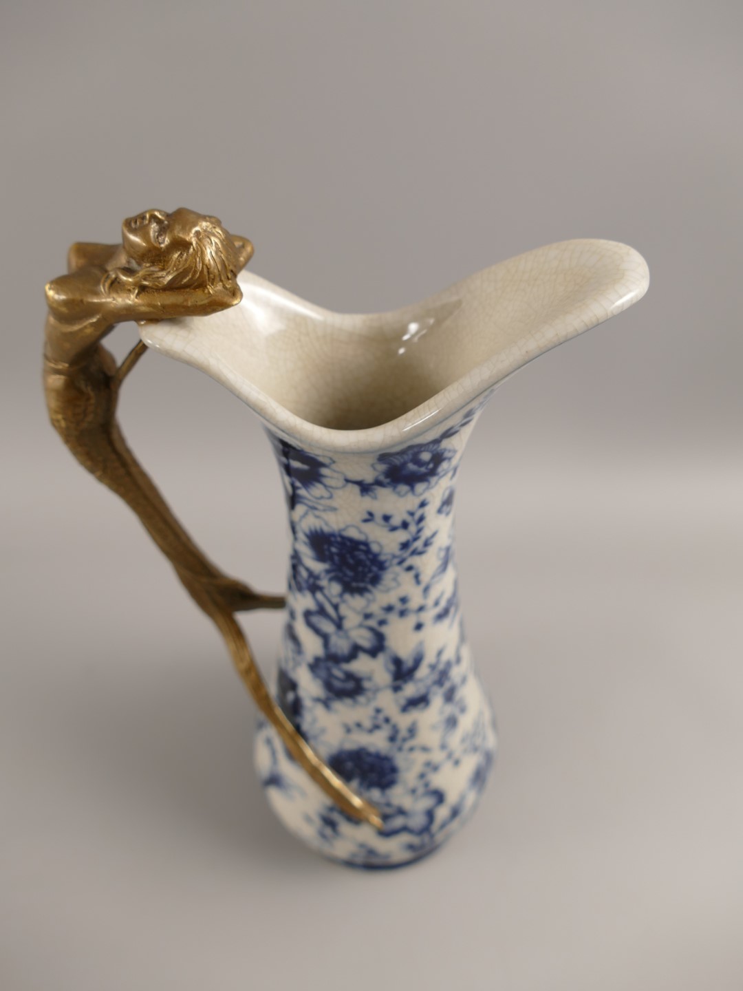 Vase Porzellan mit Messing BLAU!! H.25x14cm