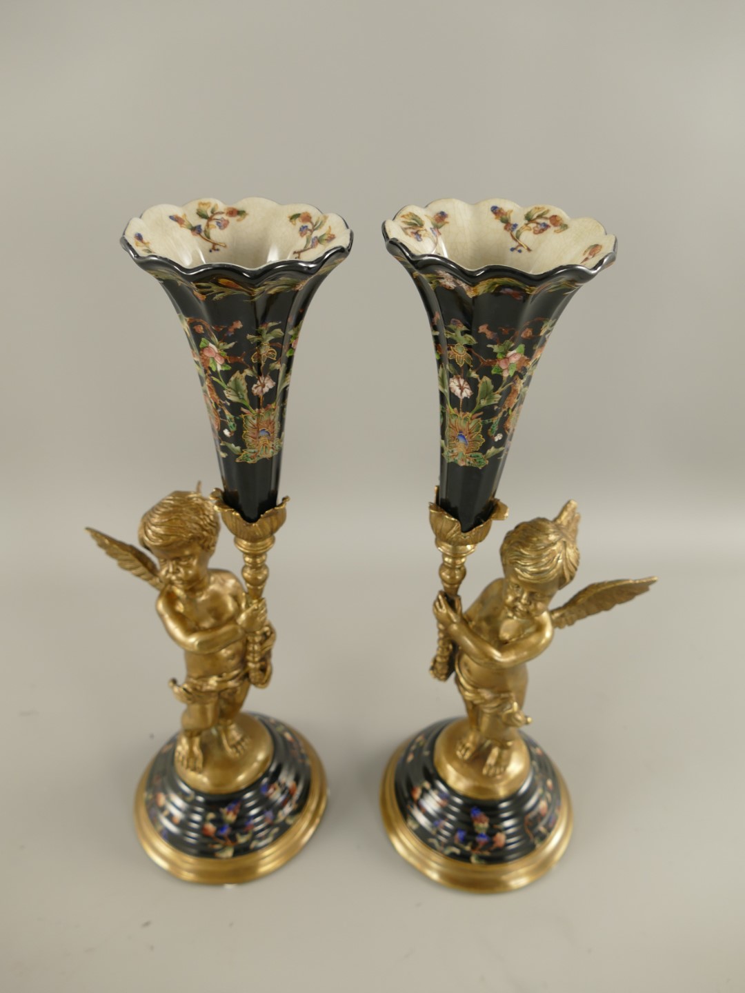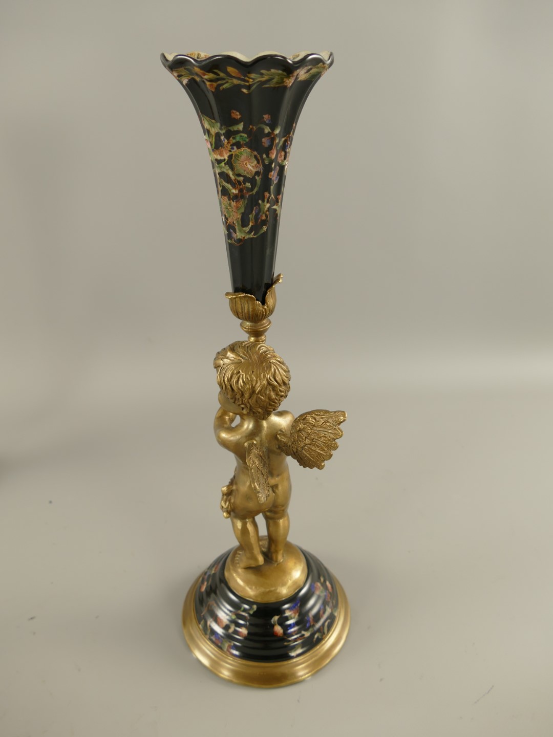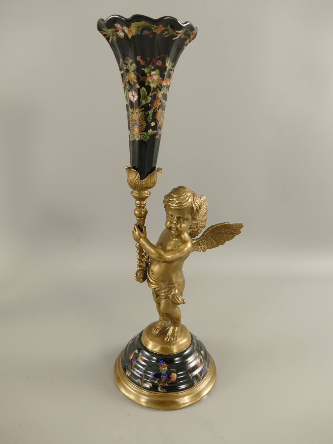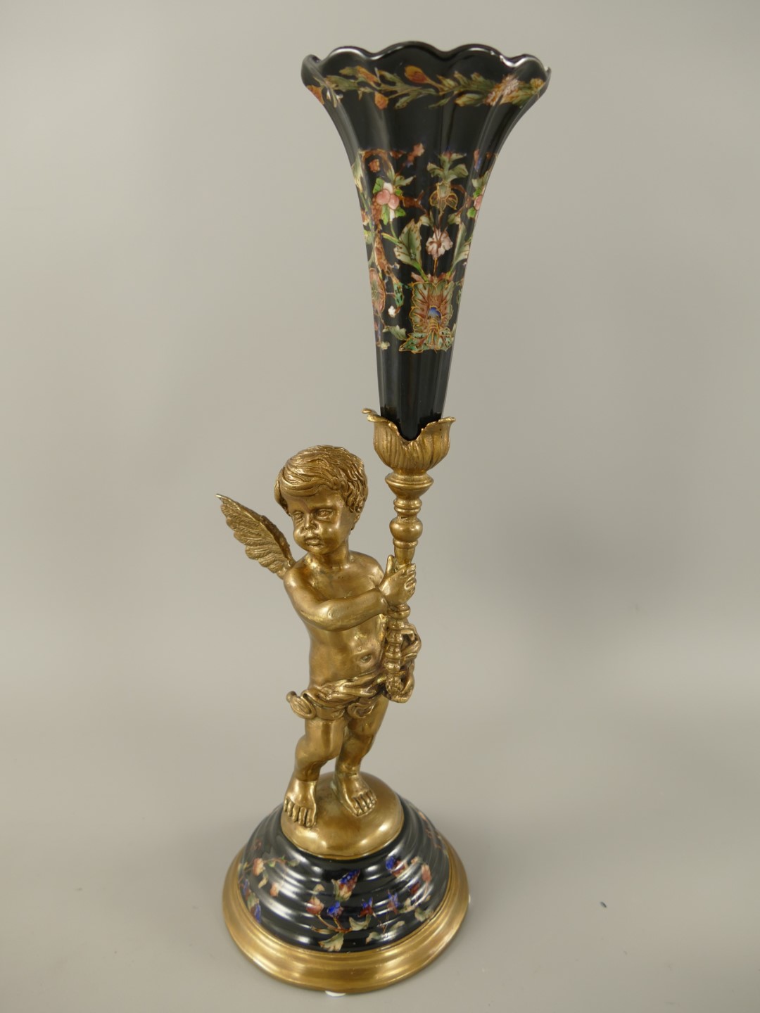 Leuchter schwarz Porzellan/Messing H.39x13cm