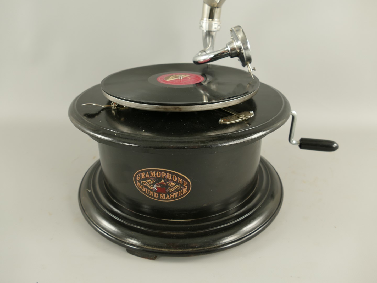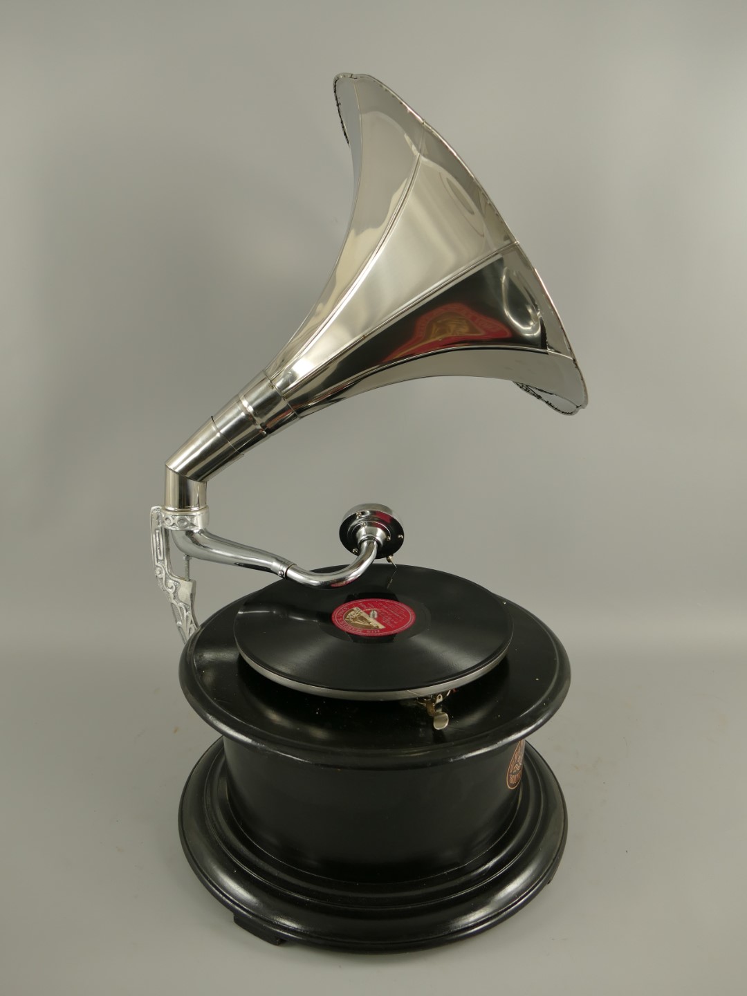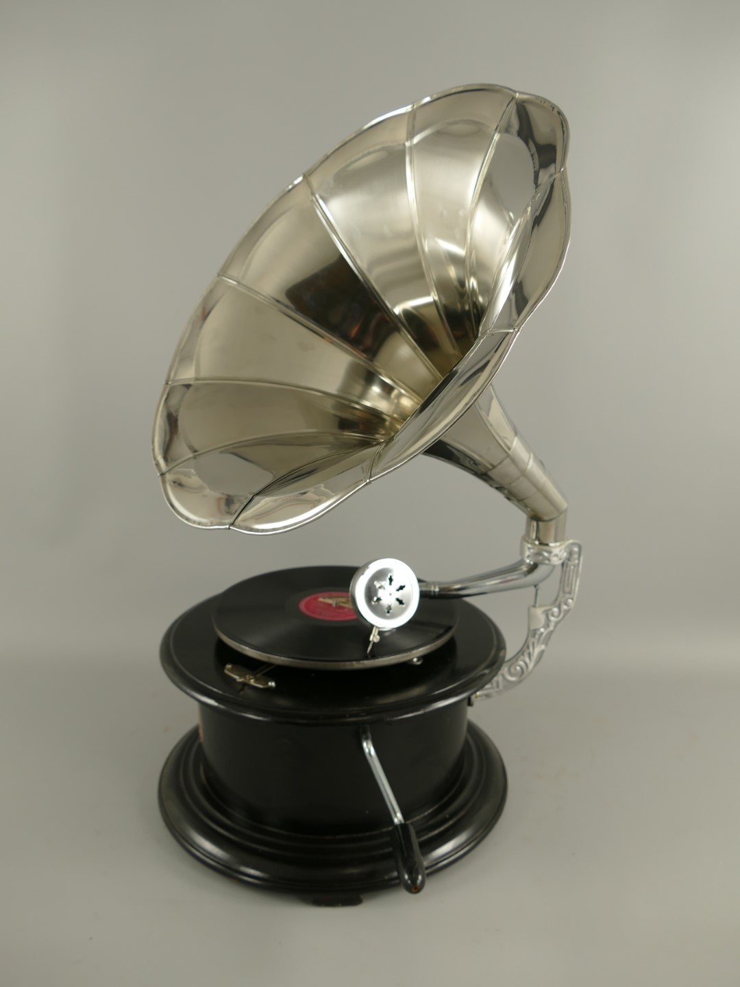 Grammophon Holz/vernickelt rund(Deko) H.66cm
