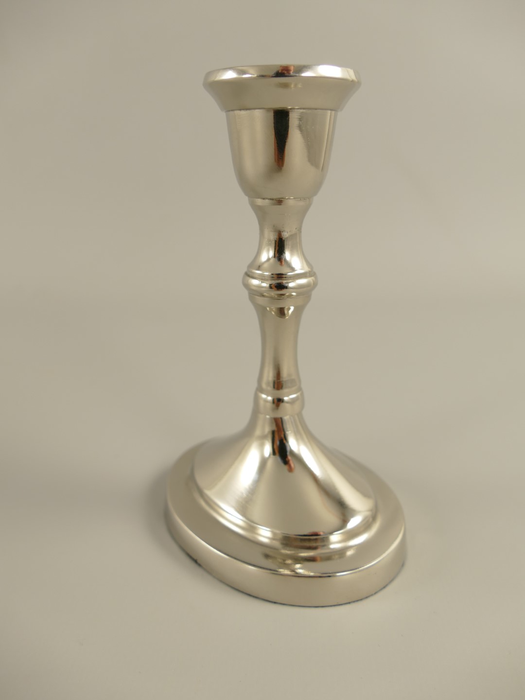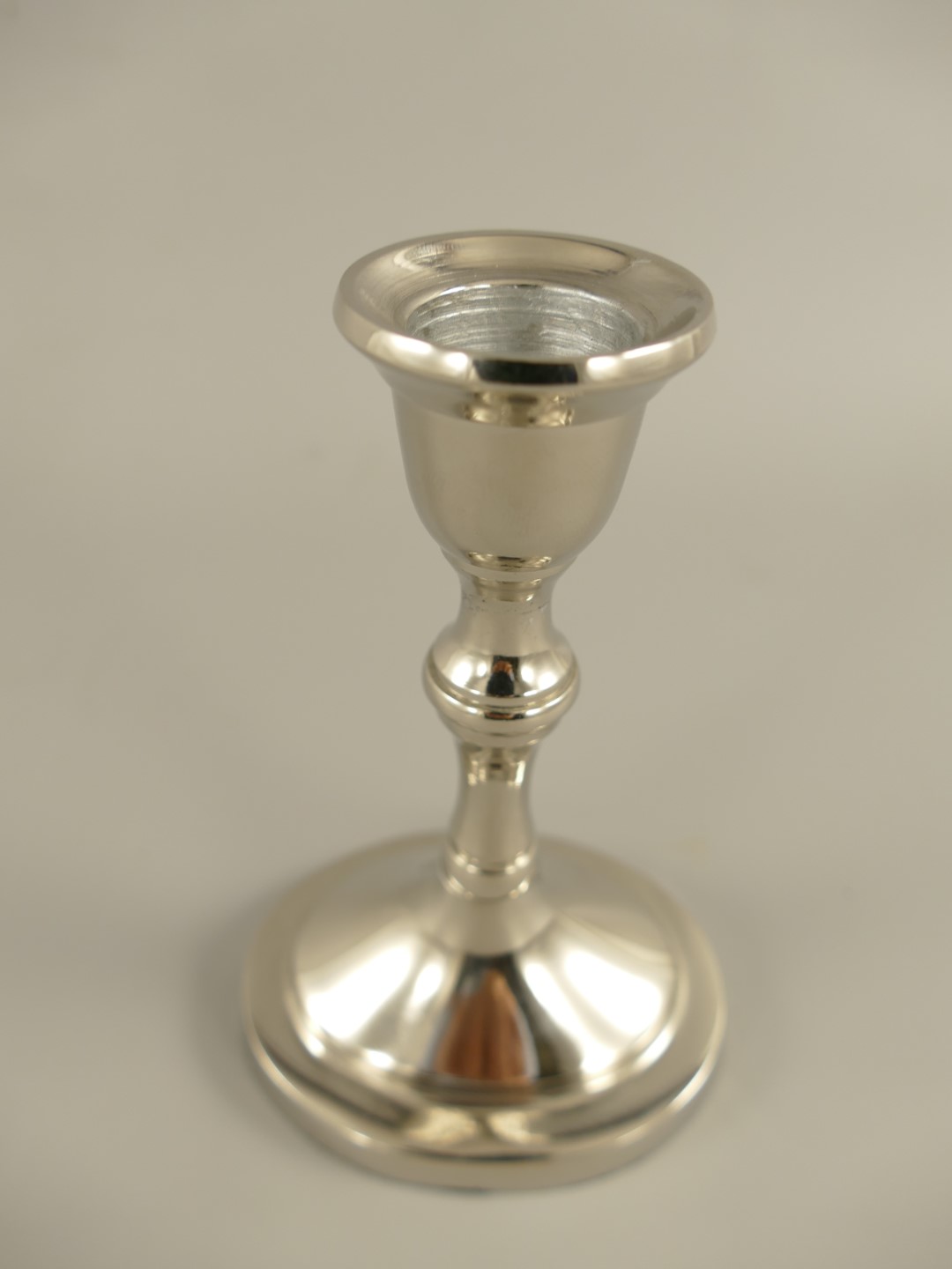 *ANG. Vernickelter Leuchter ALU H.13x8cm