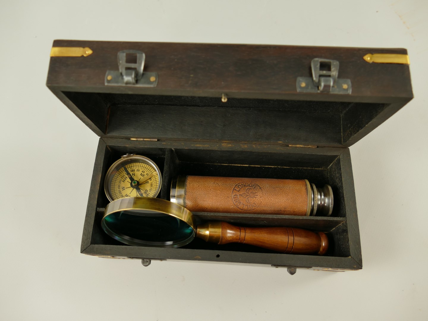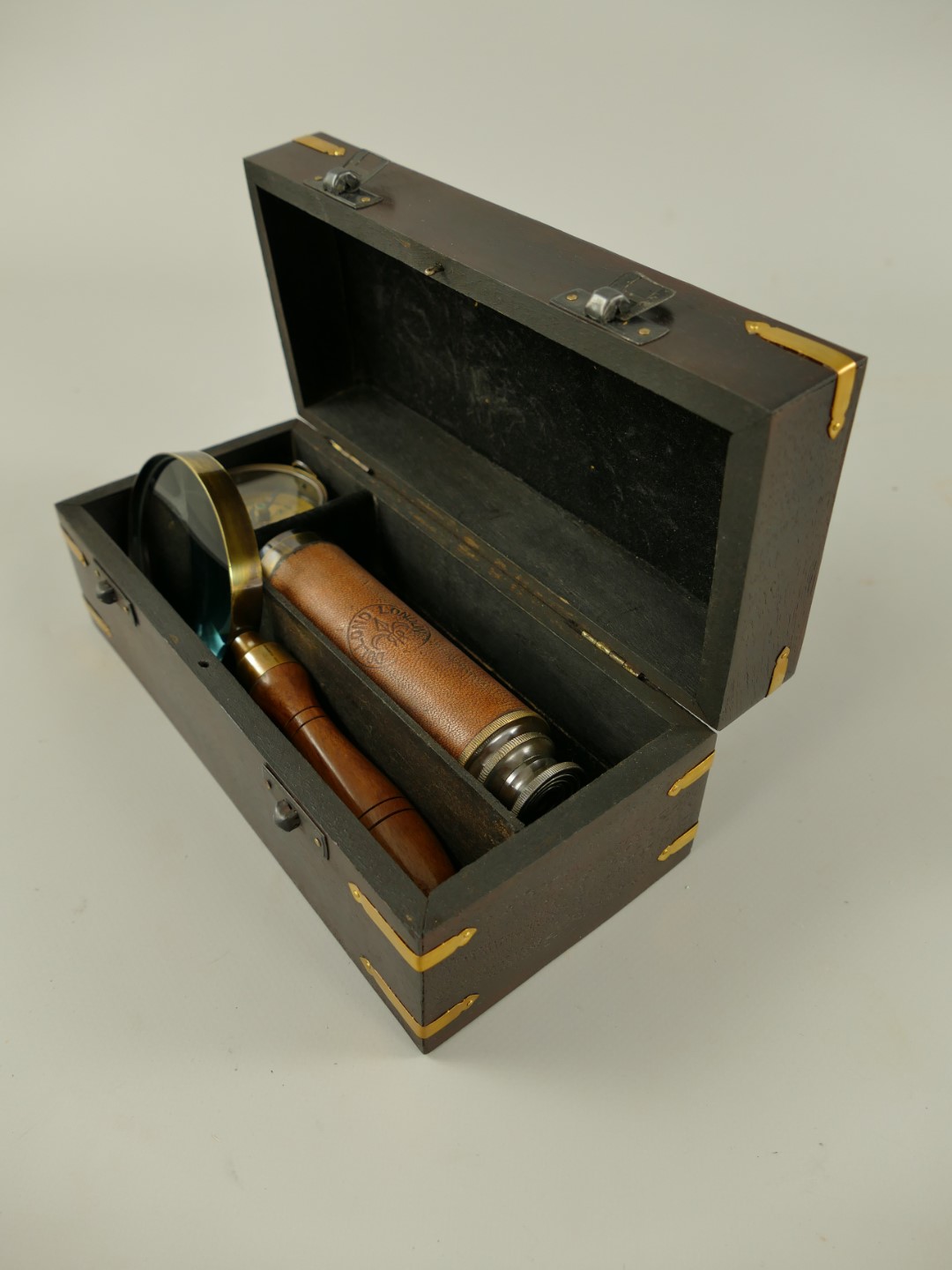 Nautikset Mes./leder patina Holz Box L.23x11cm