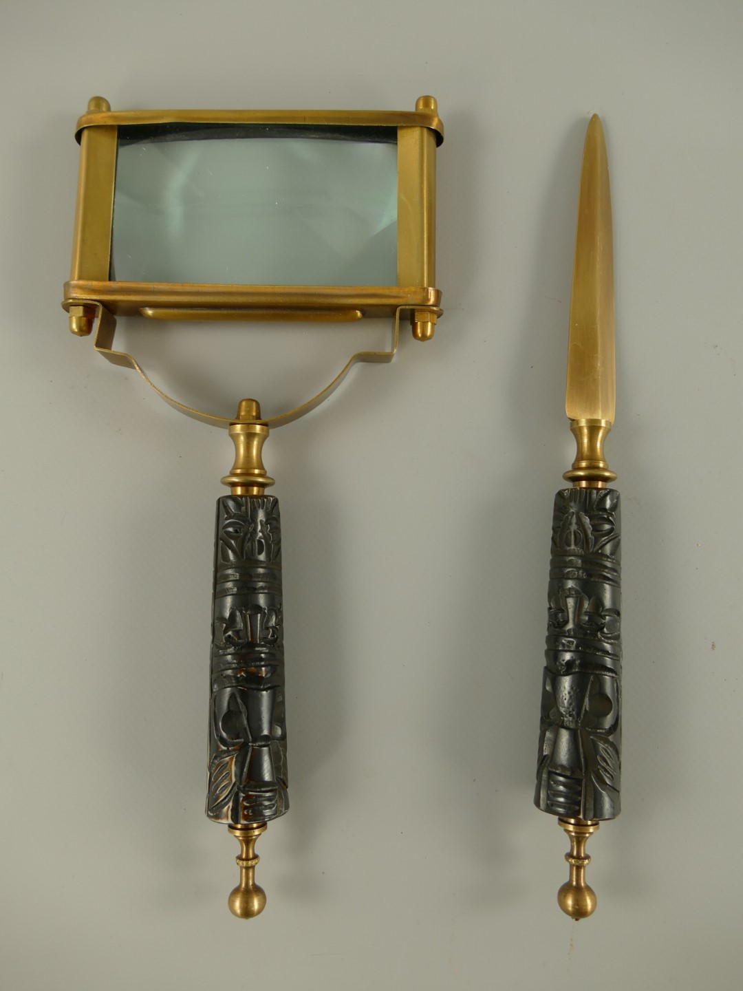 Lupe & Brieföffner Messing brüniert griff L.27cm
