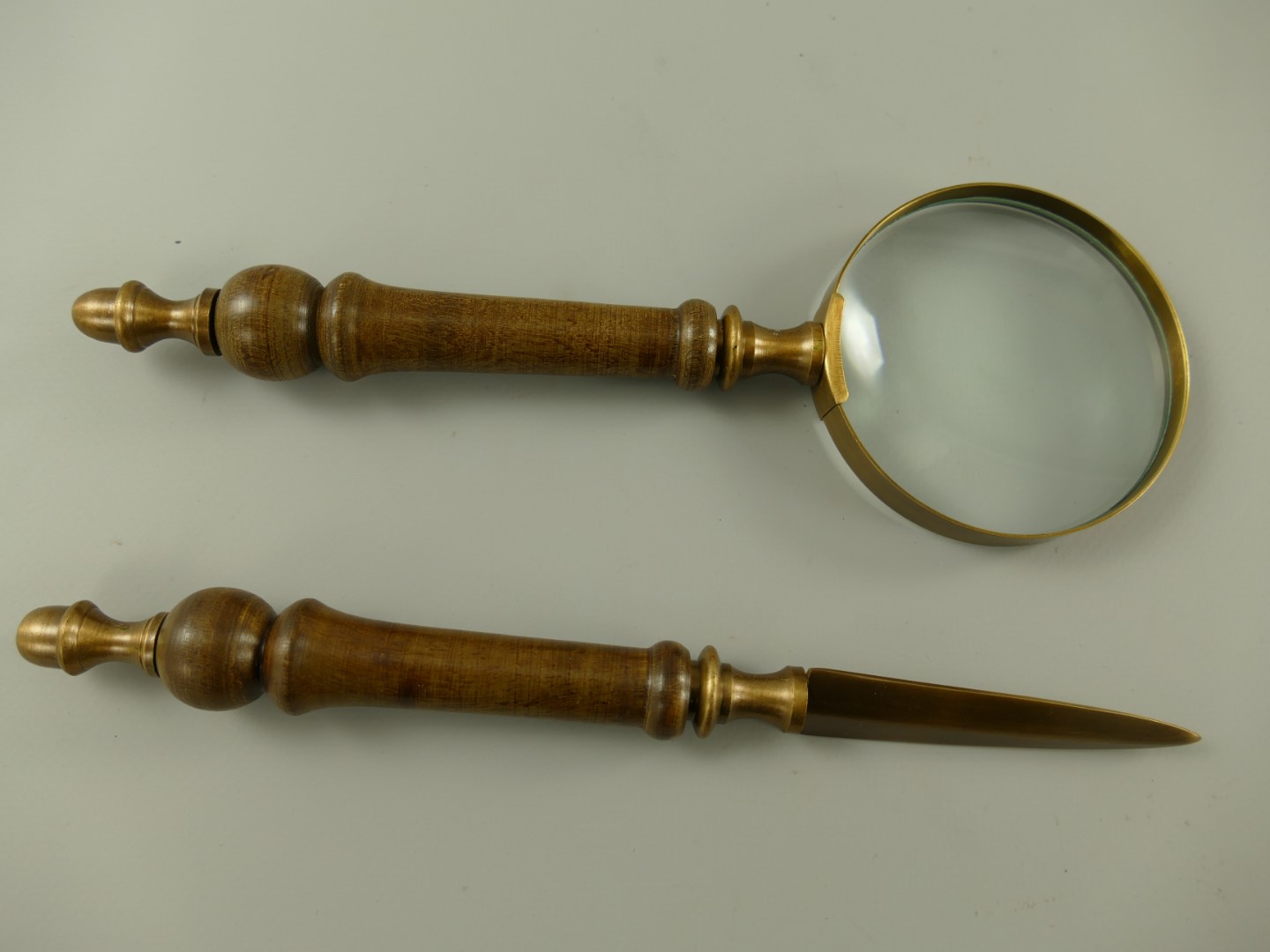 Artikelinformationen "Brieföffner/Lupe liegend ständer brüniert L.24cm"