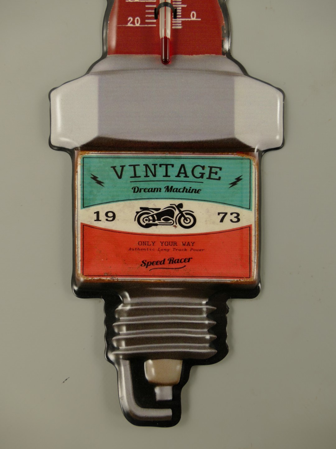 Thermometer Eisen Vintage Zündkerzen H.38x13cm