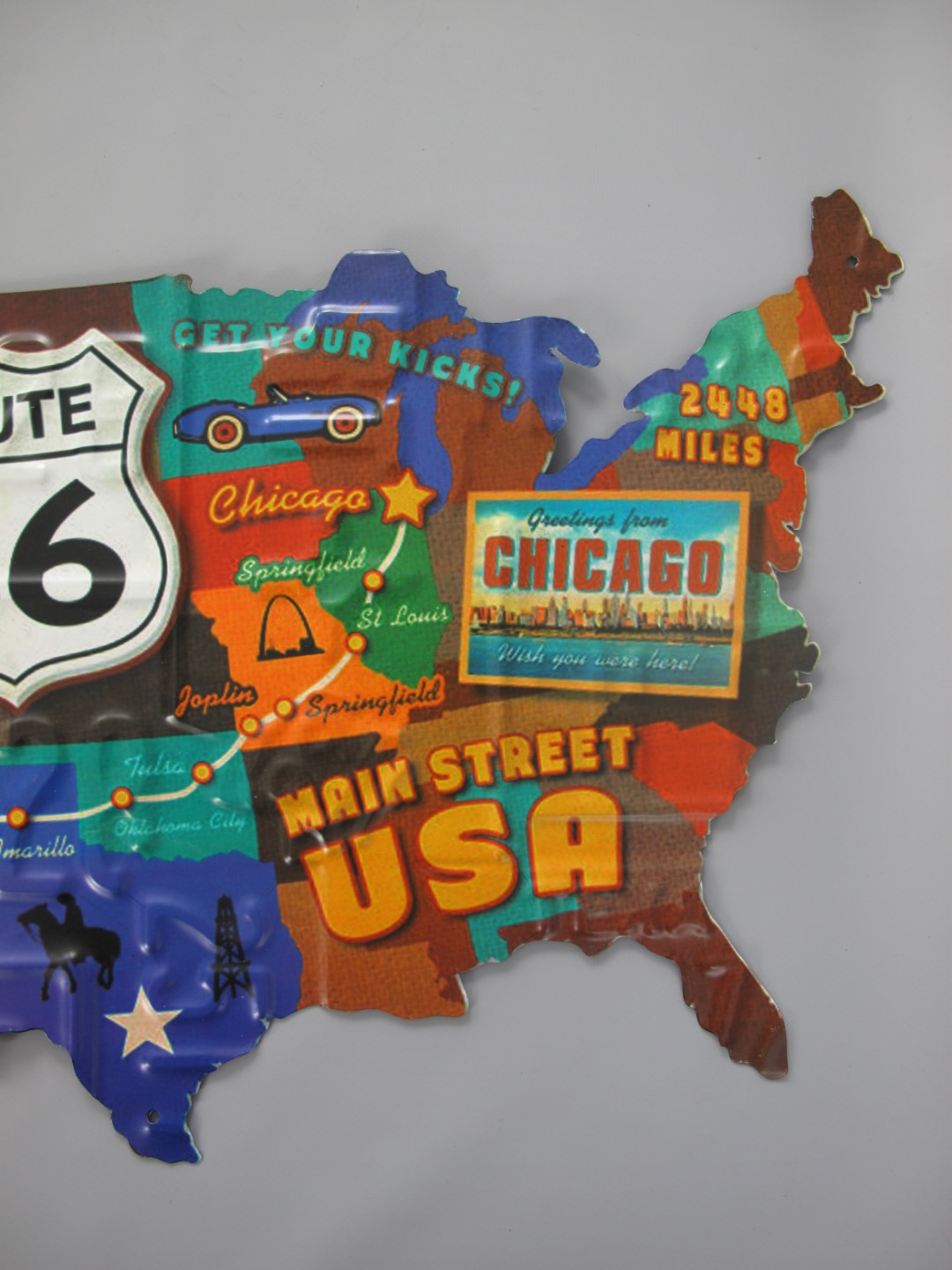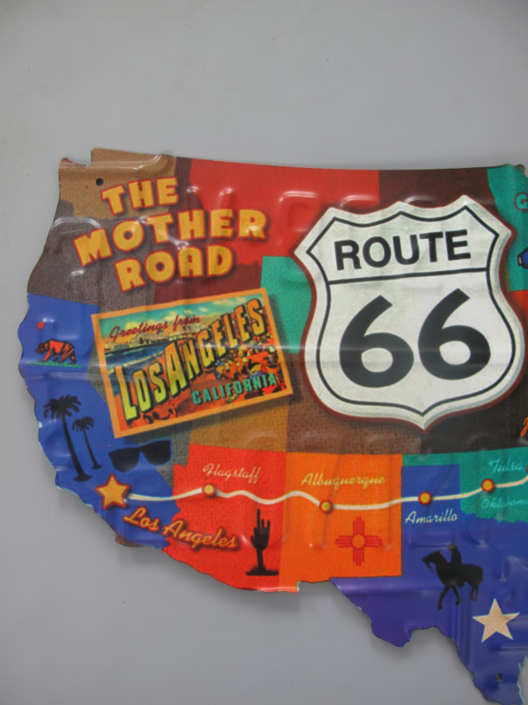 Wandschild(Gestanzt) Eisen Route*66 L.60x36cm