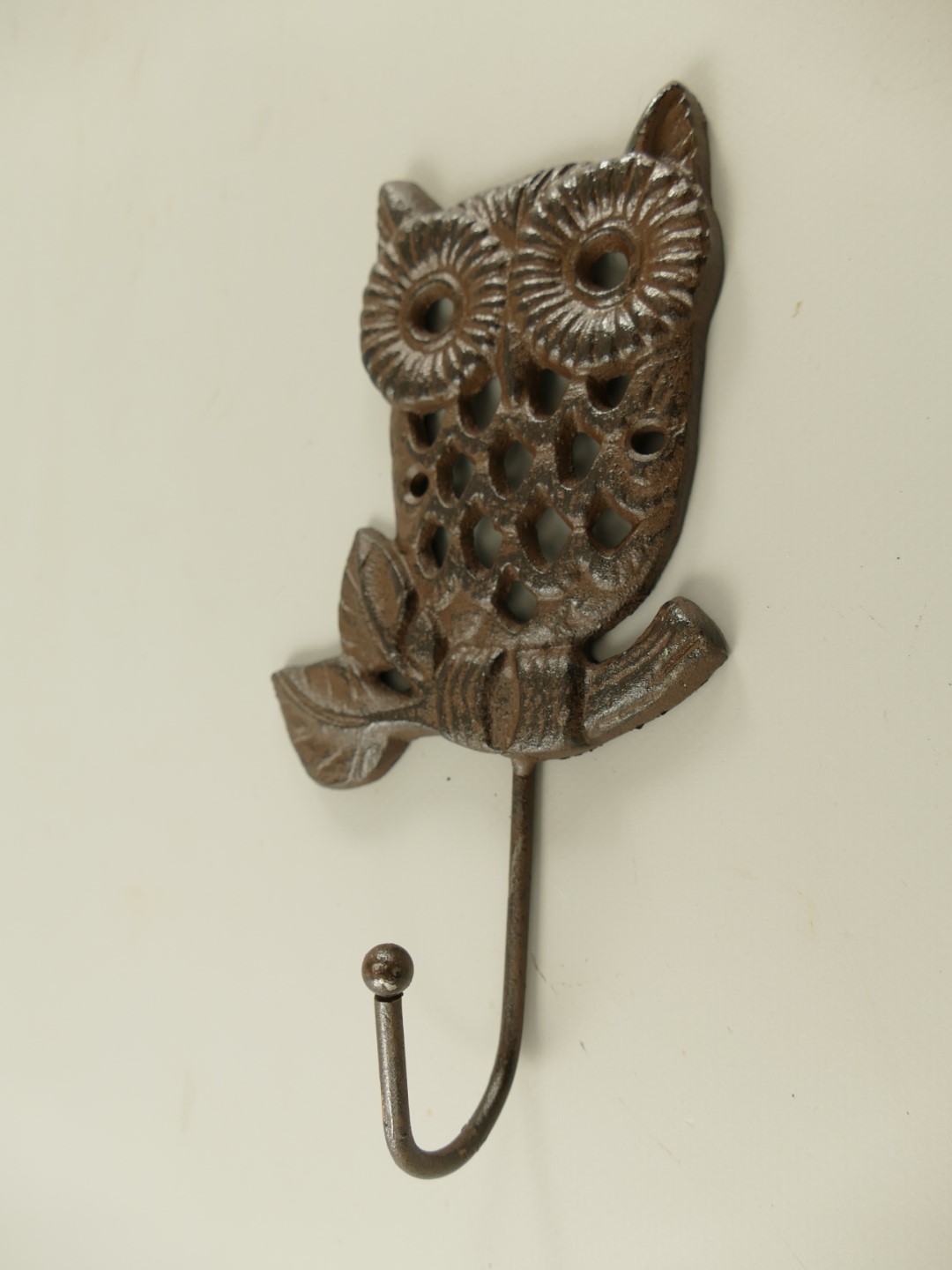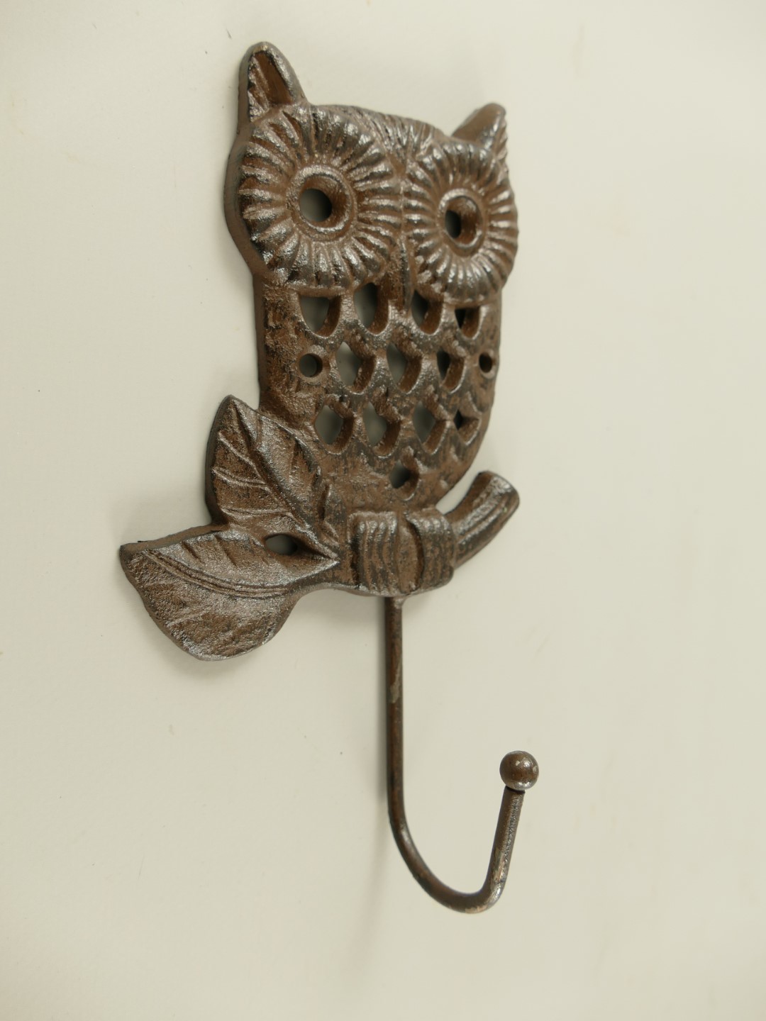 Wandhaken Eule Gußeisen rustikal braun H.20cm