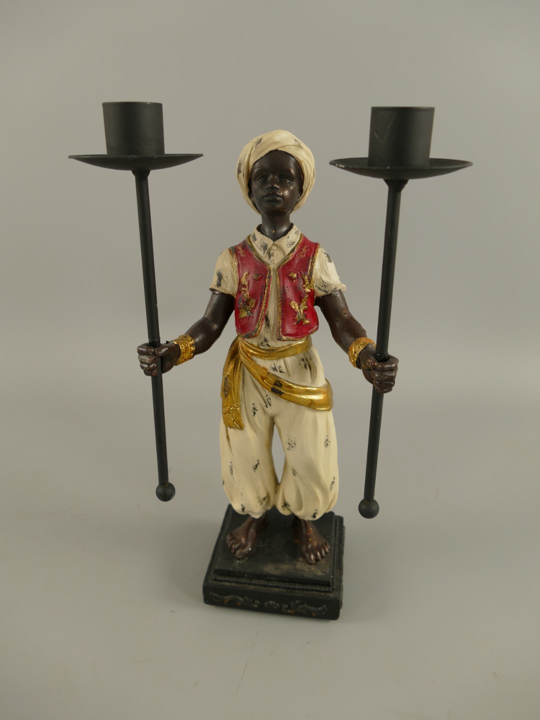 Leuchter/Figur 2*Flamig farbig Polystein H.28x16cm