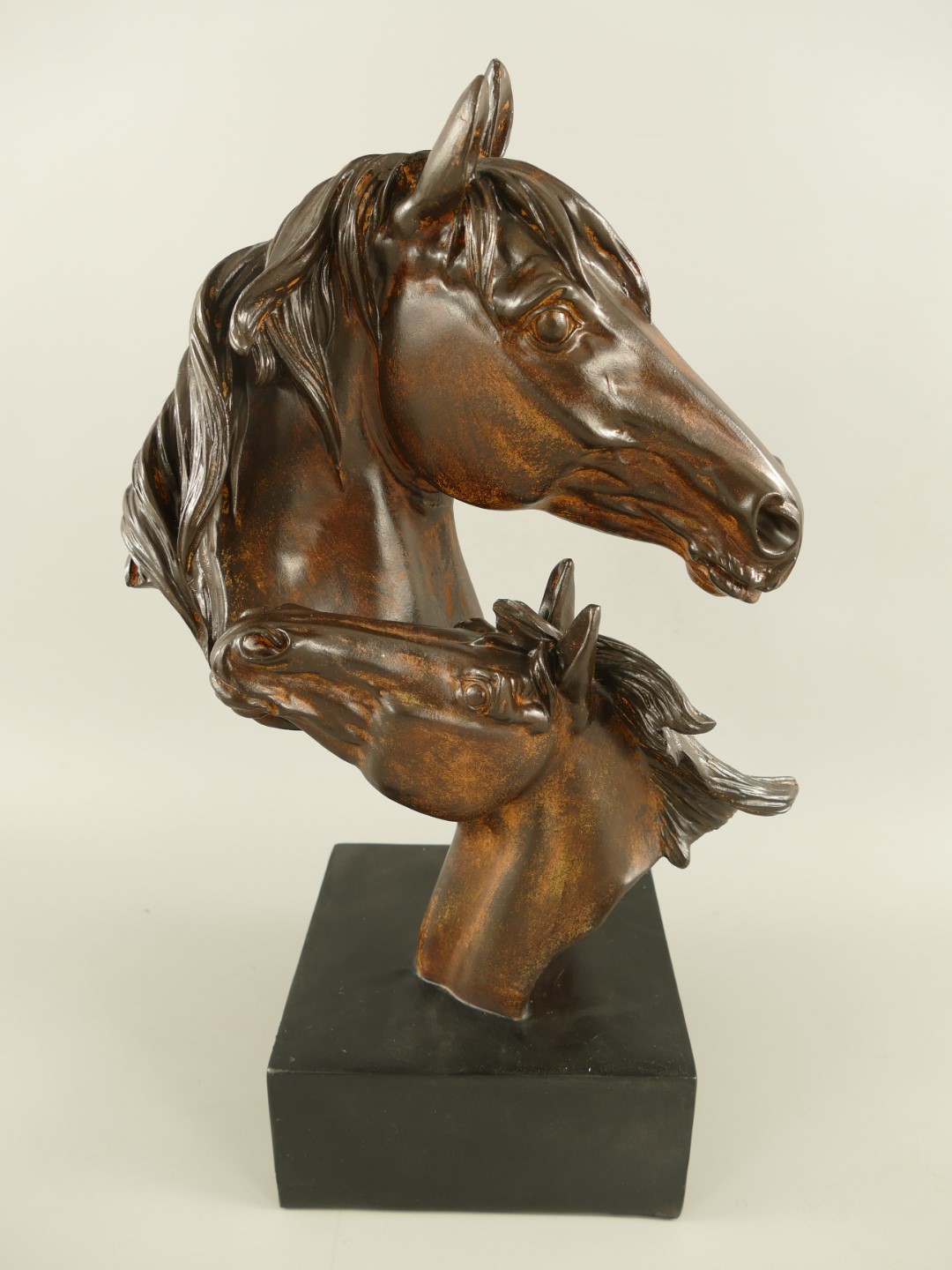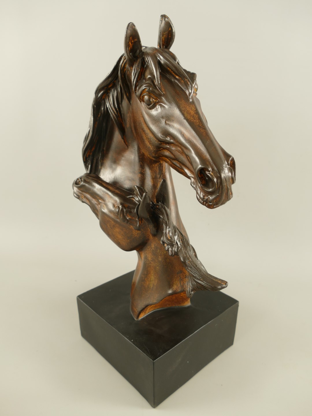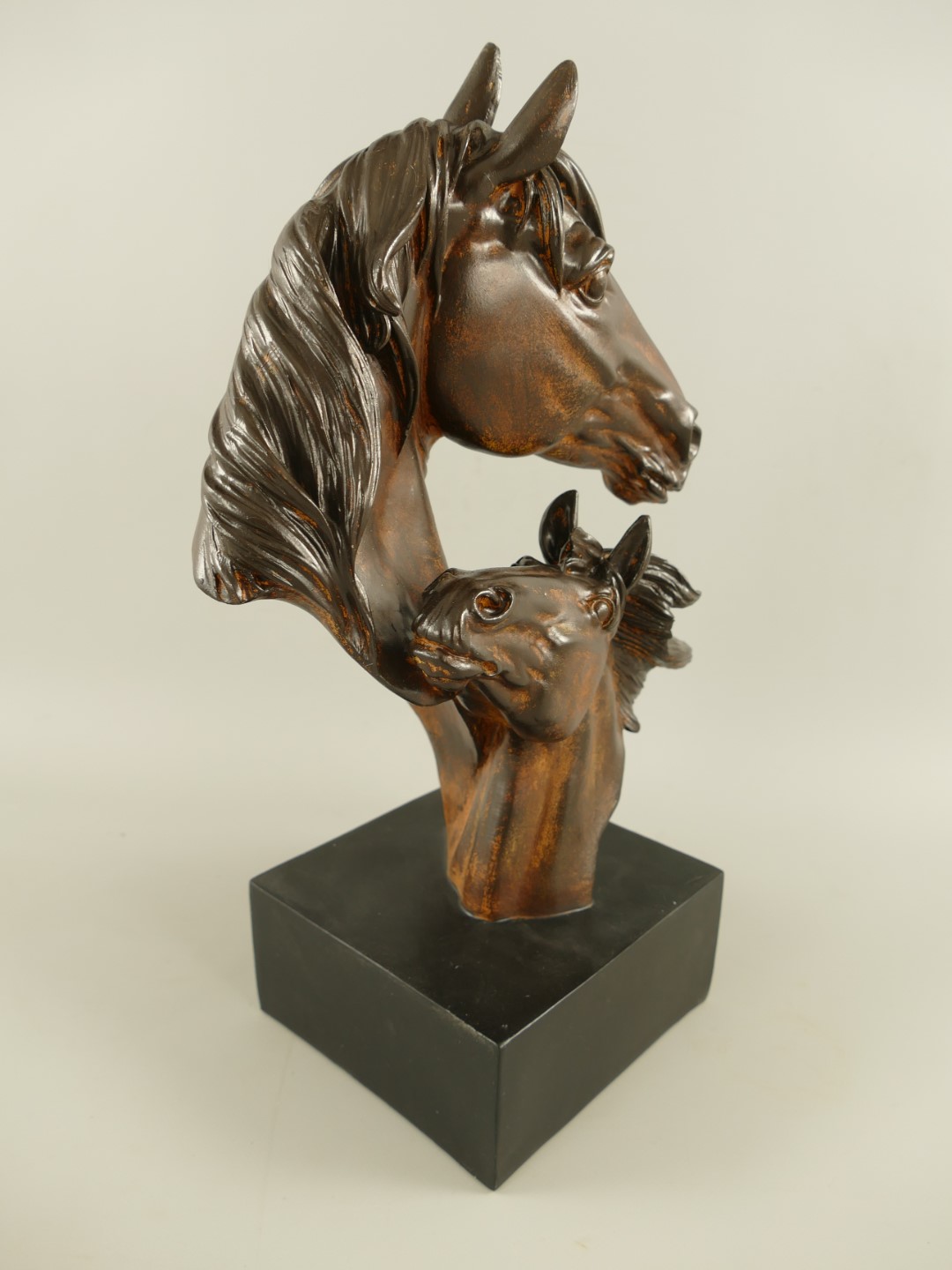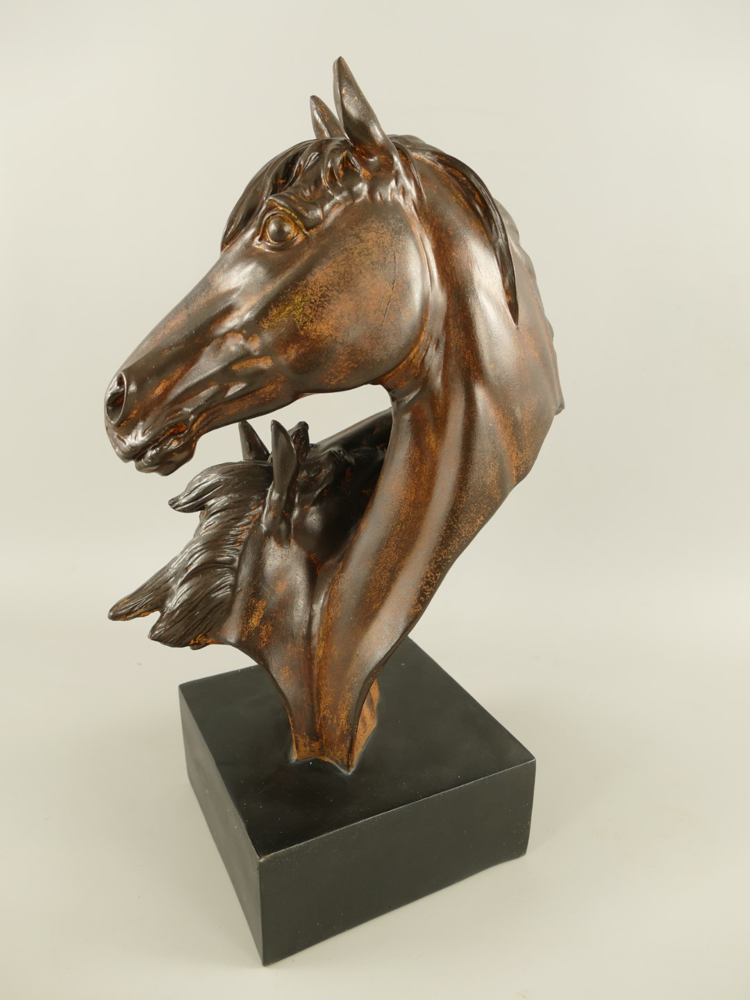 Pferdkopf Polystein Schwarz/Holz farbig H.44x28cm
