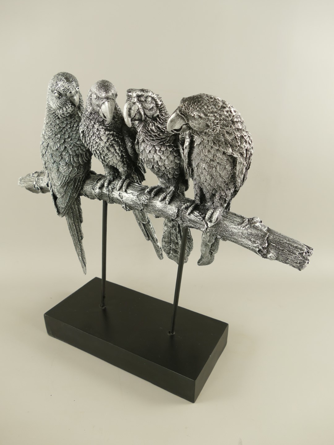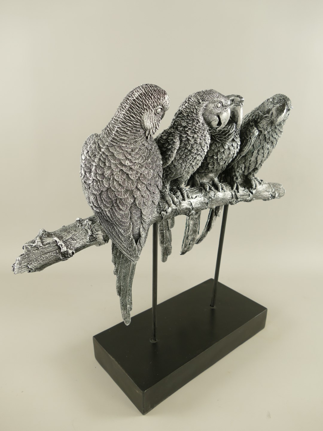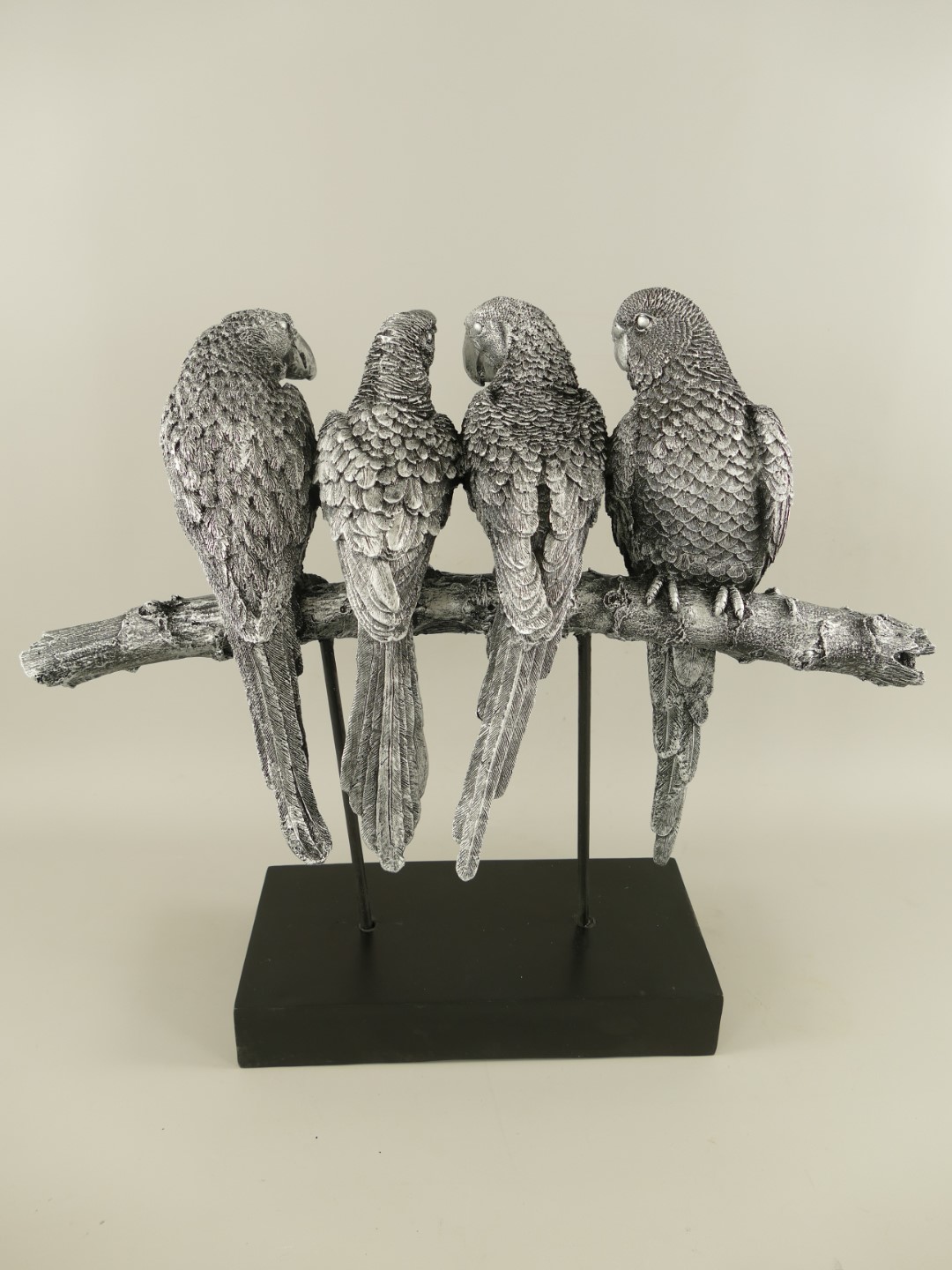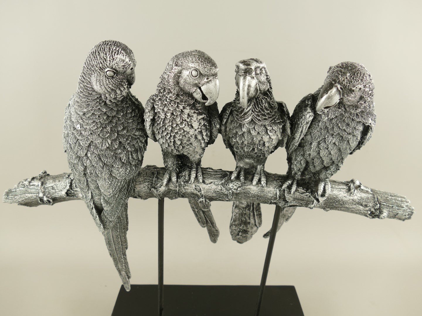 Papageien Polystein Schwarz/Silber farbig L.58cm