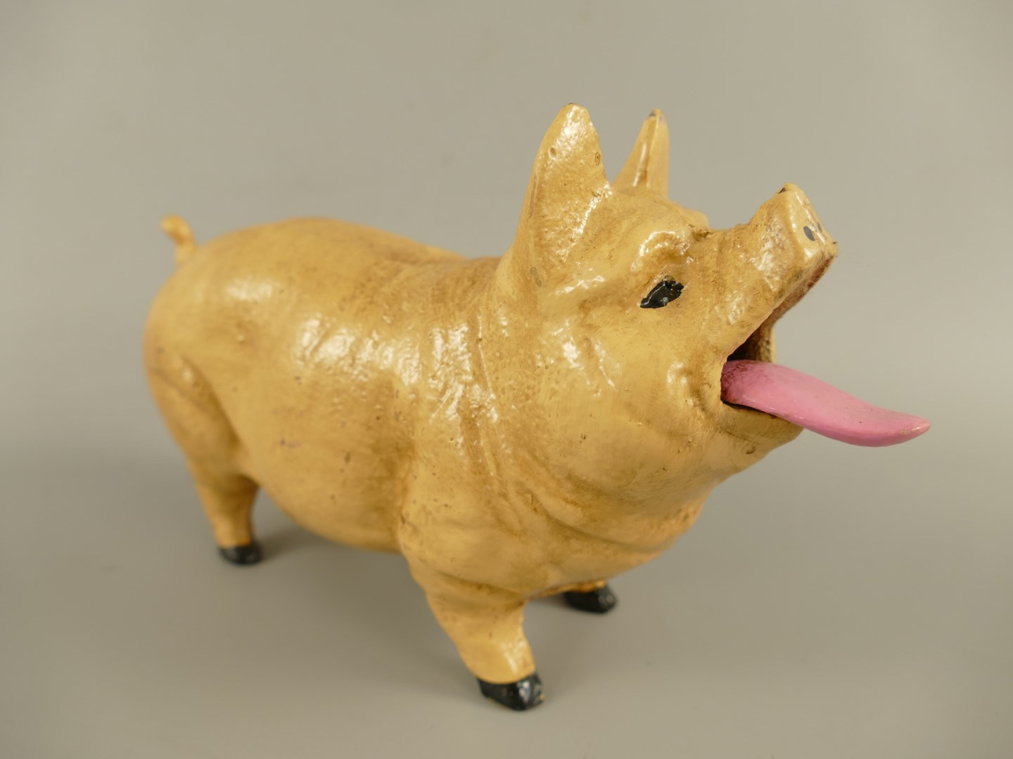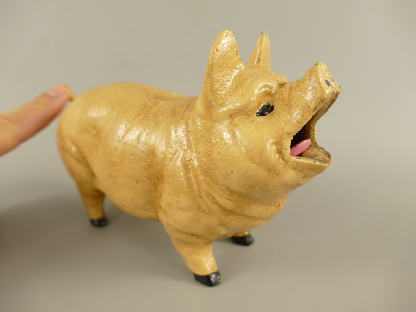 Spardose(Mechan.)Figur SCHWEIN Eisen L.21cm