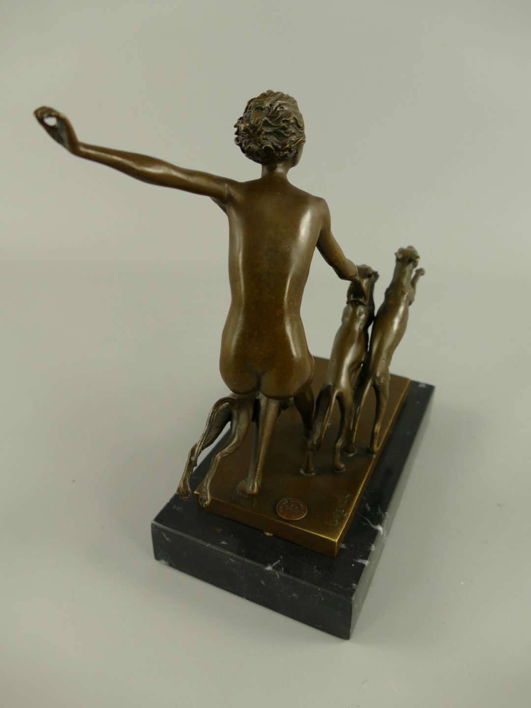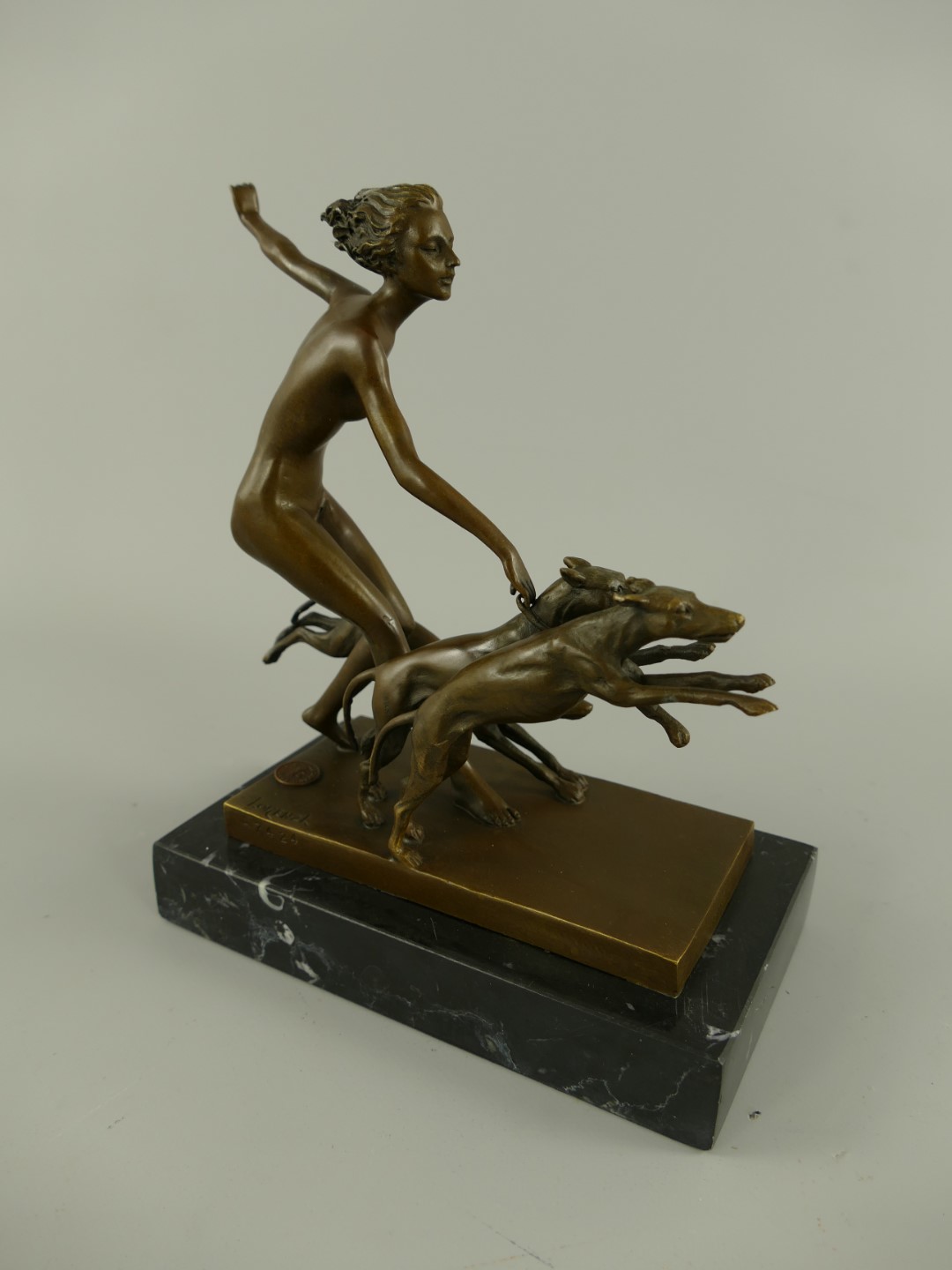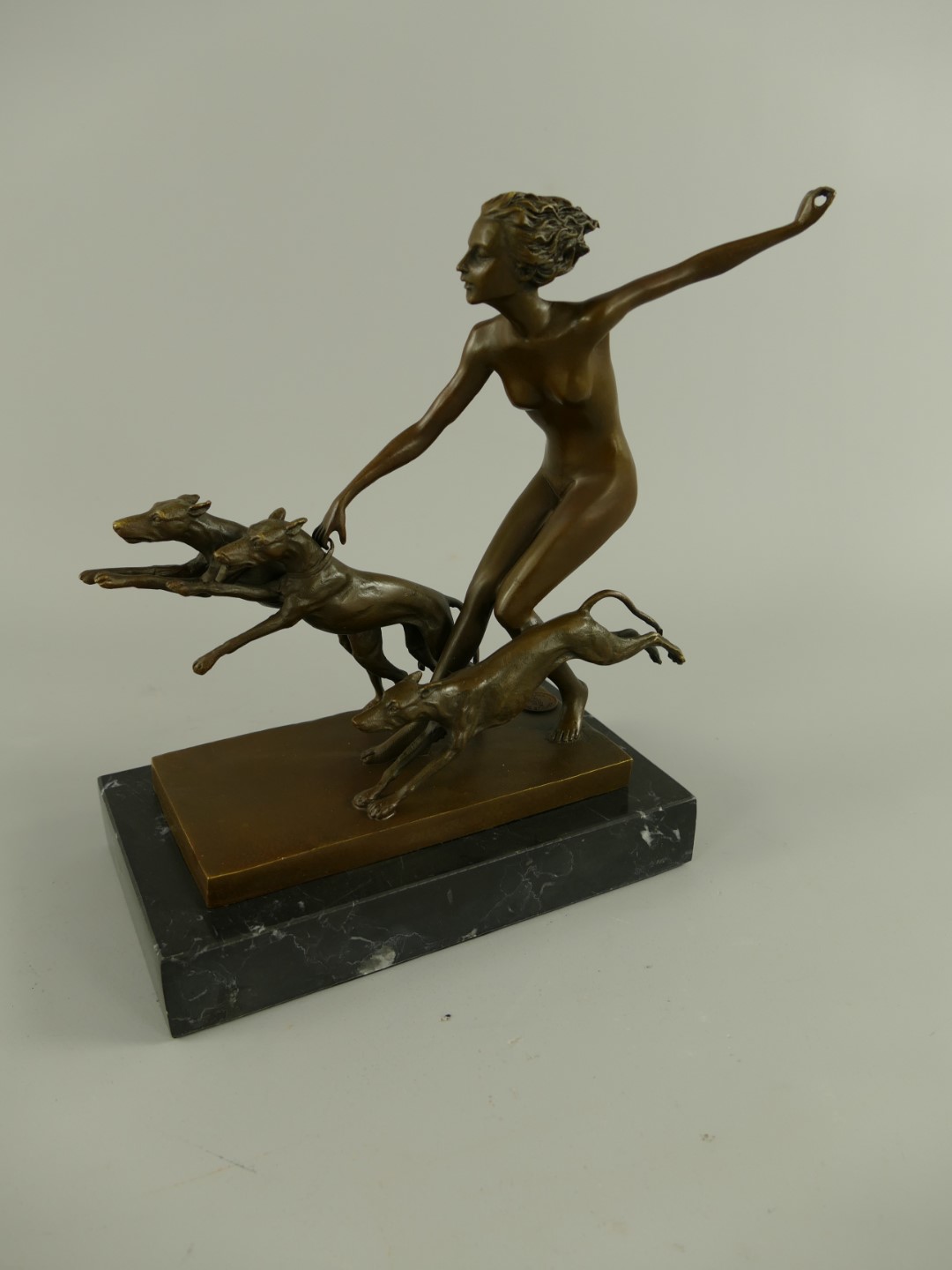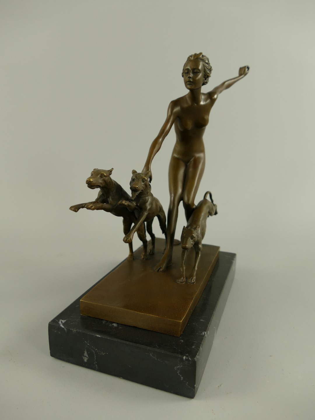 Figur Bronze Frau mit Hunden H.23x20cm