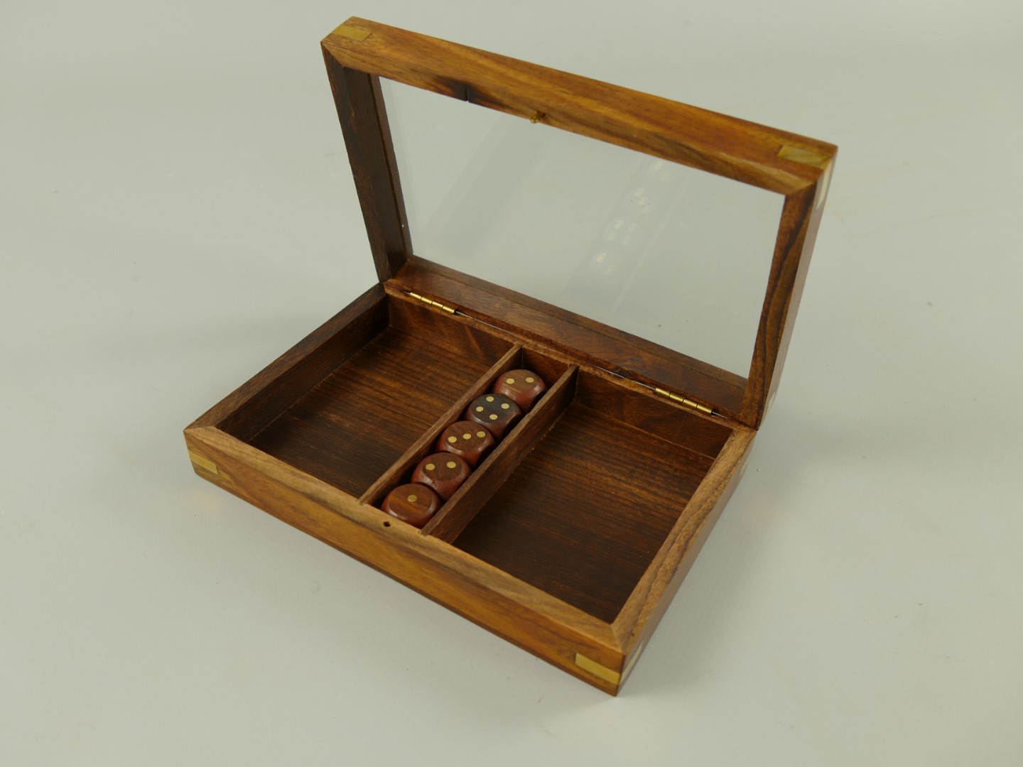 Spielkarten Holzbox Würfel (5x) L.18x12cm