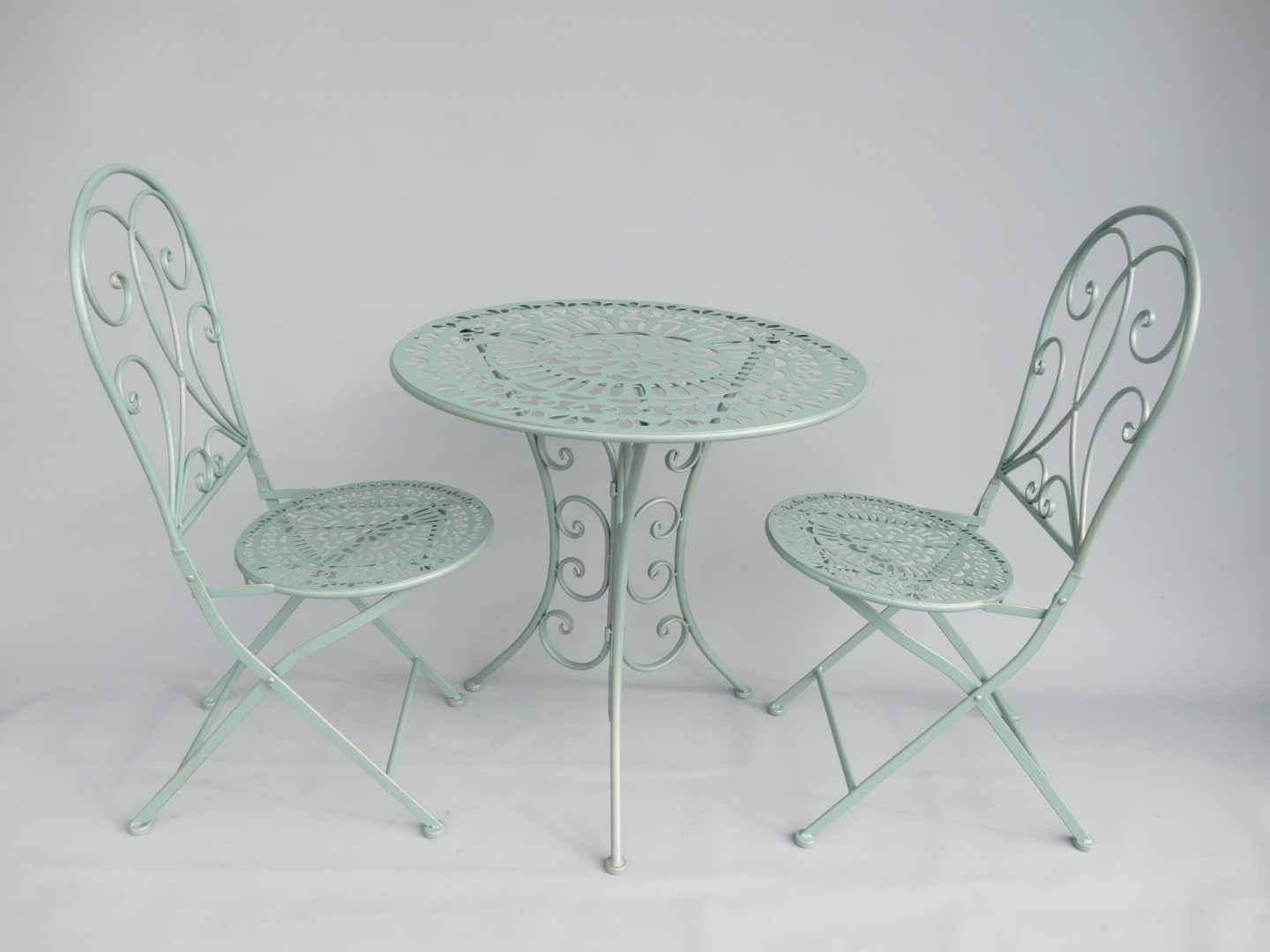 *ANG. 2xStuhl/Tisch(D.70)Eisen antik Grün SET!!