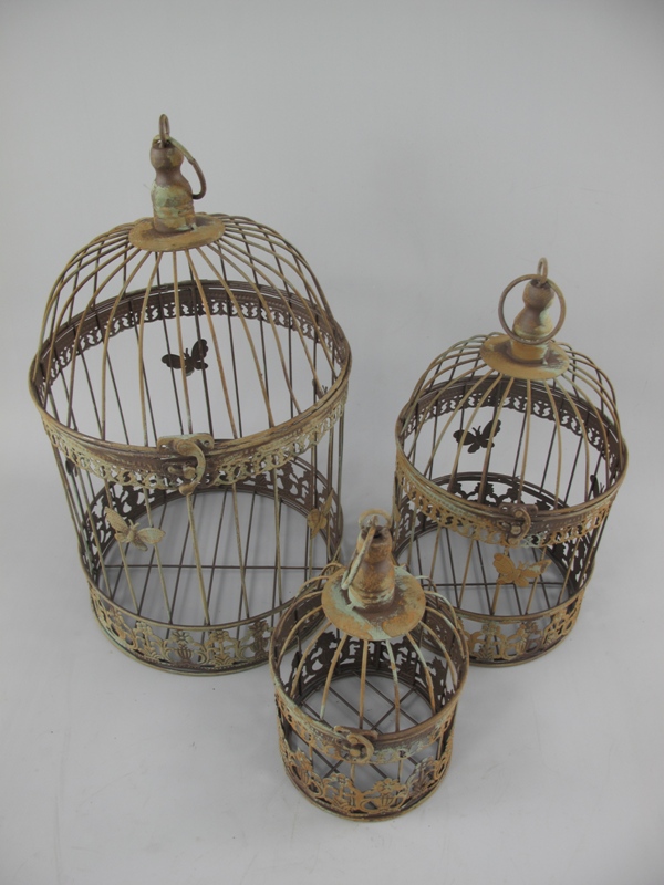 Käfig(Rund) Eisen rust./grün Set/3 H.45/34/25cm