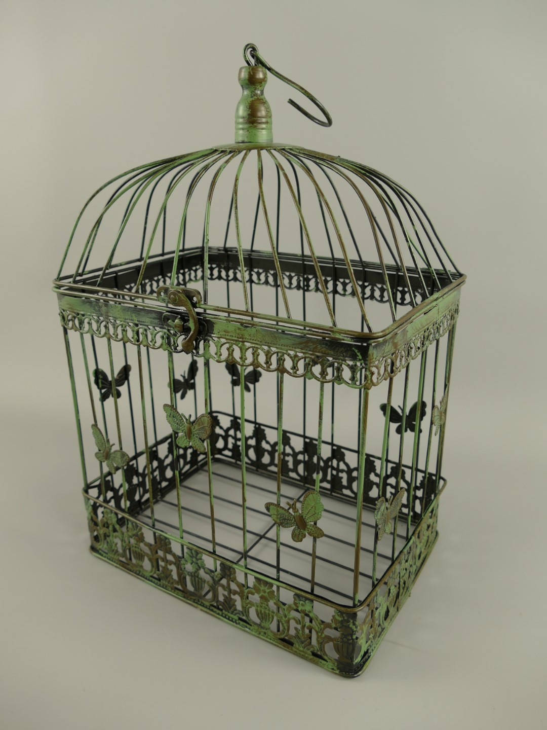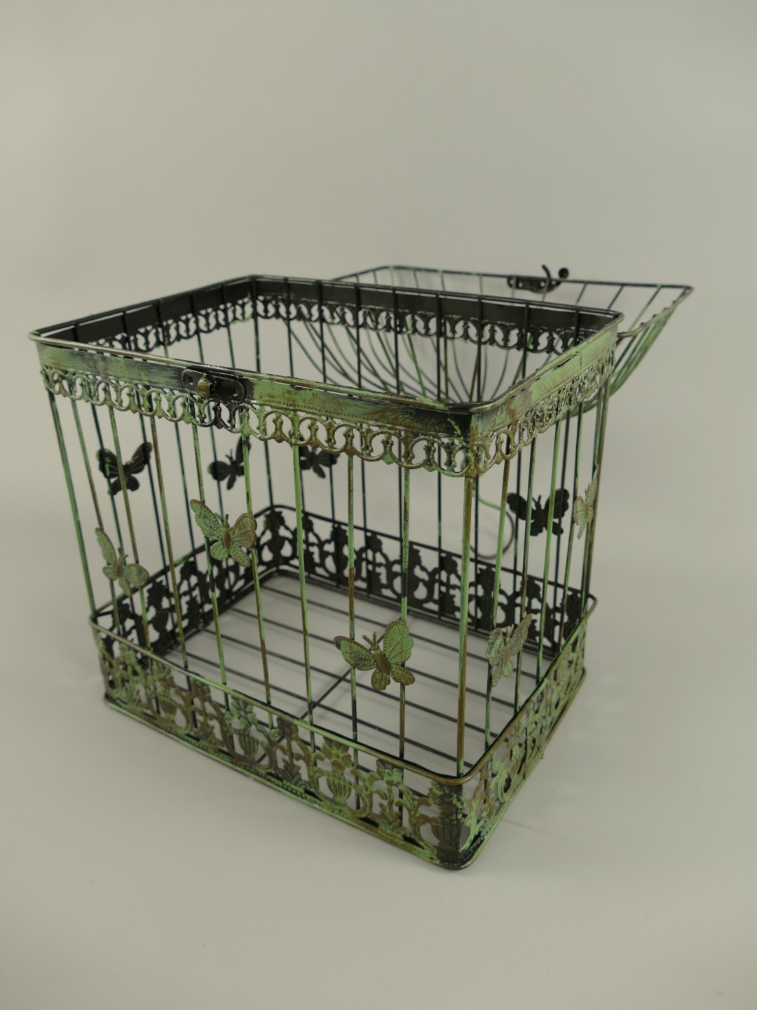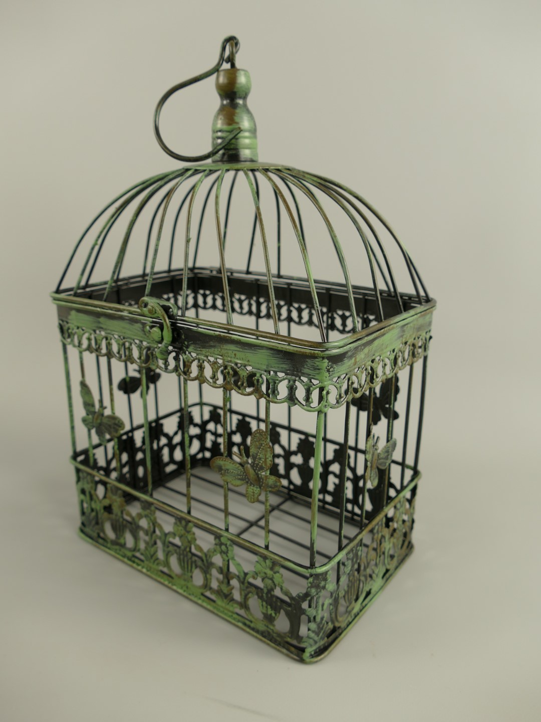 Käfig(eckig) Eisen rustik. grün Set/3 H.43/34/25cm