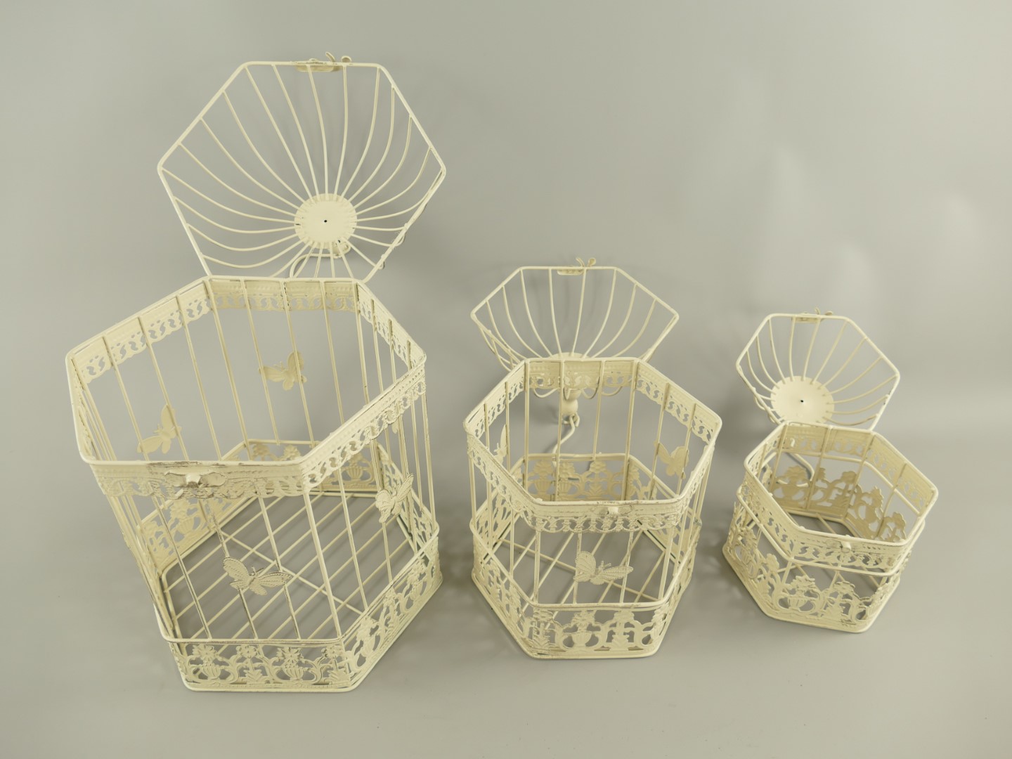 Käfig 6*ECK Eisen rust. weiss Set/3 H.26/46cm SET!