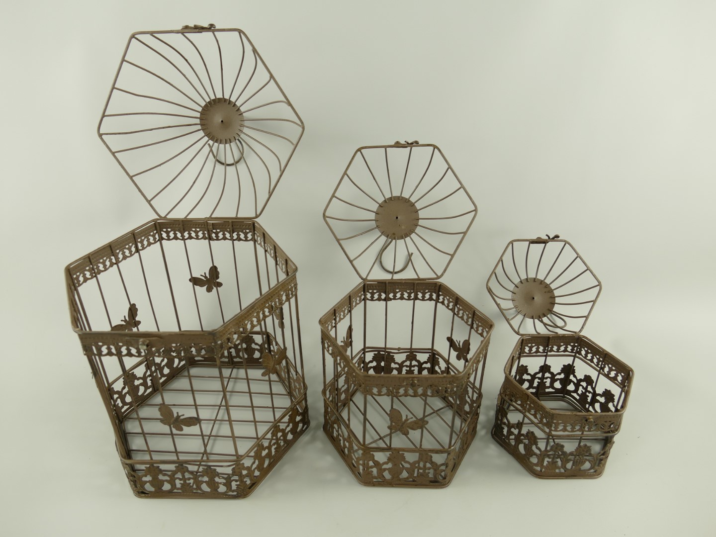 Käfig 6*ECK Eisen rust. braun Set/3 H.26/46cm SET!