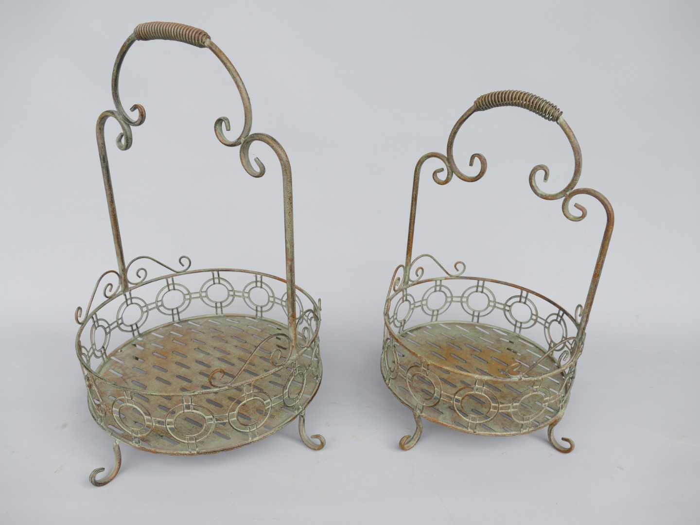 Korbset Rund Eisen rustikal grün Set/2 H.55/48cm