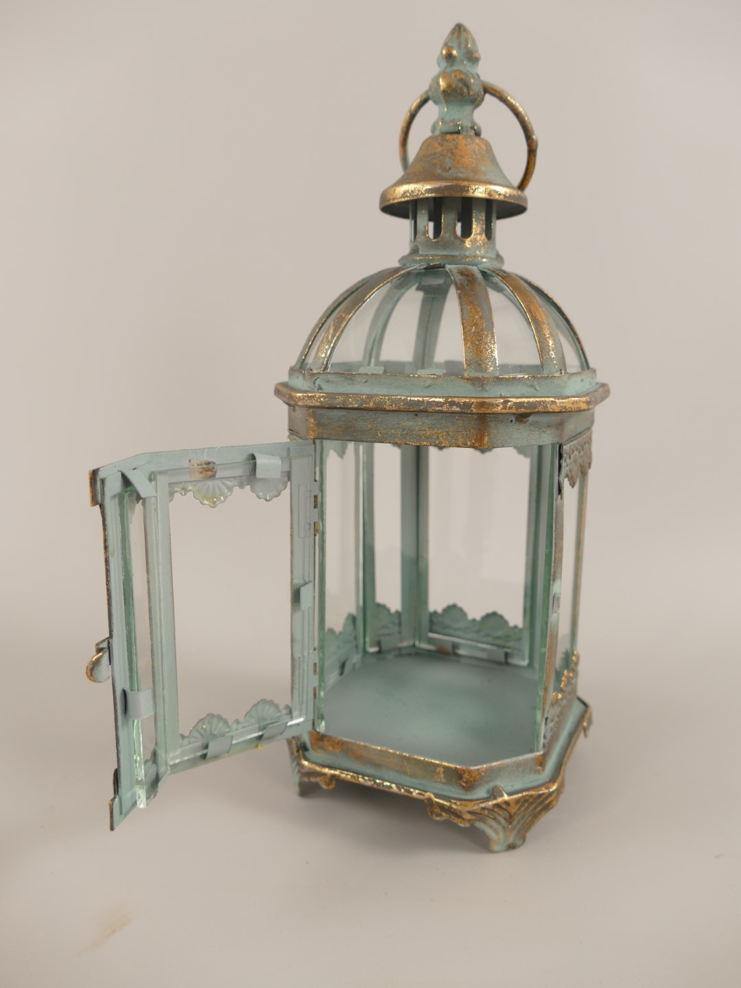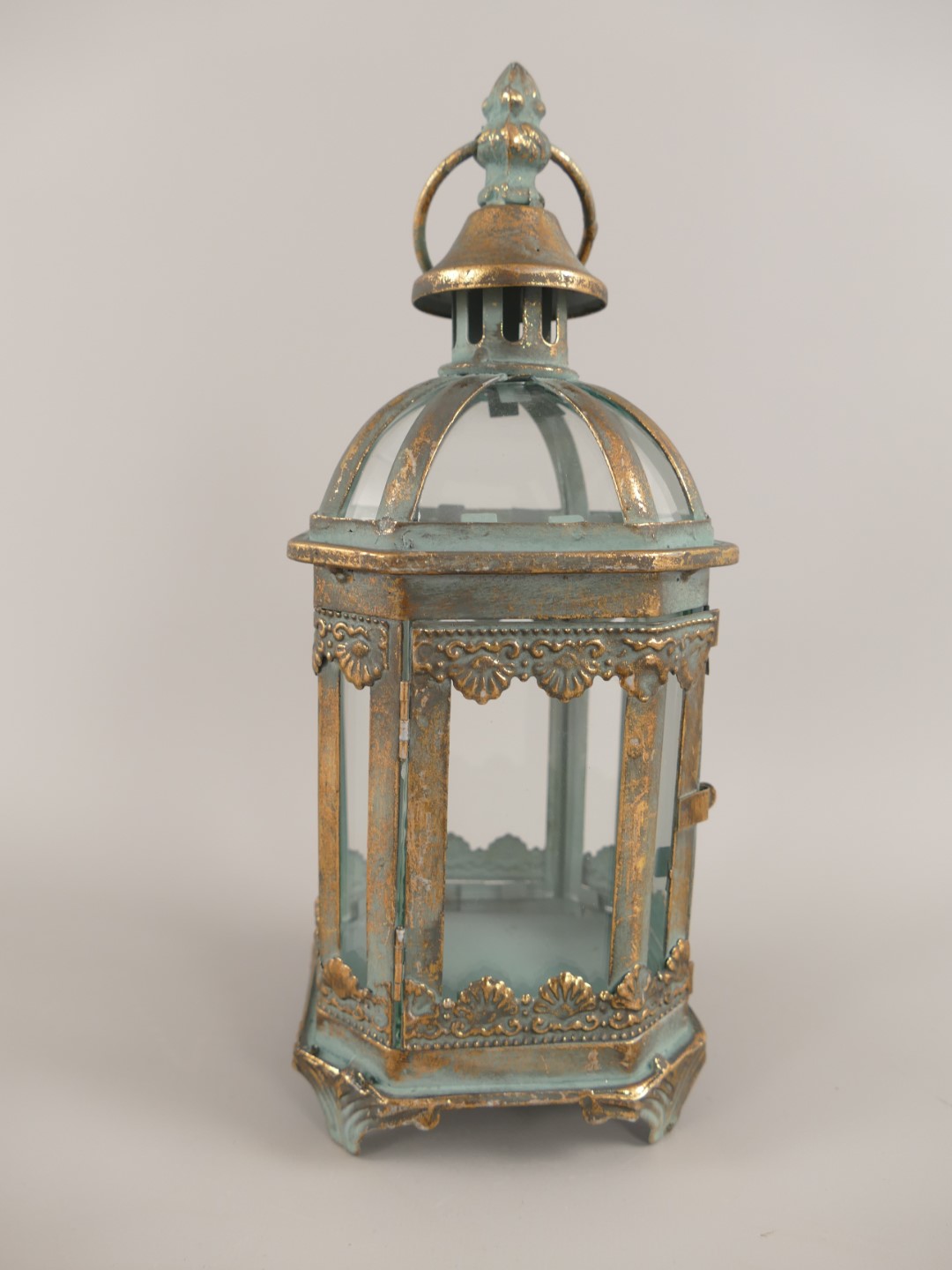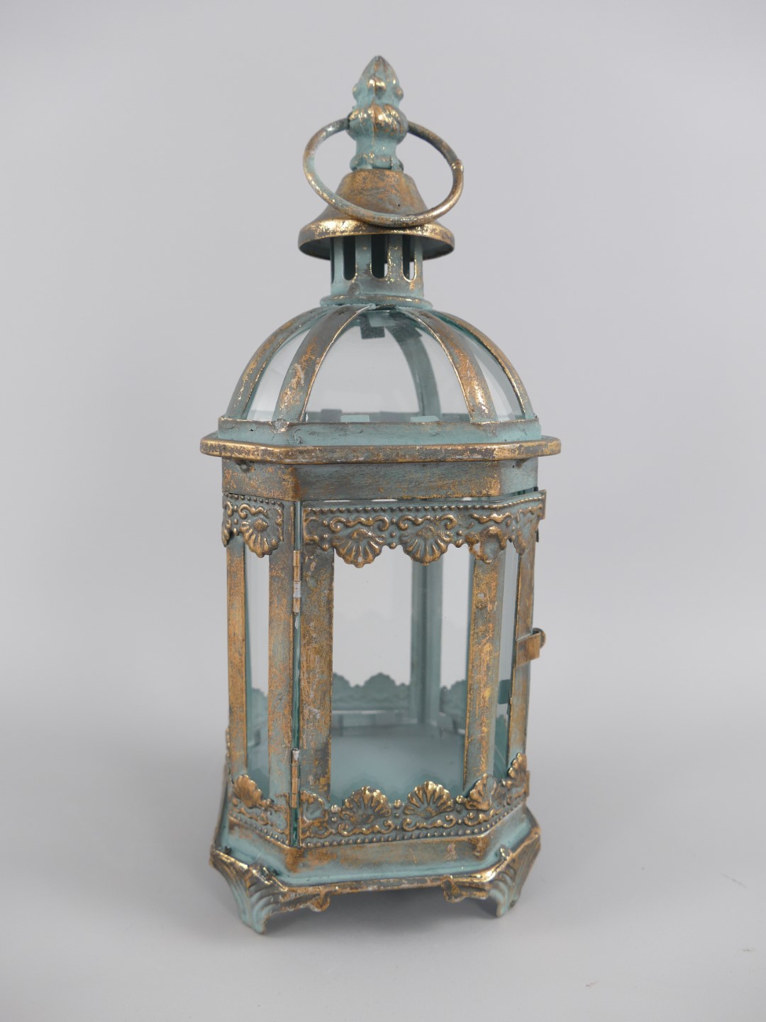Windlicht rustik gold farbig Eisen/Glass H.28cm