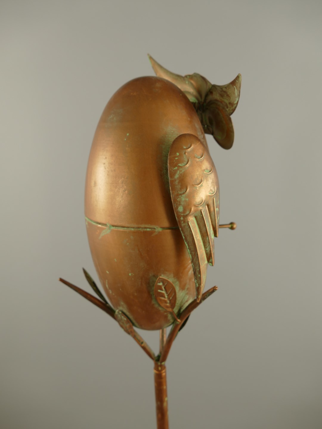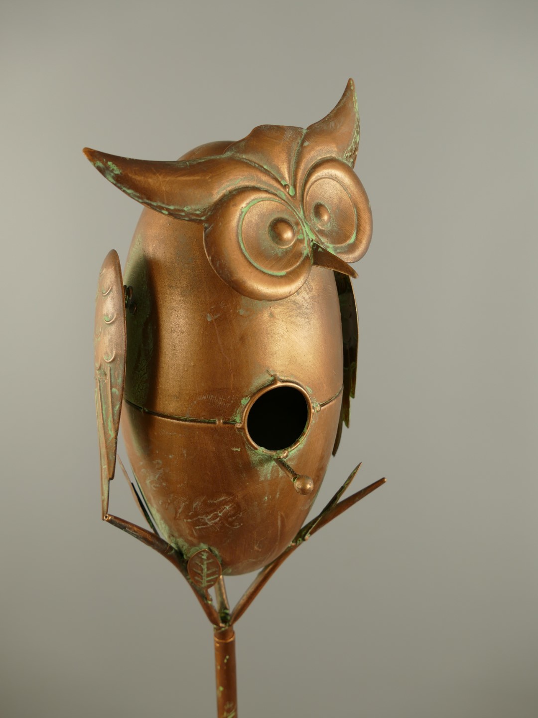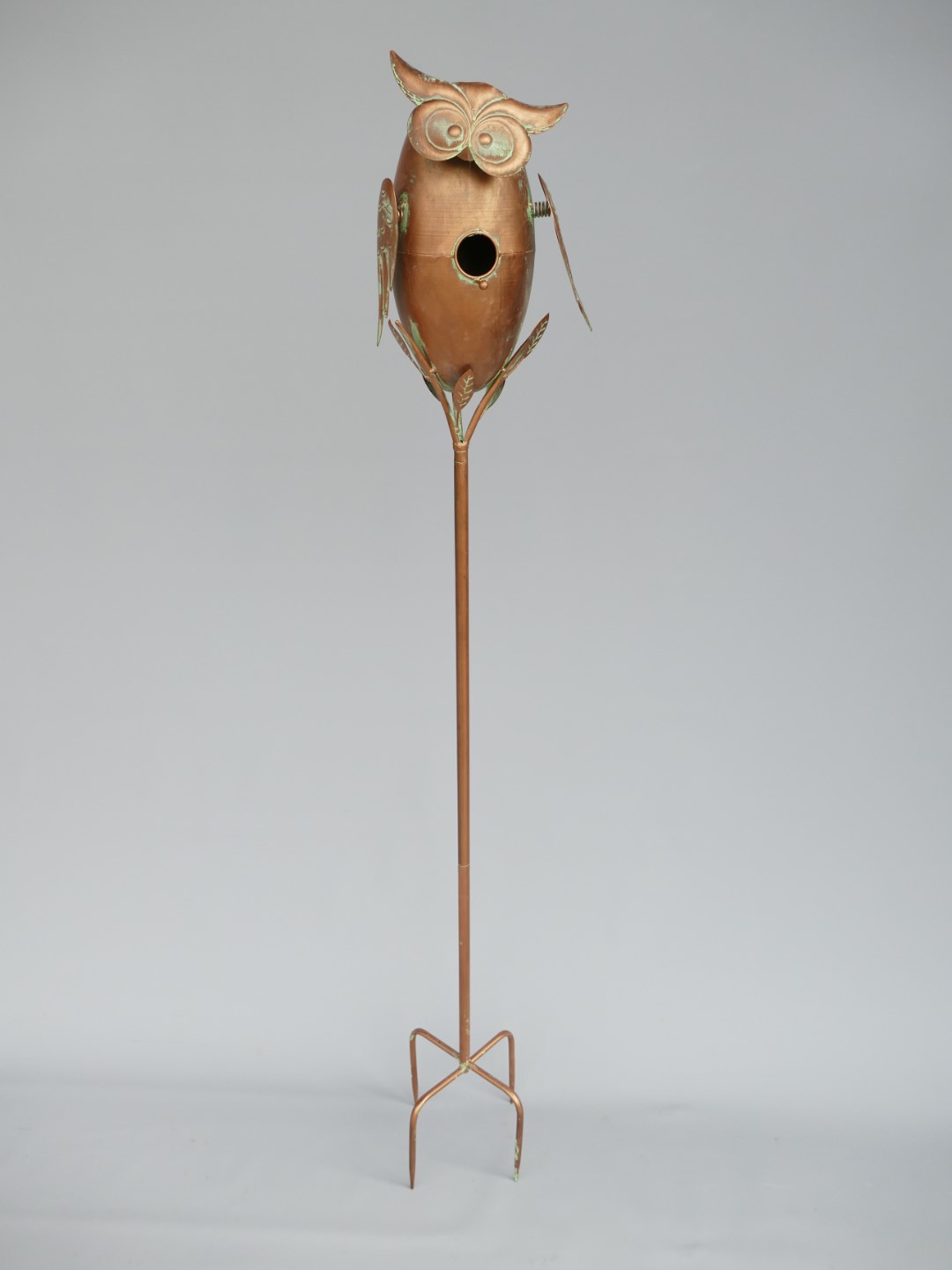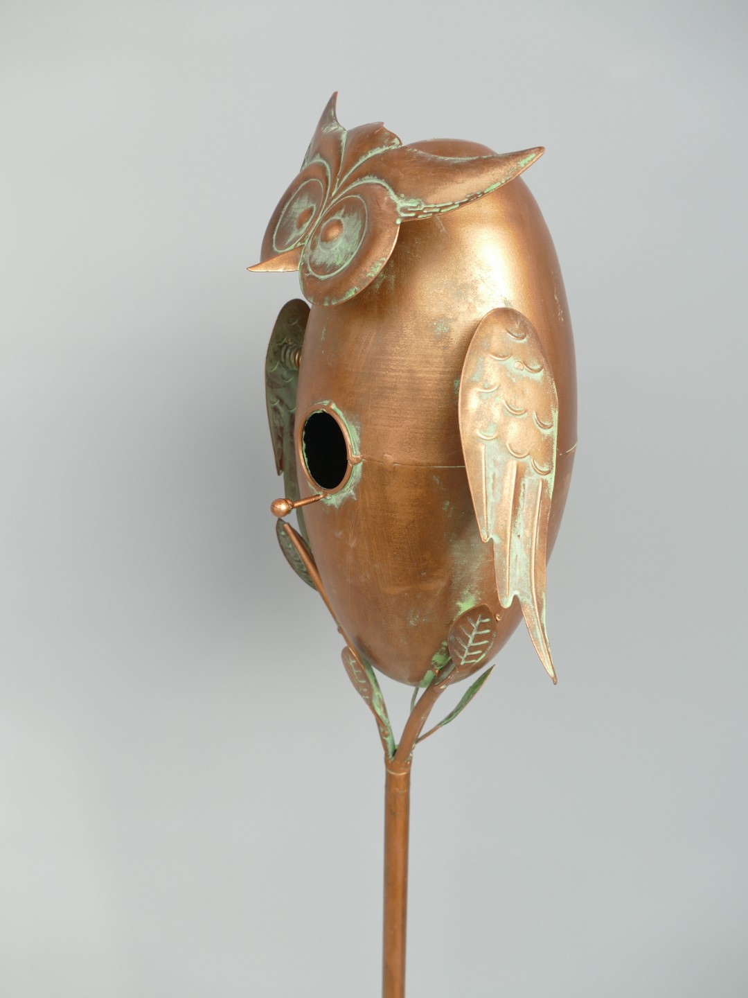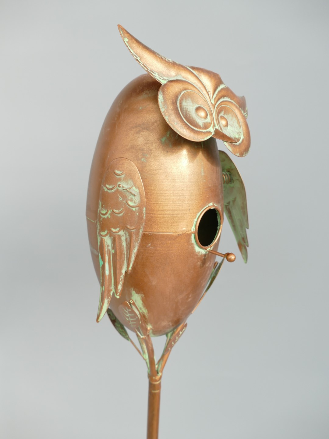 Vogelhaus Eule auf Ständer Kupfer farbig H.158cm