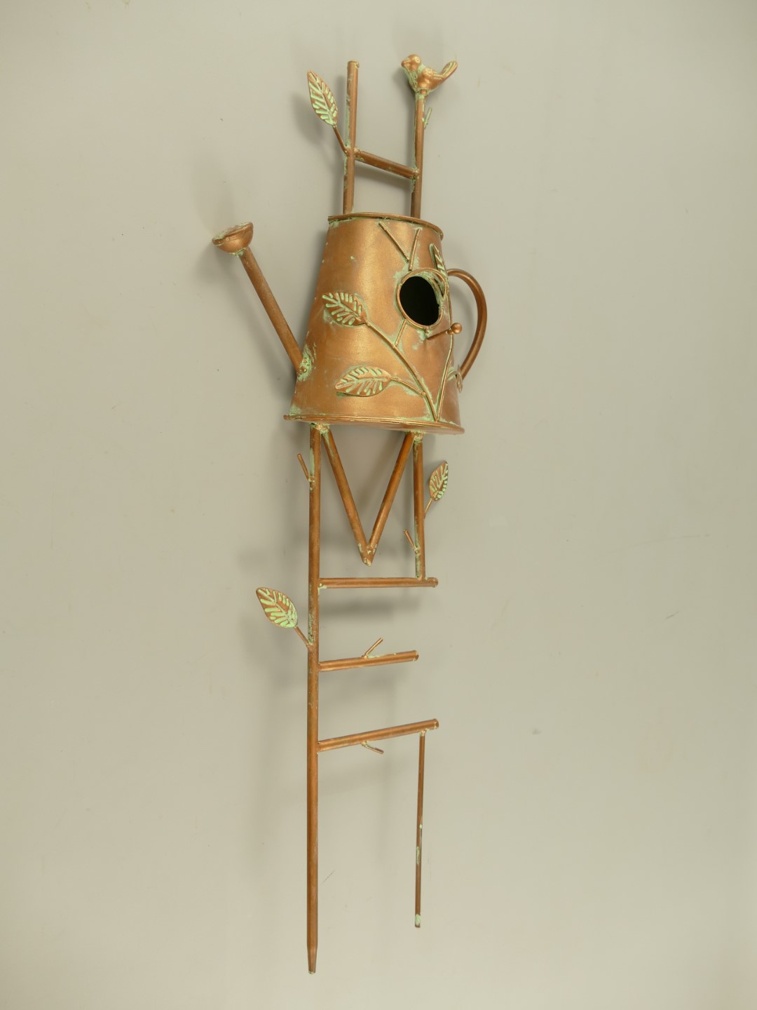 Vogelhaus Gießkanne Ständer Kupfer farbig H.74cm