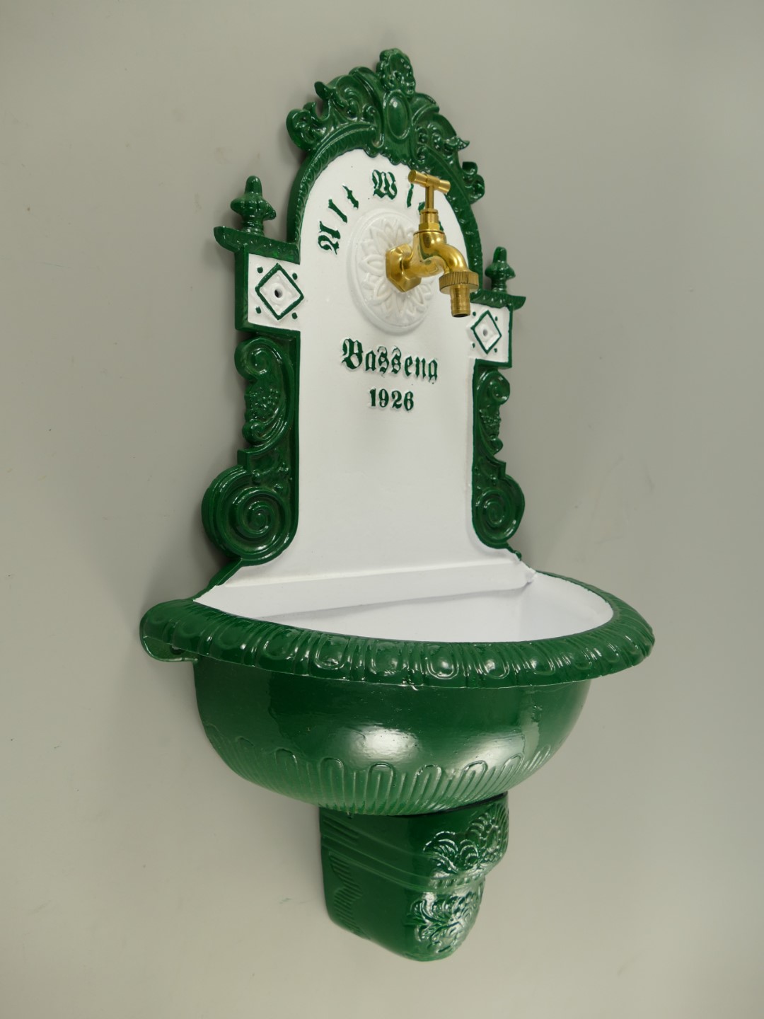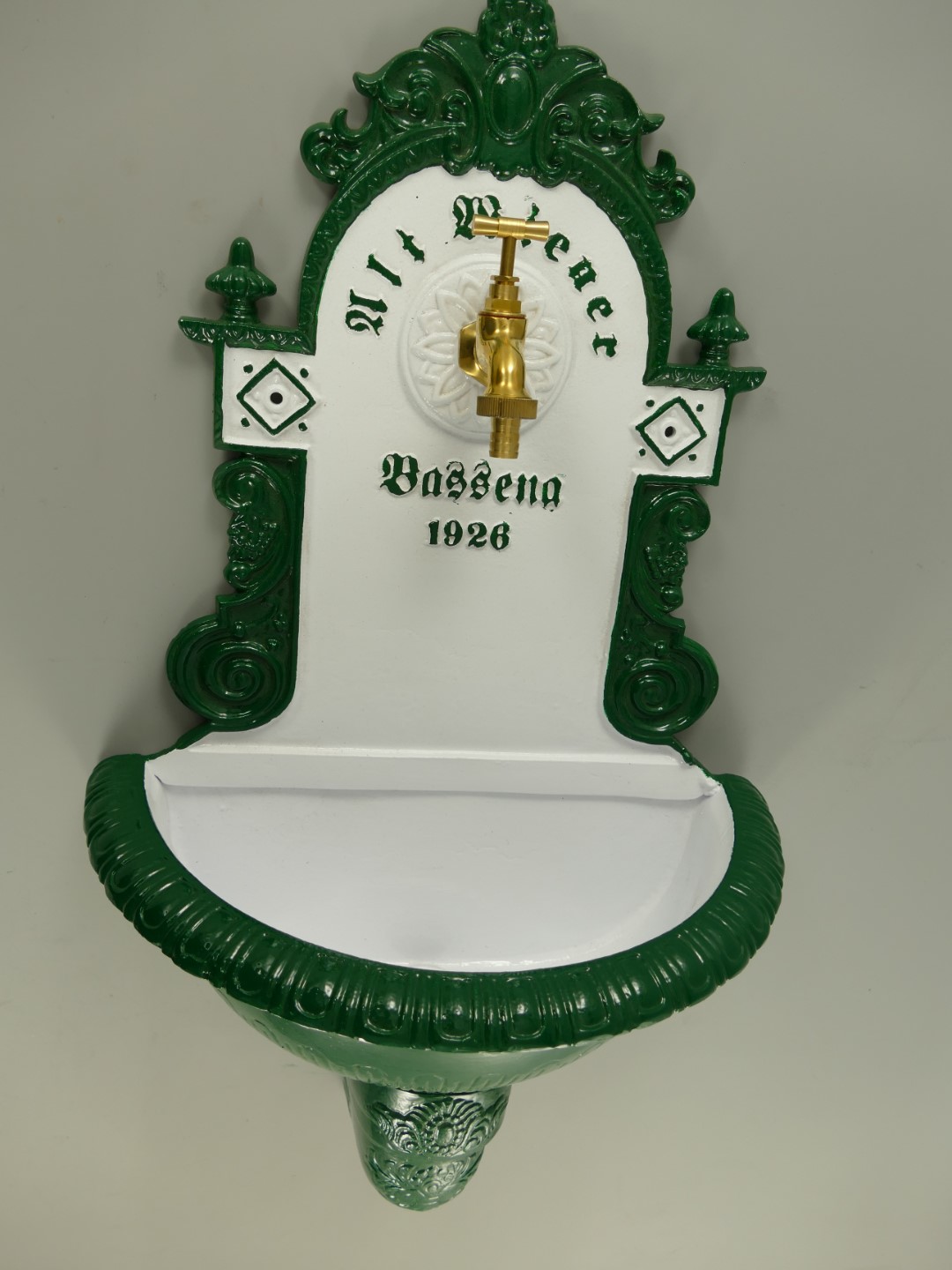 Wandbrunnen 1926 Alu Guß grün/weiß H.72cm