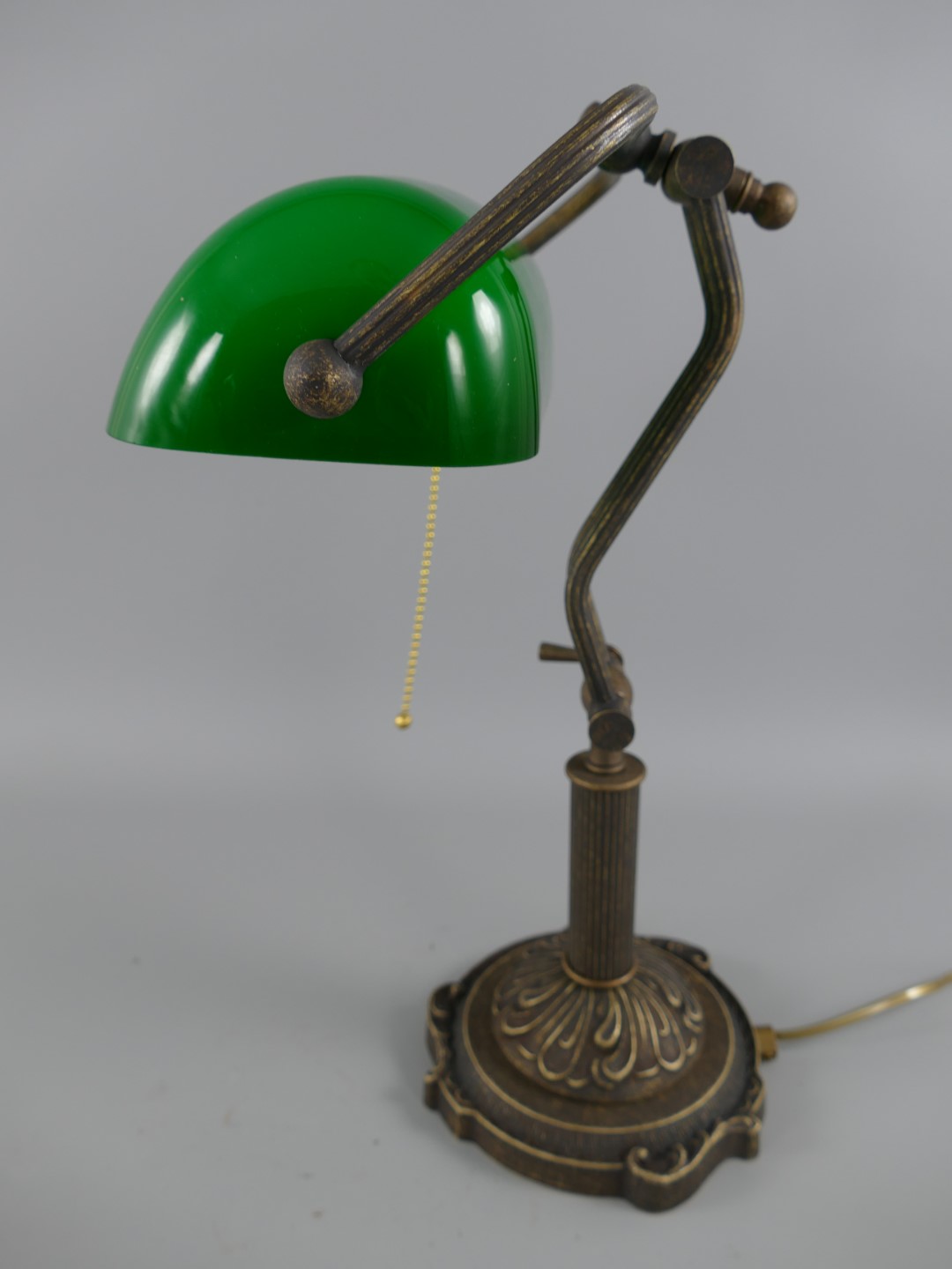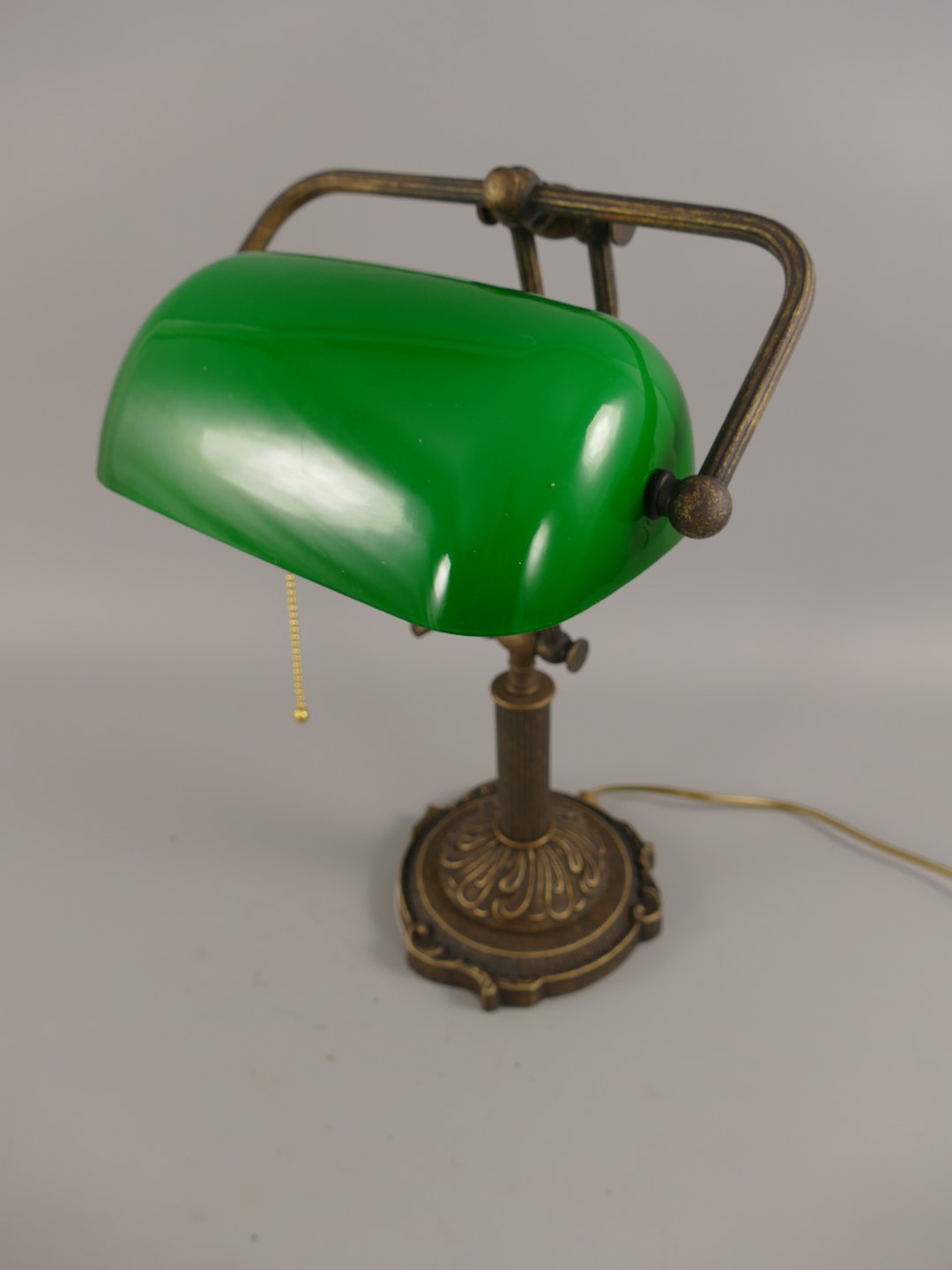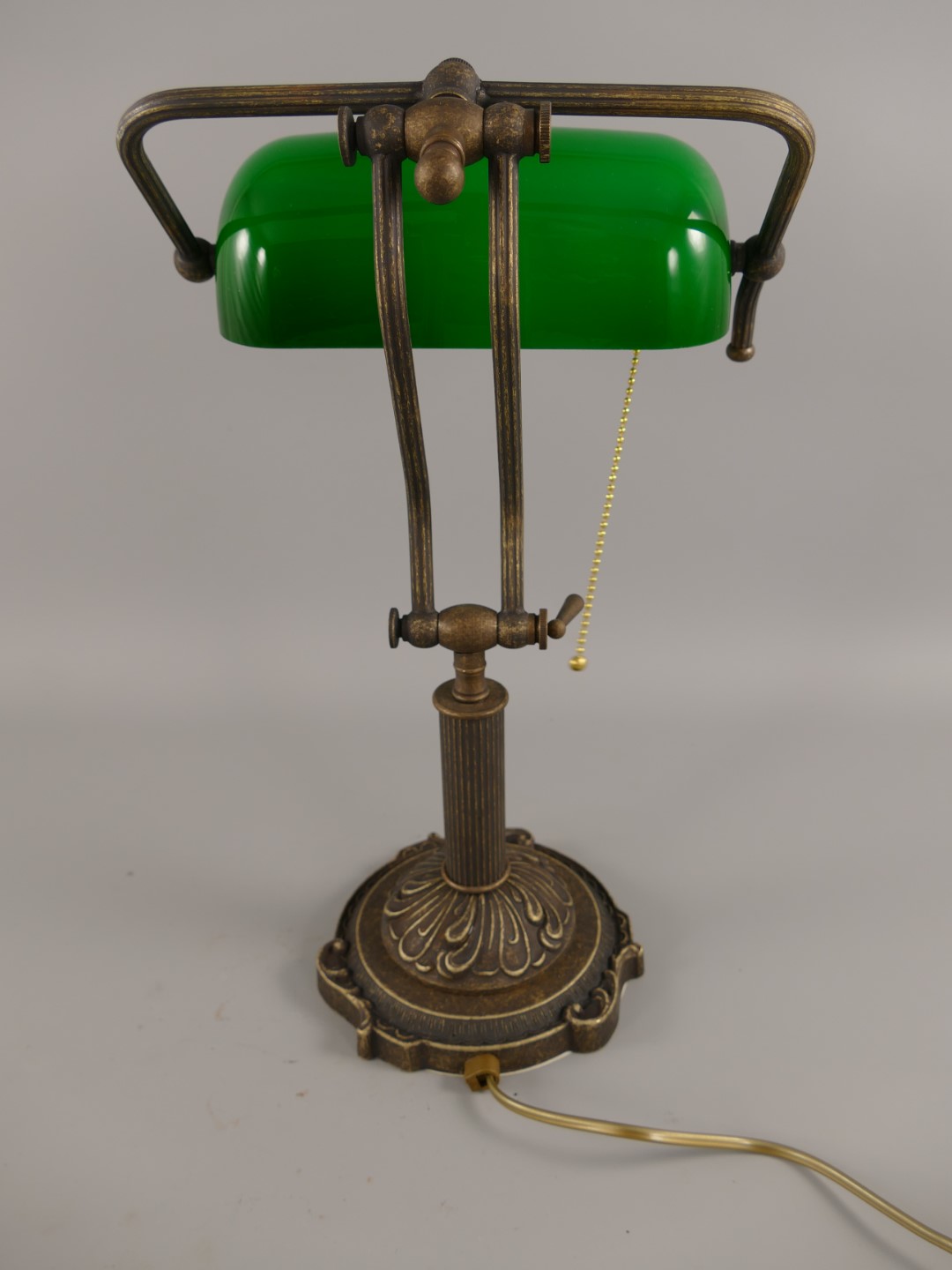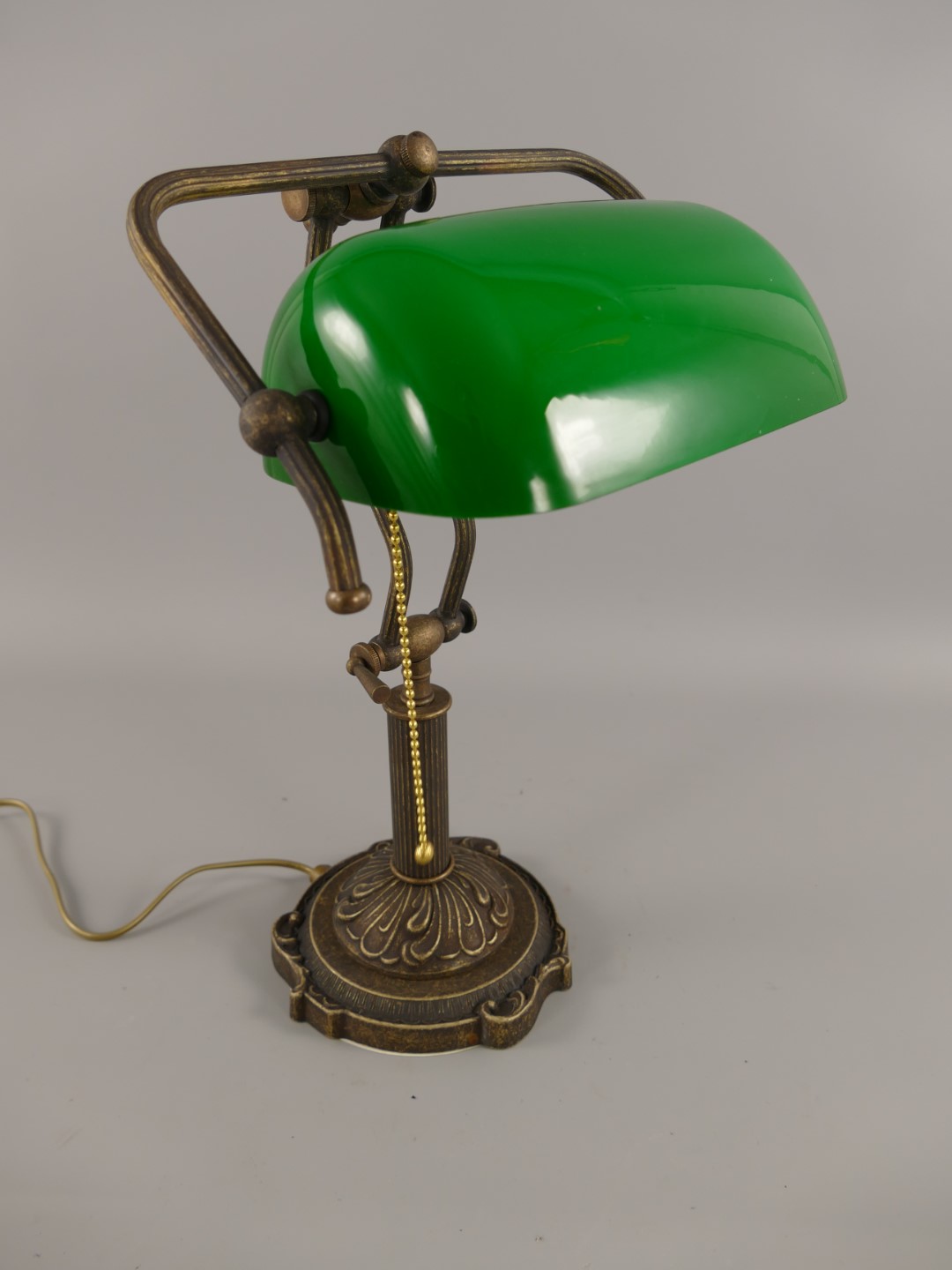 Bankerslampe Messing brüniert Glas grün H.45cm
