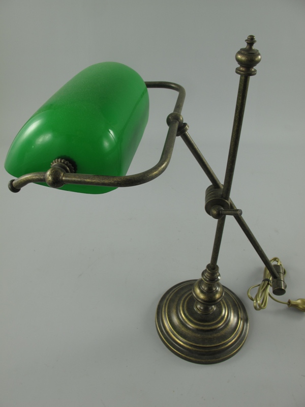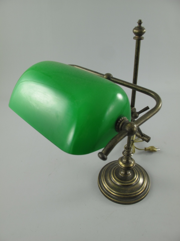 Bankerslampe Messing brüniert Glas grün H.50cm