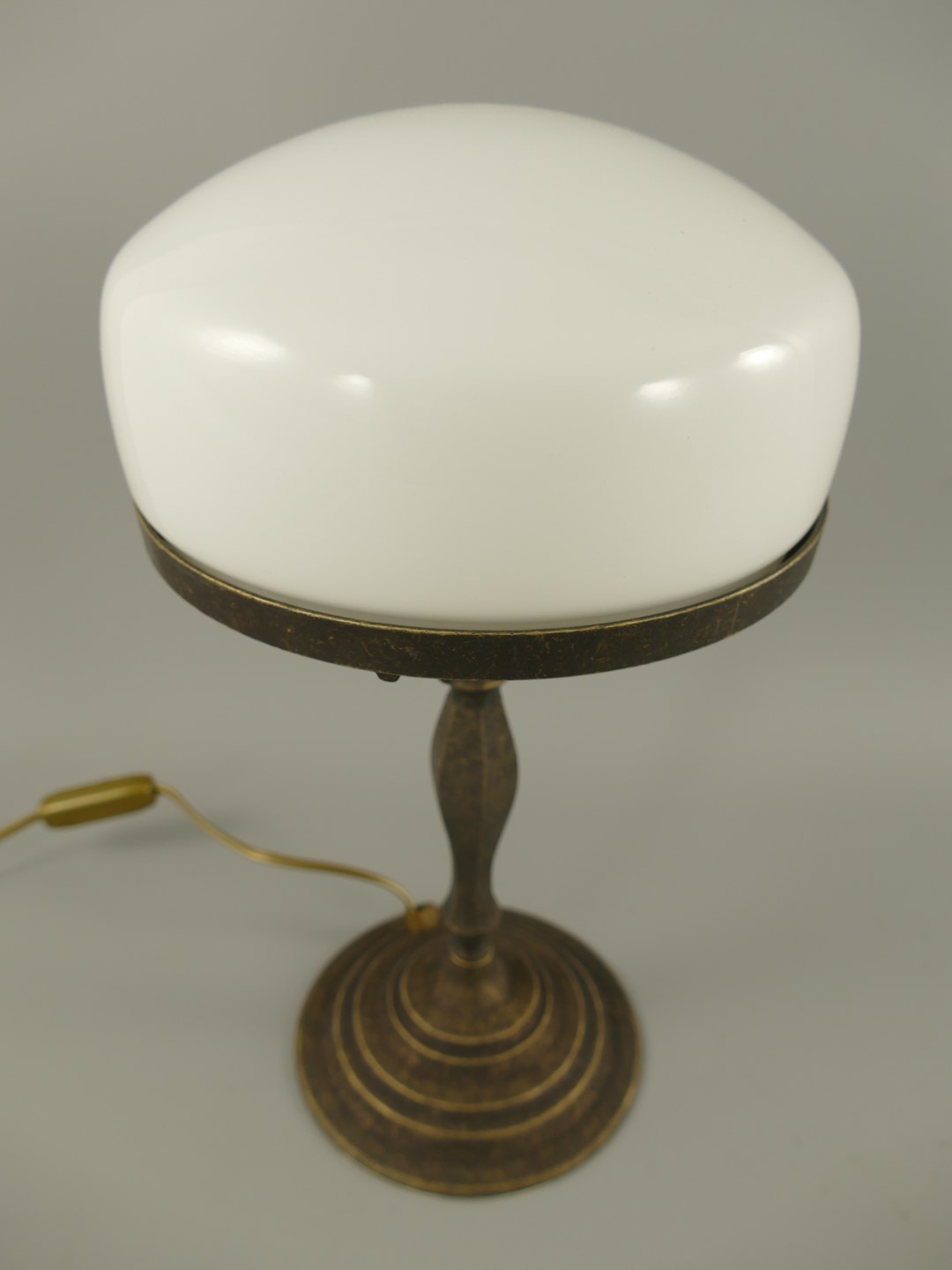 Pilzlampe Messing brün.(Glas farb. weiss)H.37cm