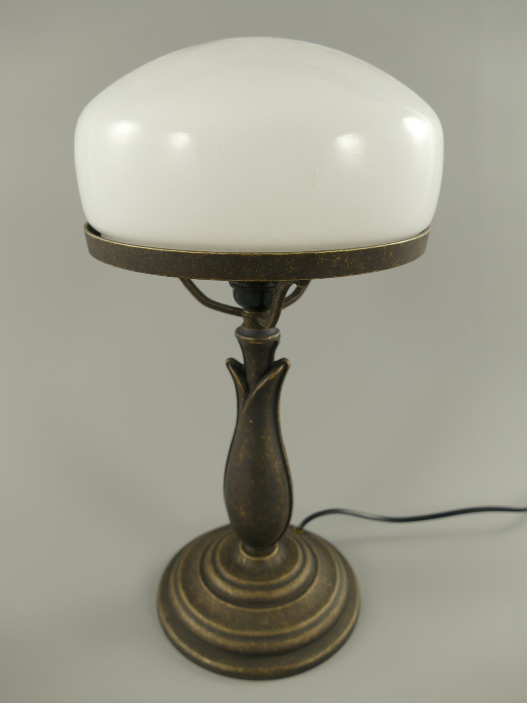 Pilzlampe Messing brün.(Glas weiss 162.PS-W)H.38cm
