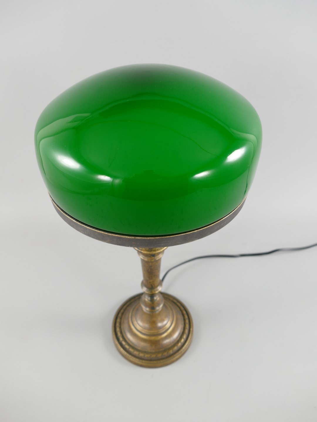 Pilzlampe Messing brün.(Glas farb. grün) H.40cm