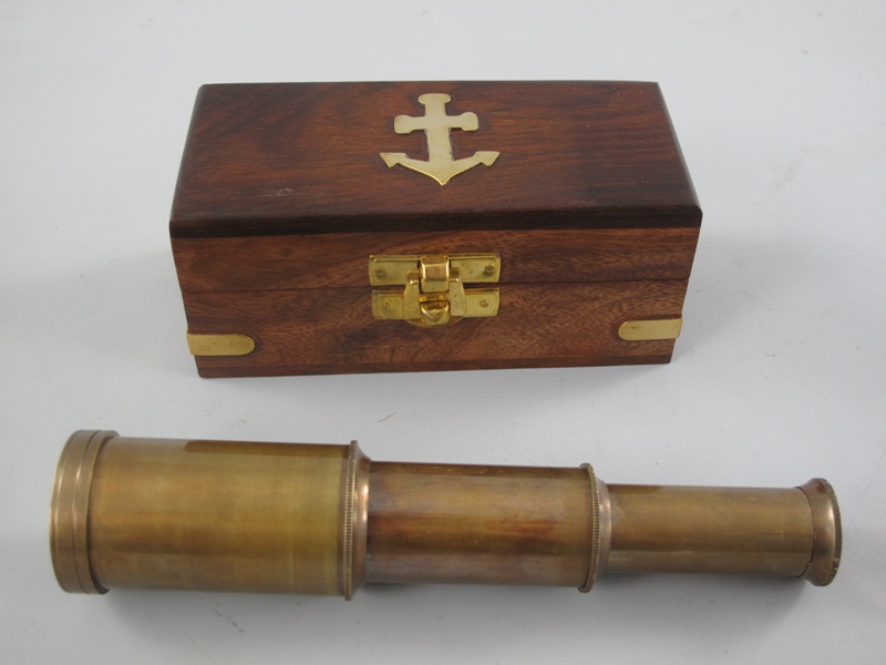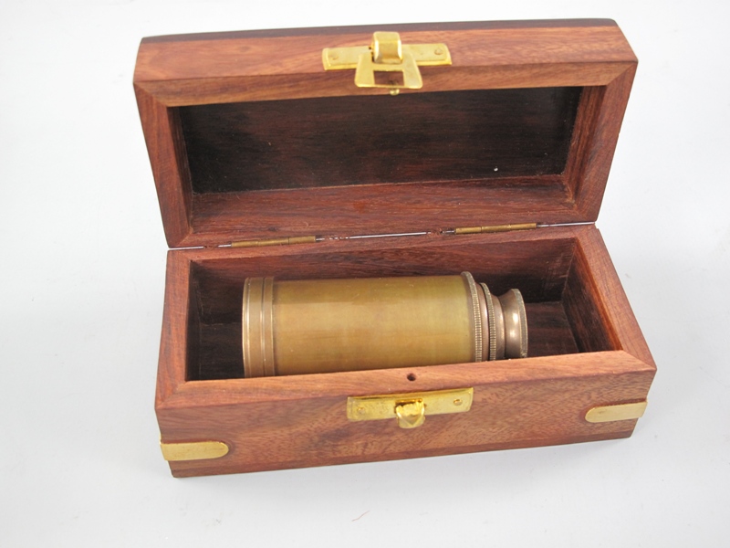 Fernrohr Messing brüniert Holzbox L.7/15cm