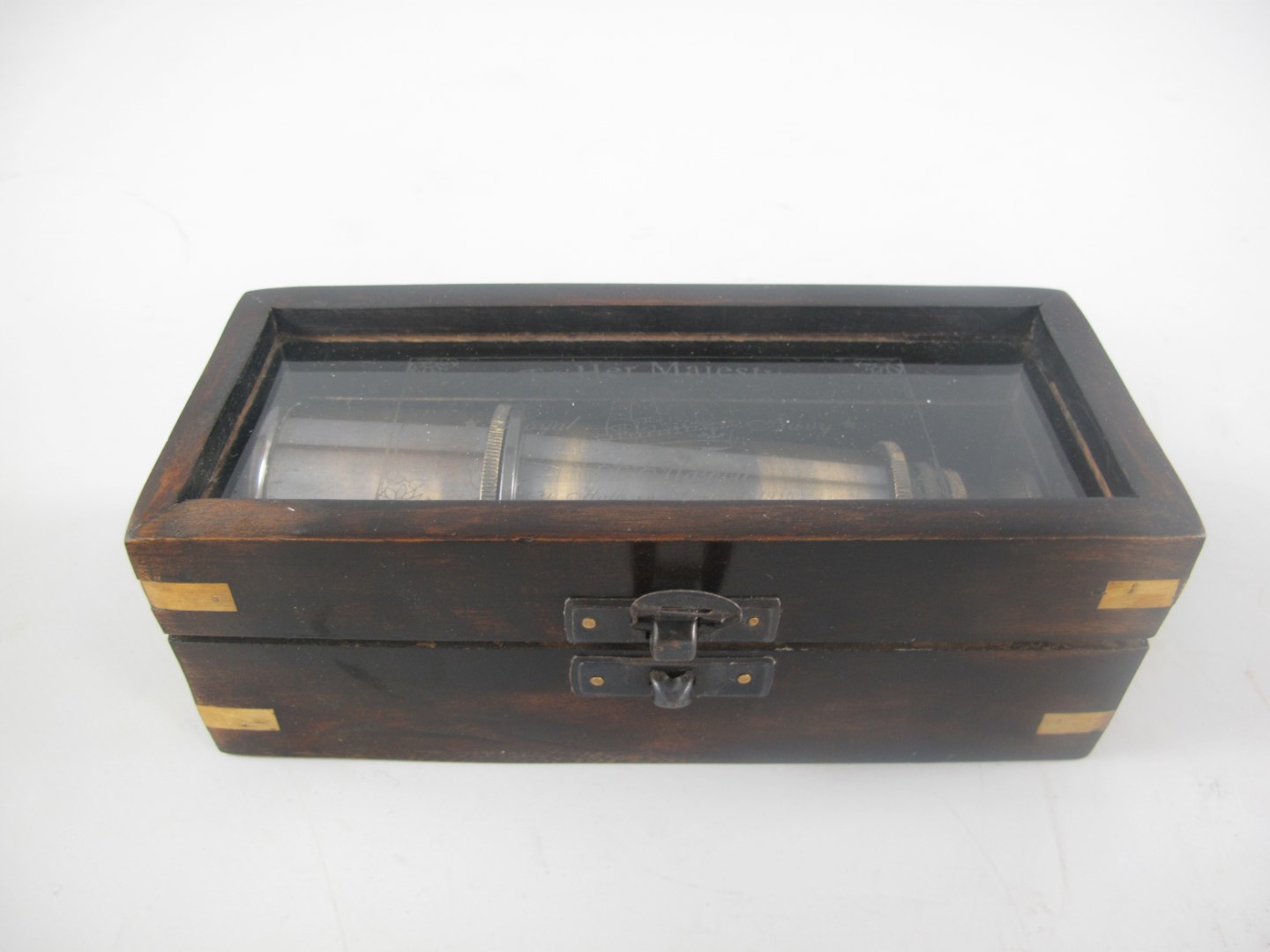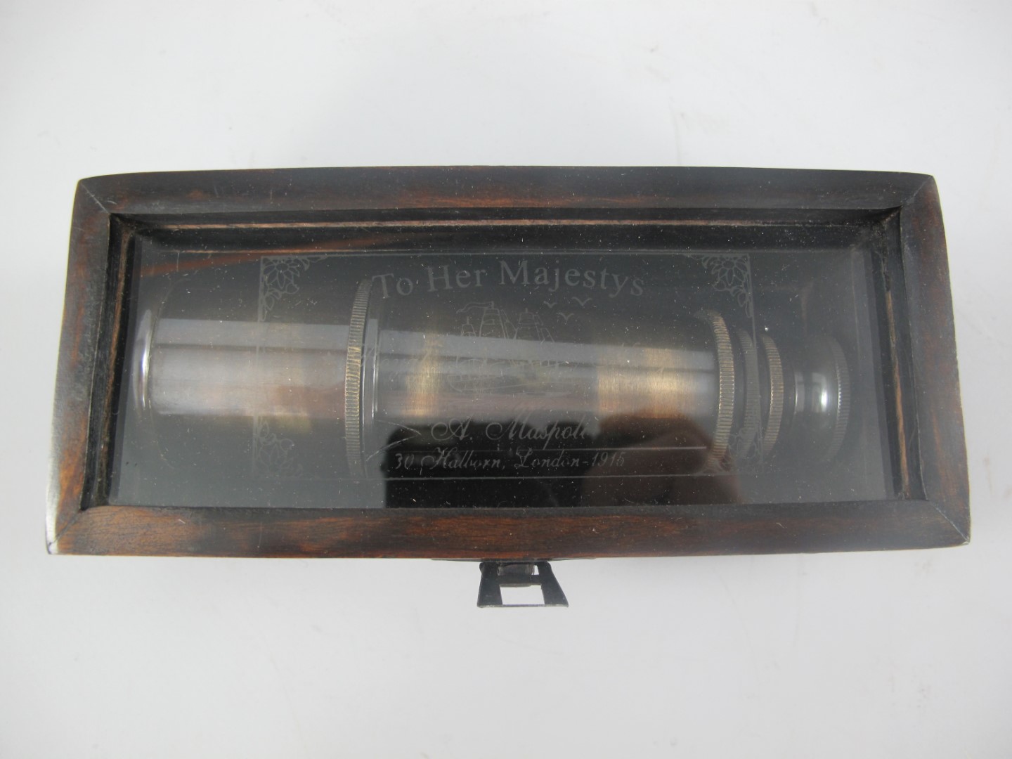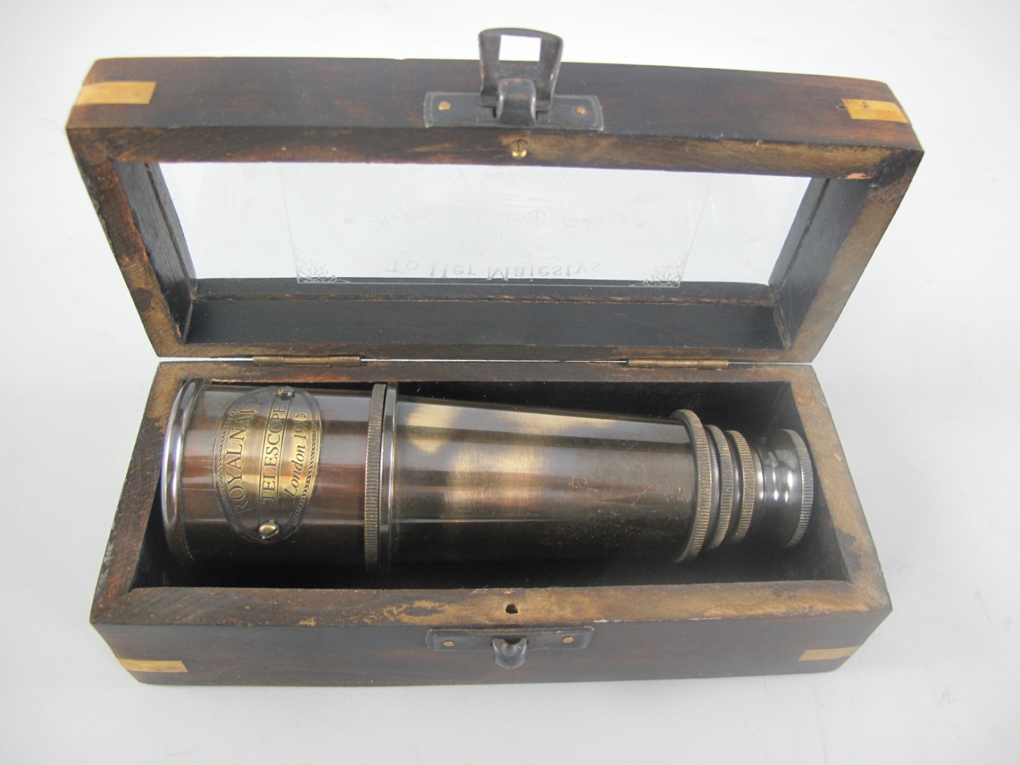 Fernrohr Messing brüniert Holz Box L.16x7cm