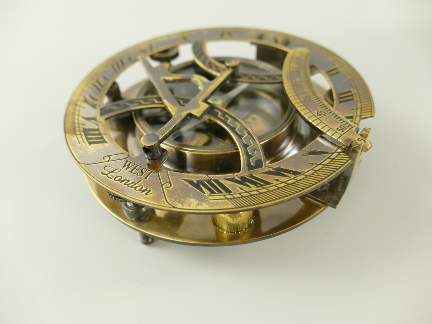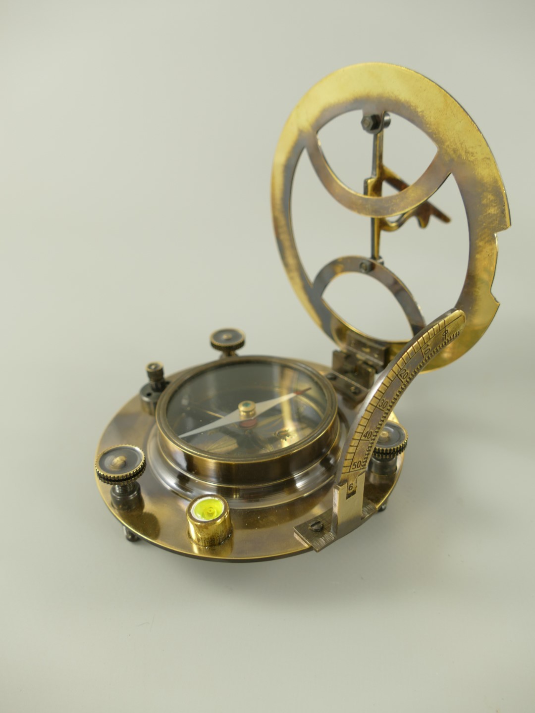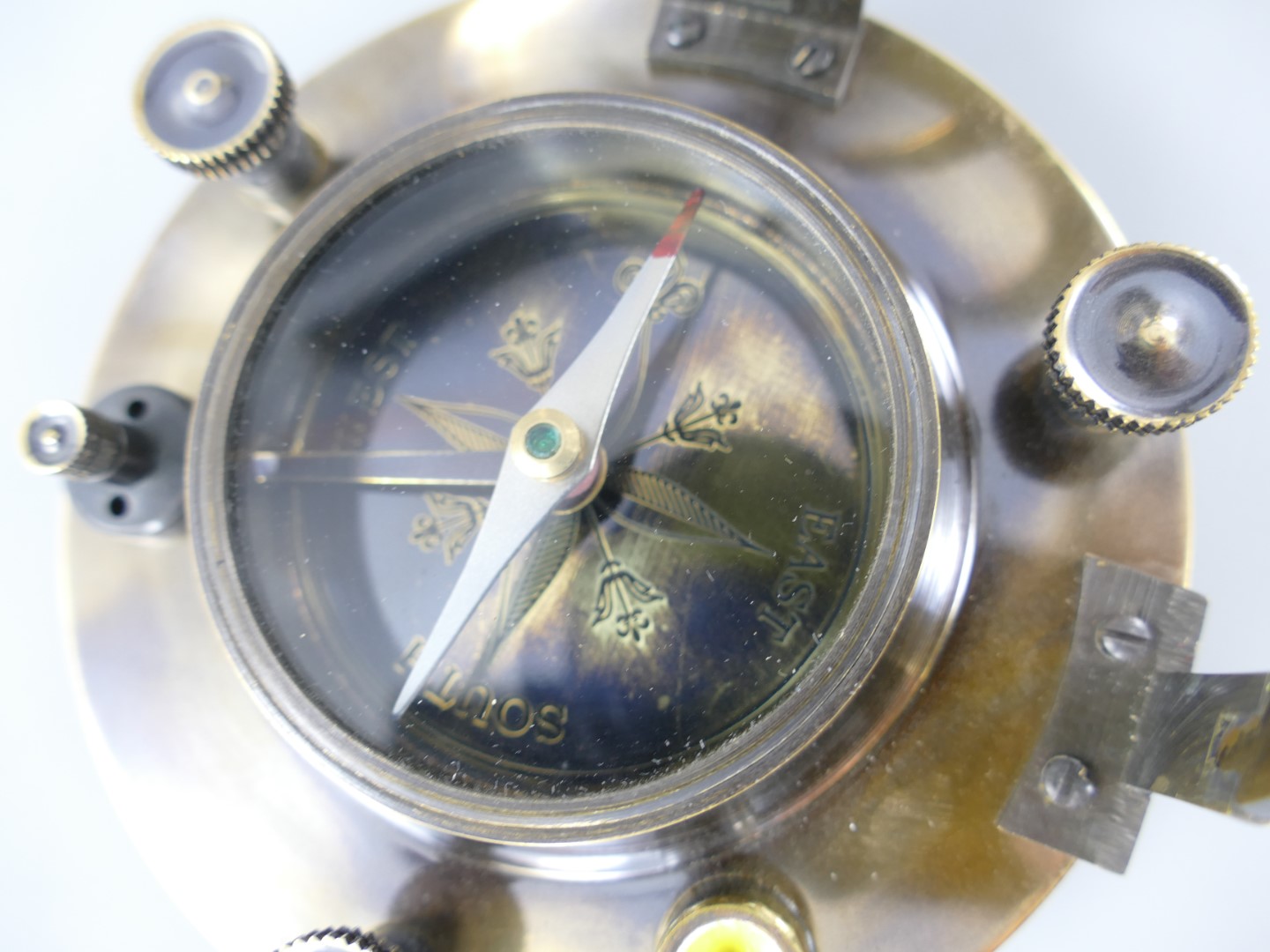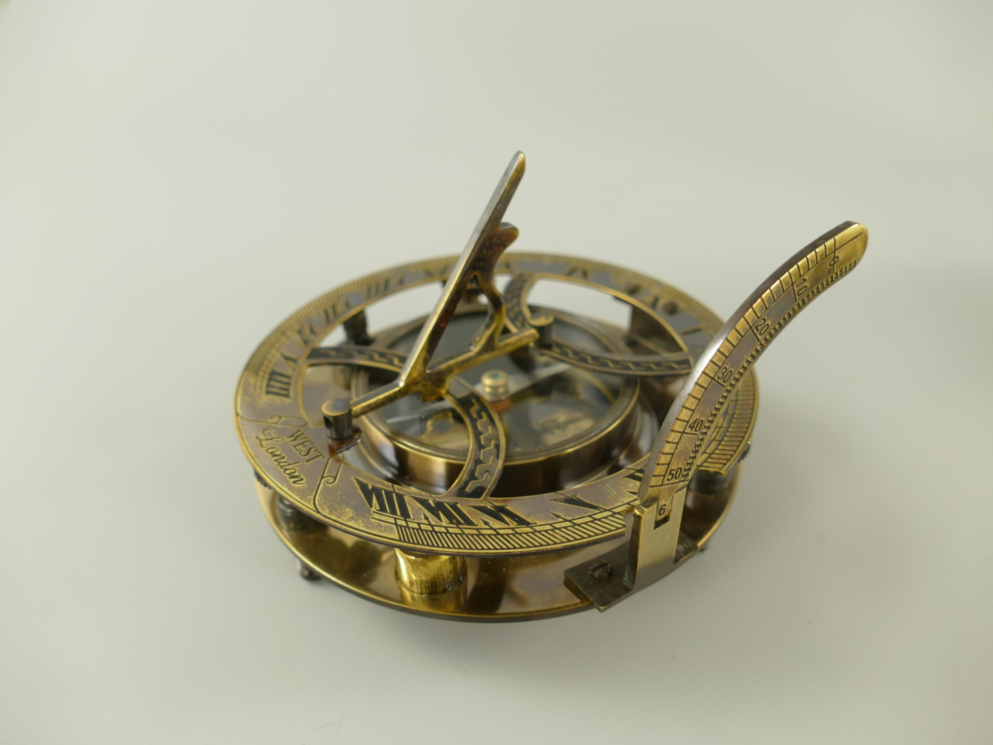Kompass D.11cm Mes. brün. Holzbox L.14x14cm