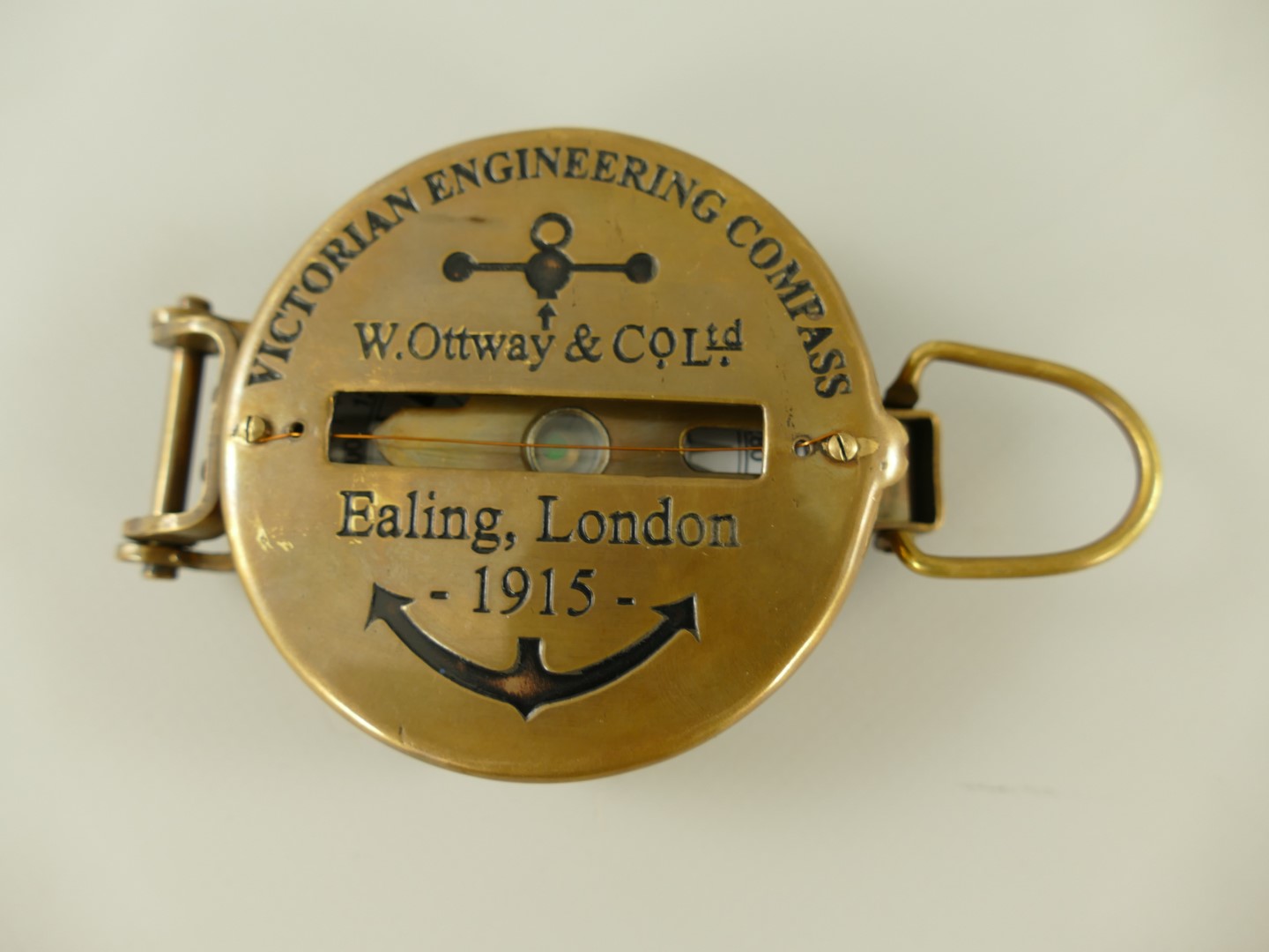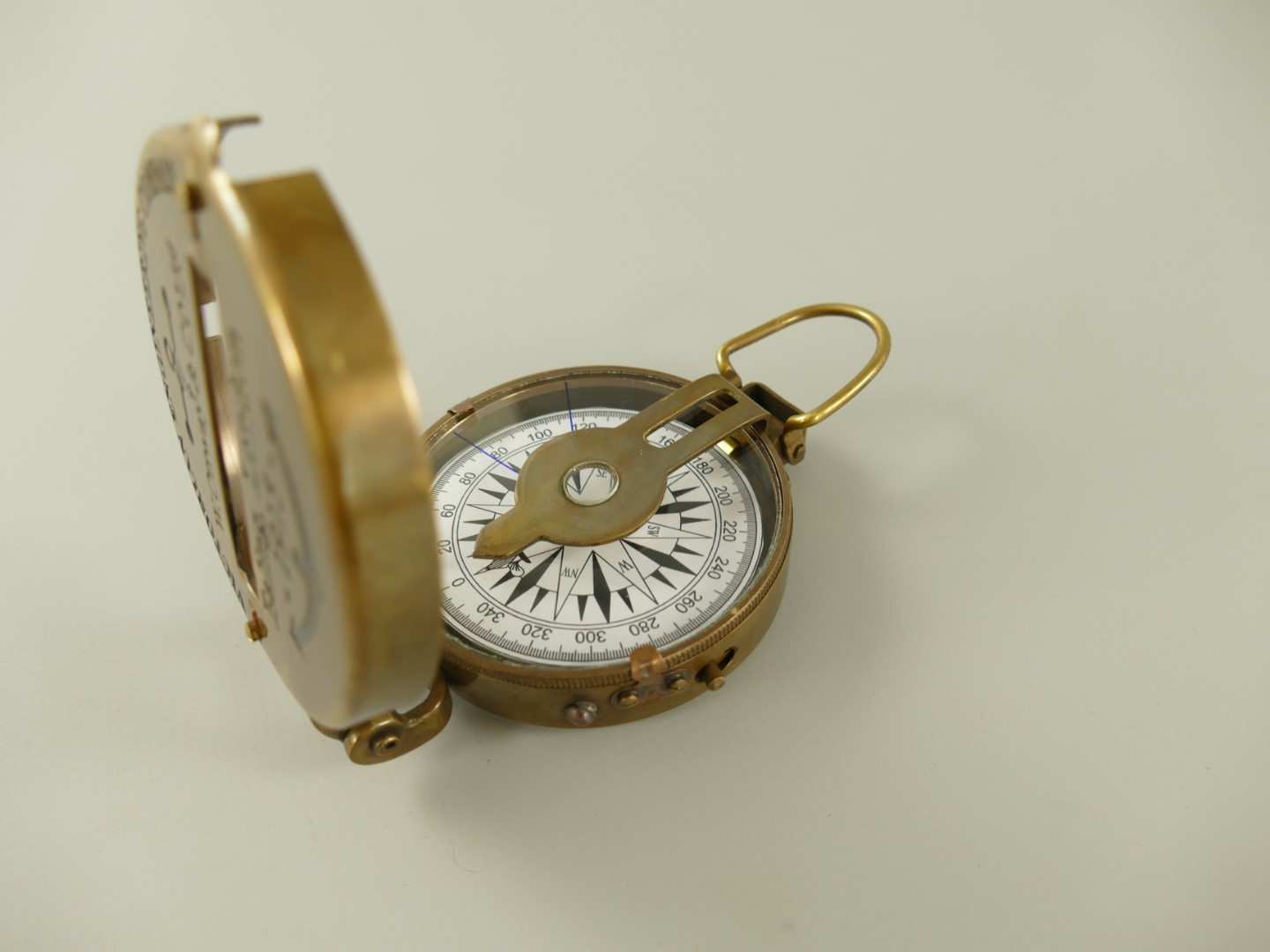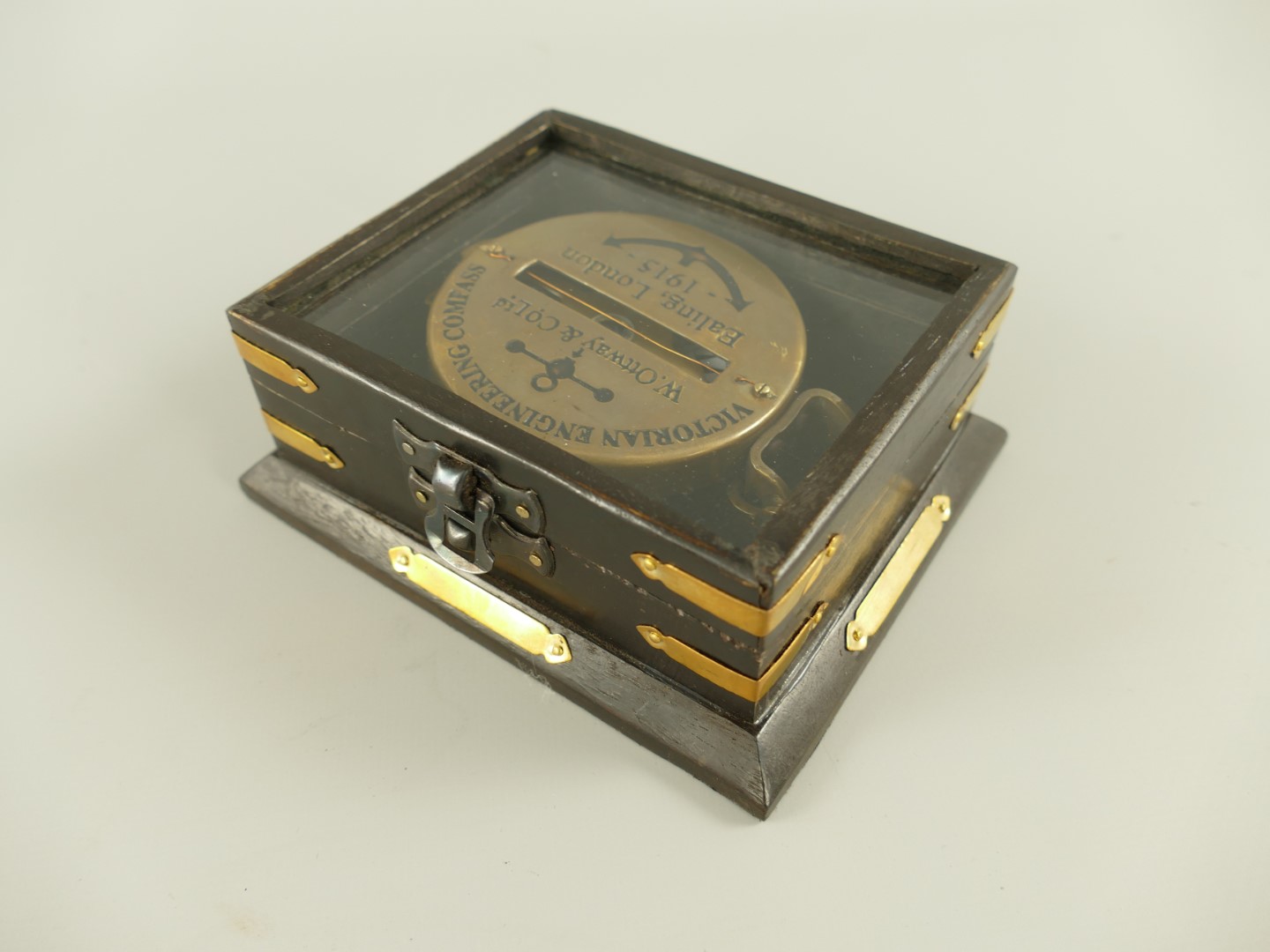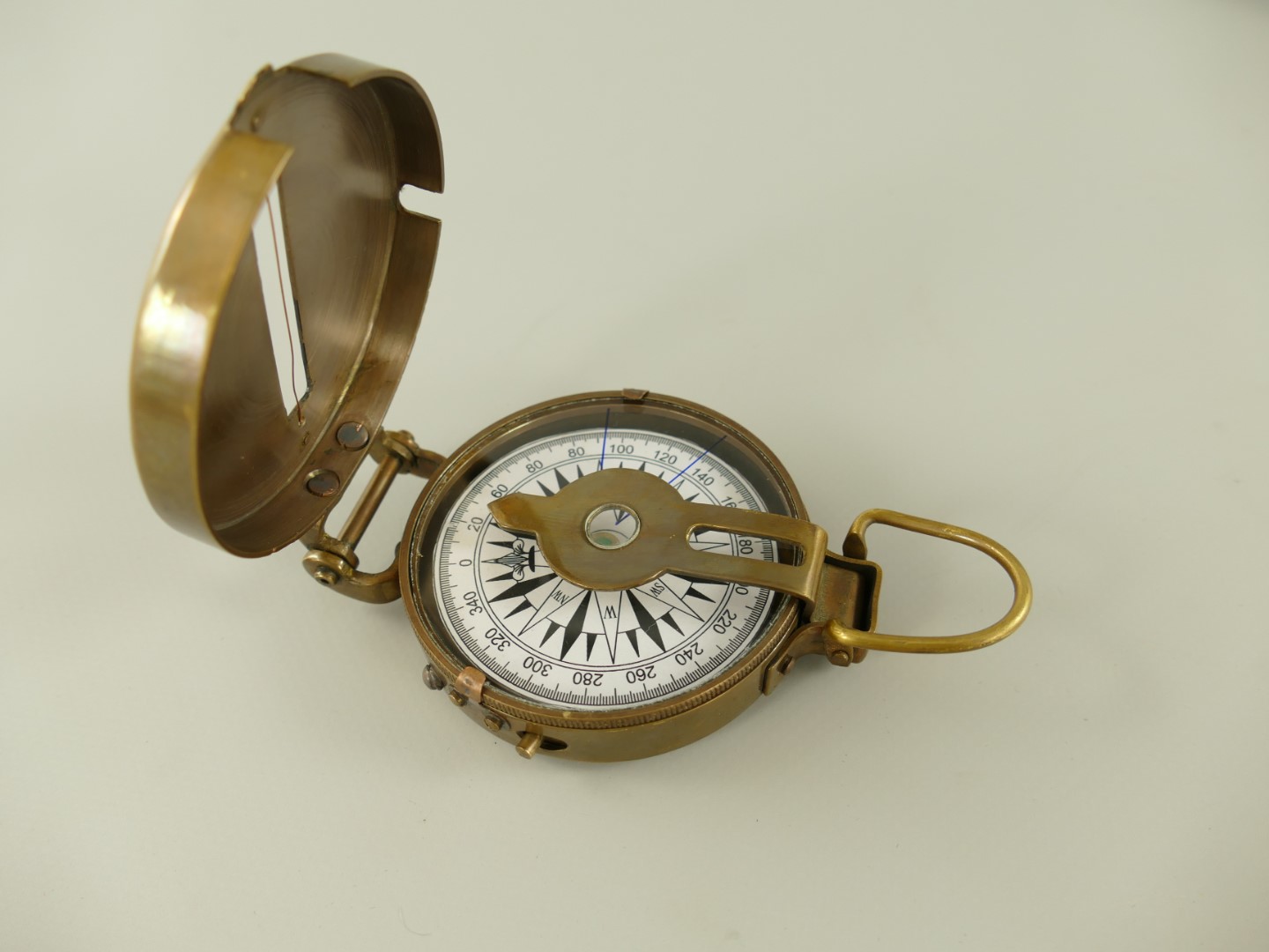 *ANG. Kompaß Messing brüniert mit Holzbox D.8cm