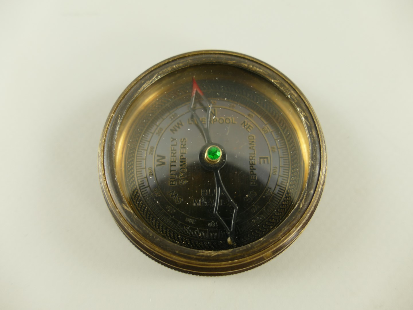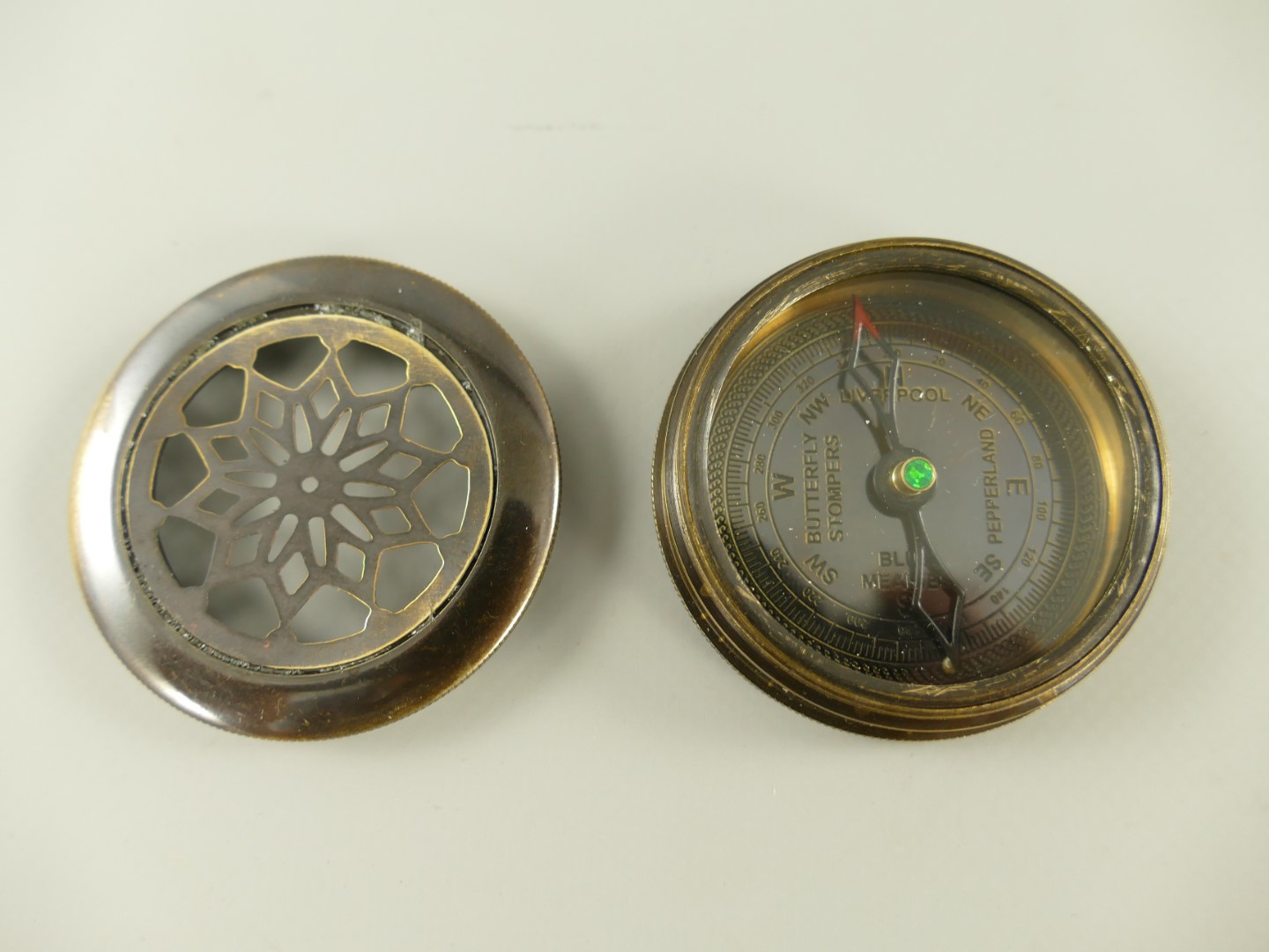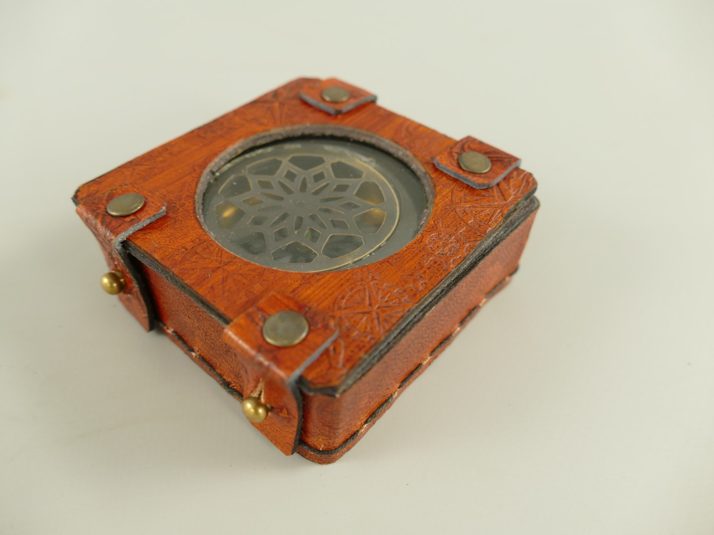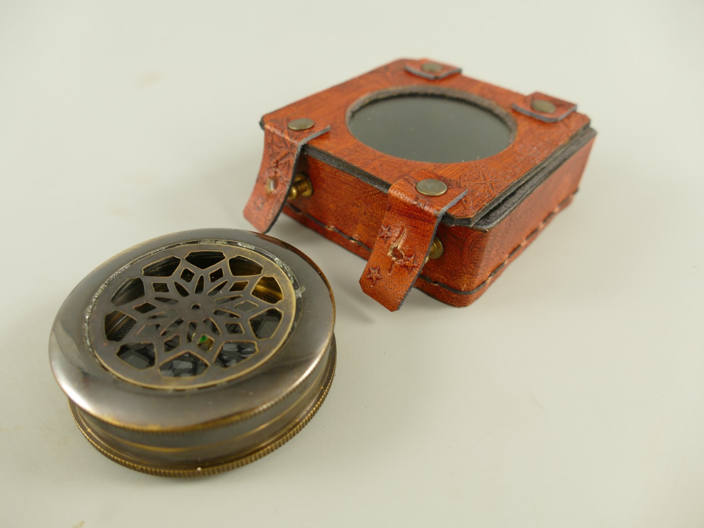 Artikelinformationen "Kompaß Messing brüniert im Lederbox D.6cm"