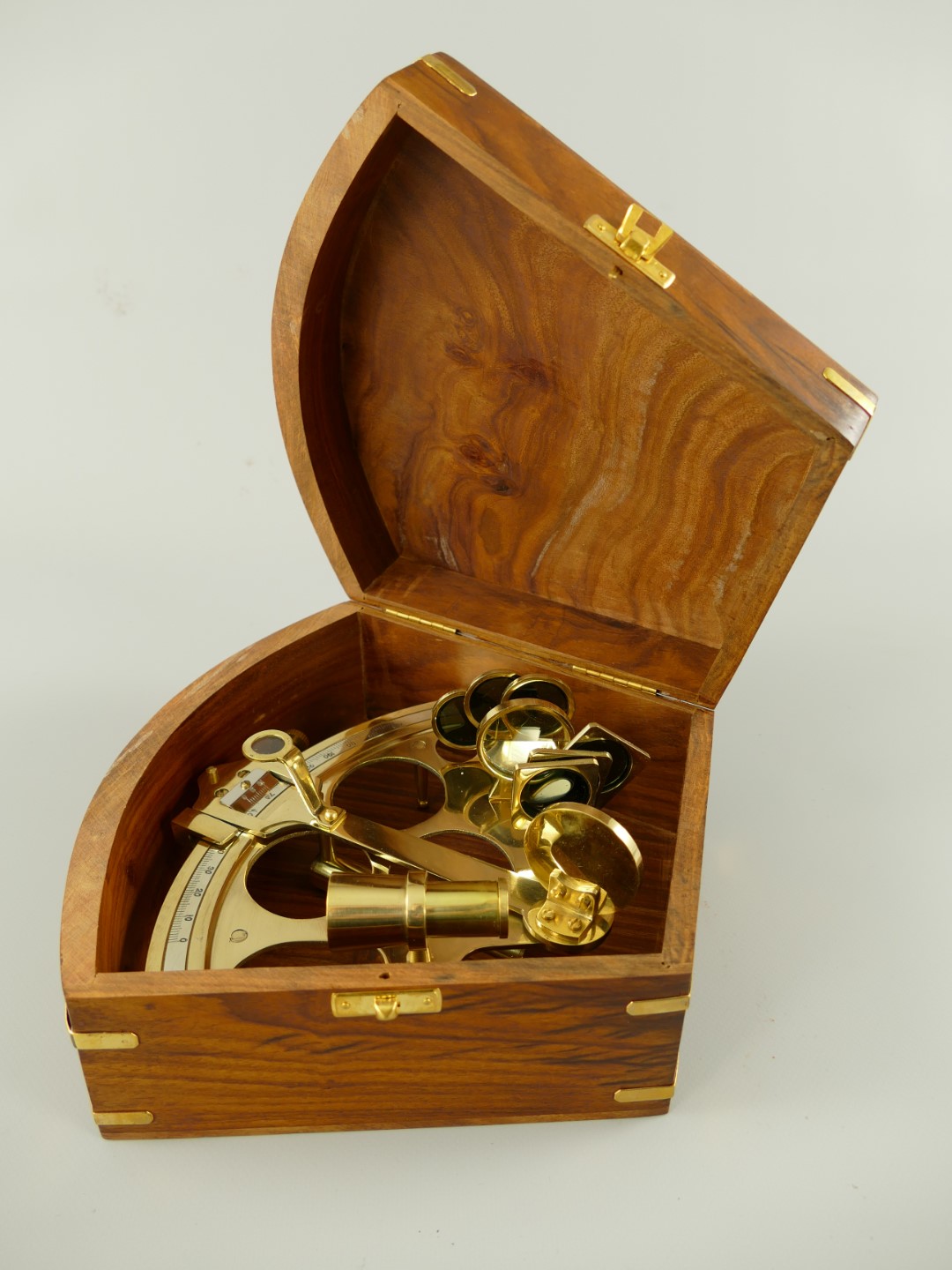 Artikelinformationen "Messing Sextant 6'' im Holzbox H.10x20x20cm"